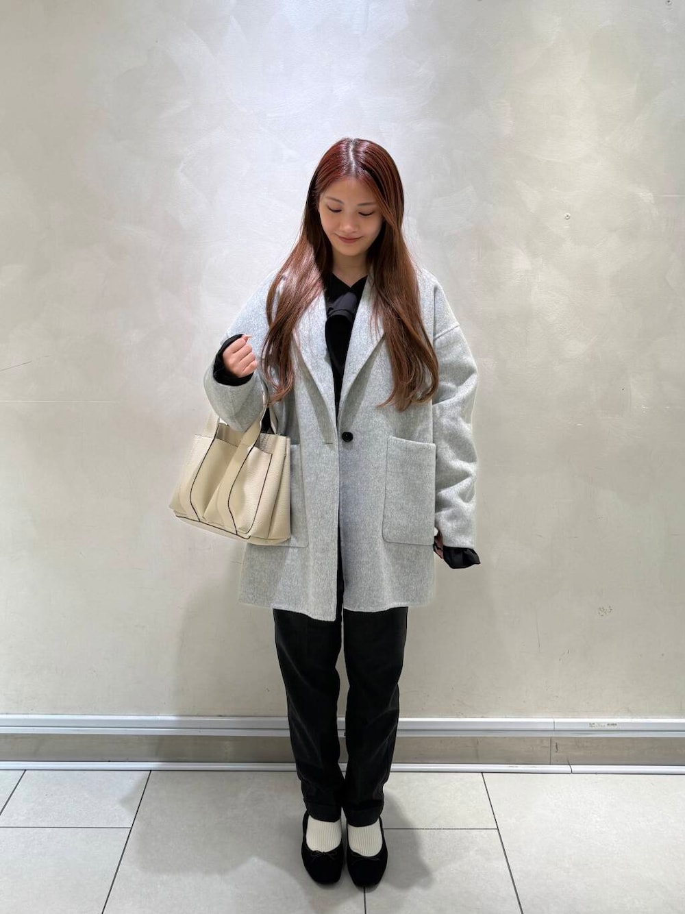 コートは、肩が落ちているので着膨れせずすっきり着られます!