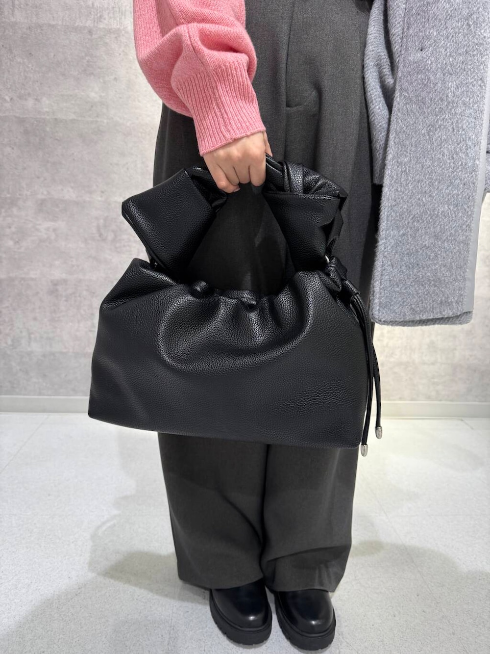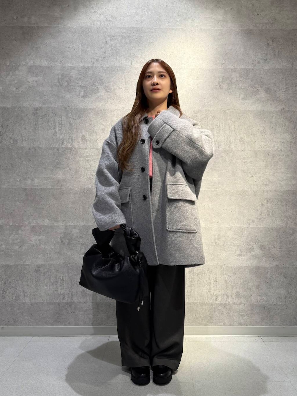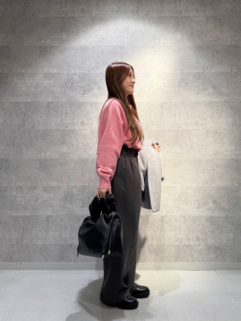 ニットは、明るいピンク色で冬の暗くなりがちなコーディネートのアクセントにぴったりです!