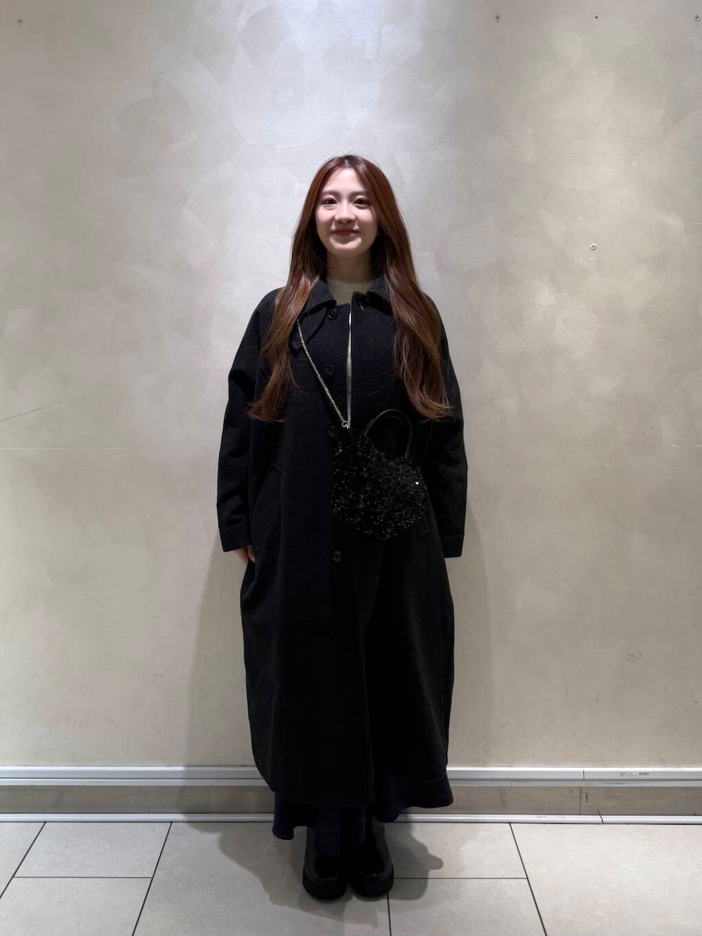 コートは、149センチでsサイズで裾を引きずることを気にせず着られる丈感なので低身長の方でも挑戦しやすいロングコートだと思います!
