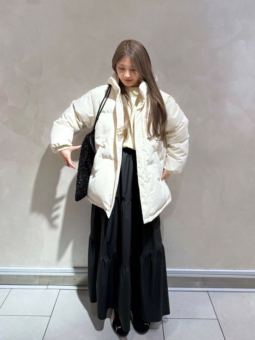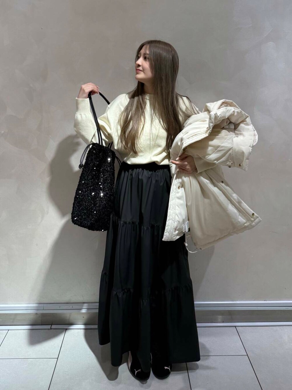 本日は、200日ニットの新色を使ったコーディネートにしました!