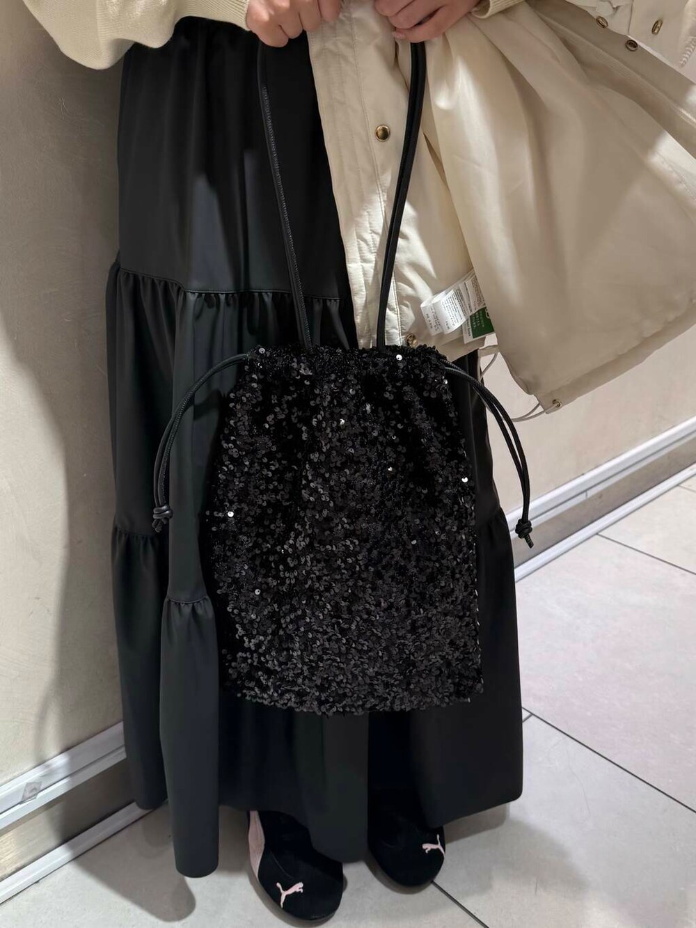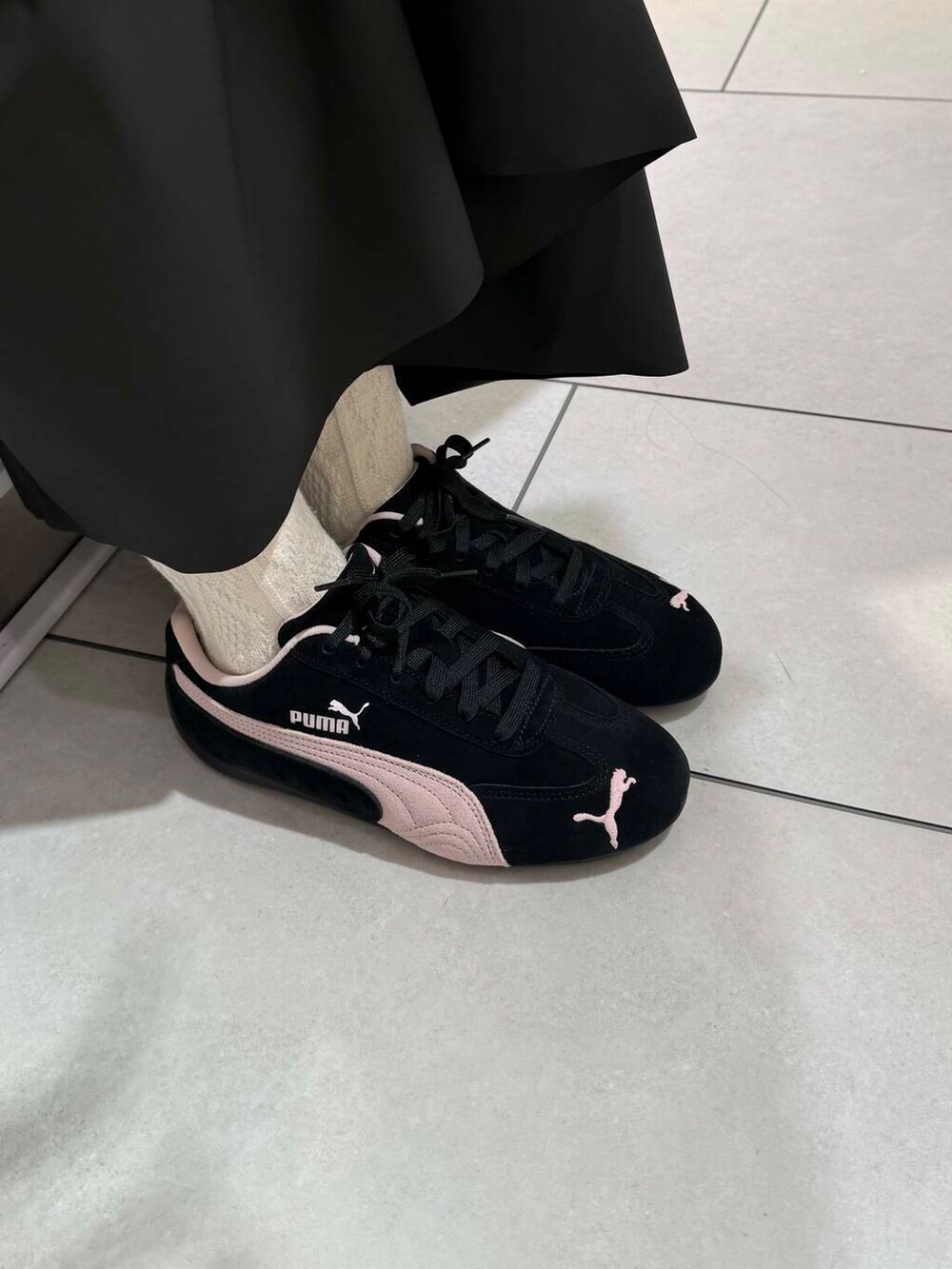 PUMAのスニーカーは、ピンク色がコーディネートのアクセントになってかわいいです!