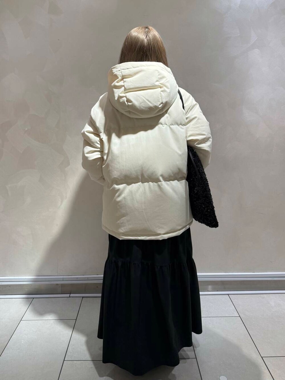 グリーンダウンミドルジャケットは、大きめでかわいいフードをチャックで簡単に取り外しでき違った着方を楽しむことができます!