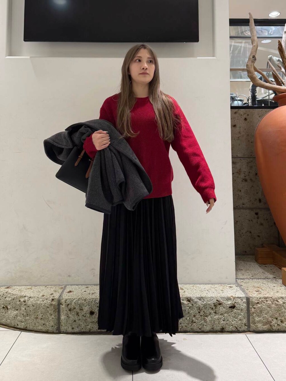 ツイルプリーツスカートはプリーツの幅が細めで華奢見えします!