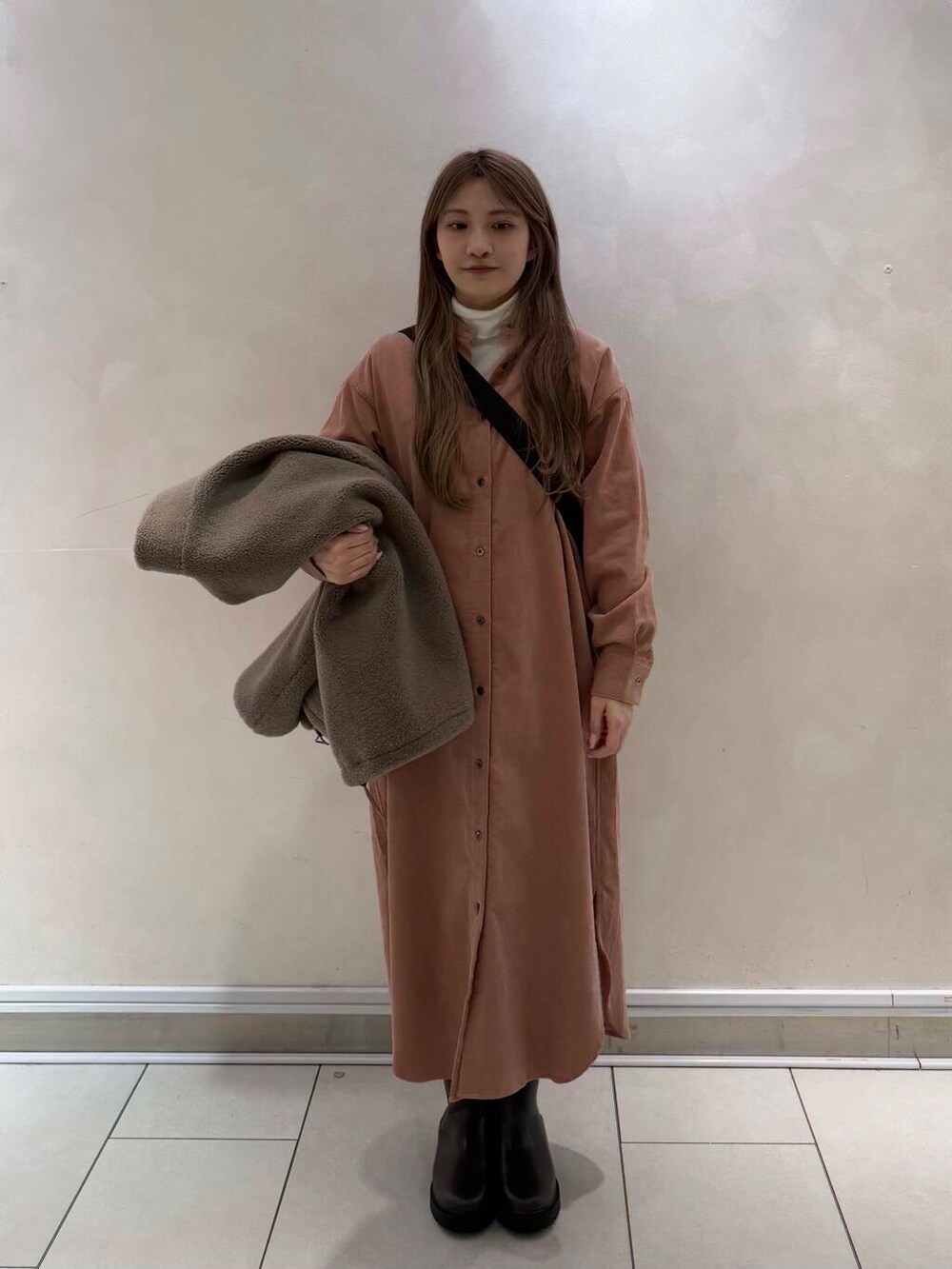 本日は、コーデュロイのワンピースを使ったコーディネートにしました!