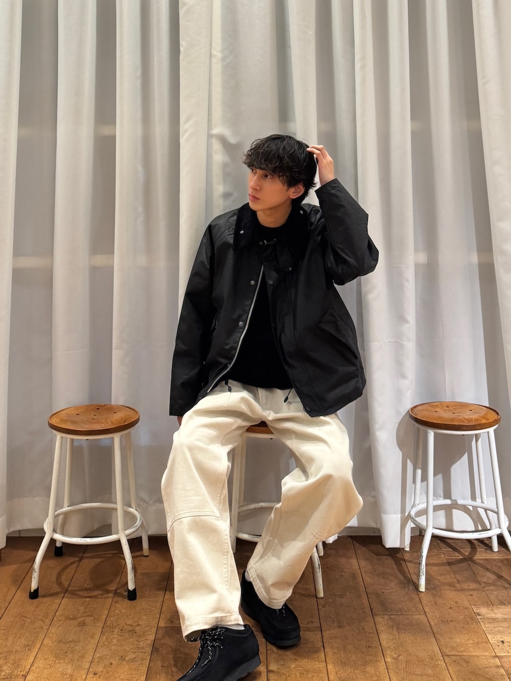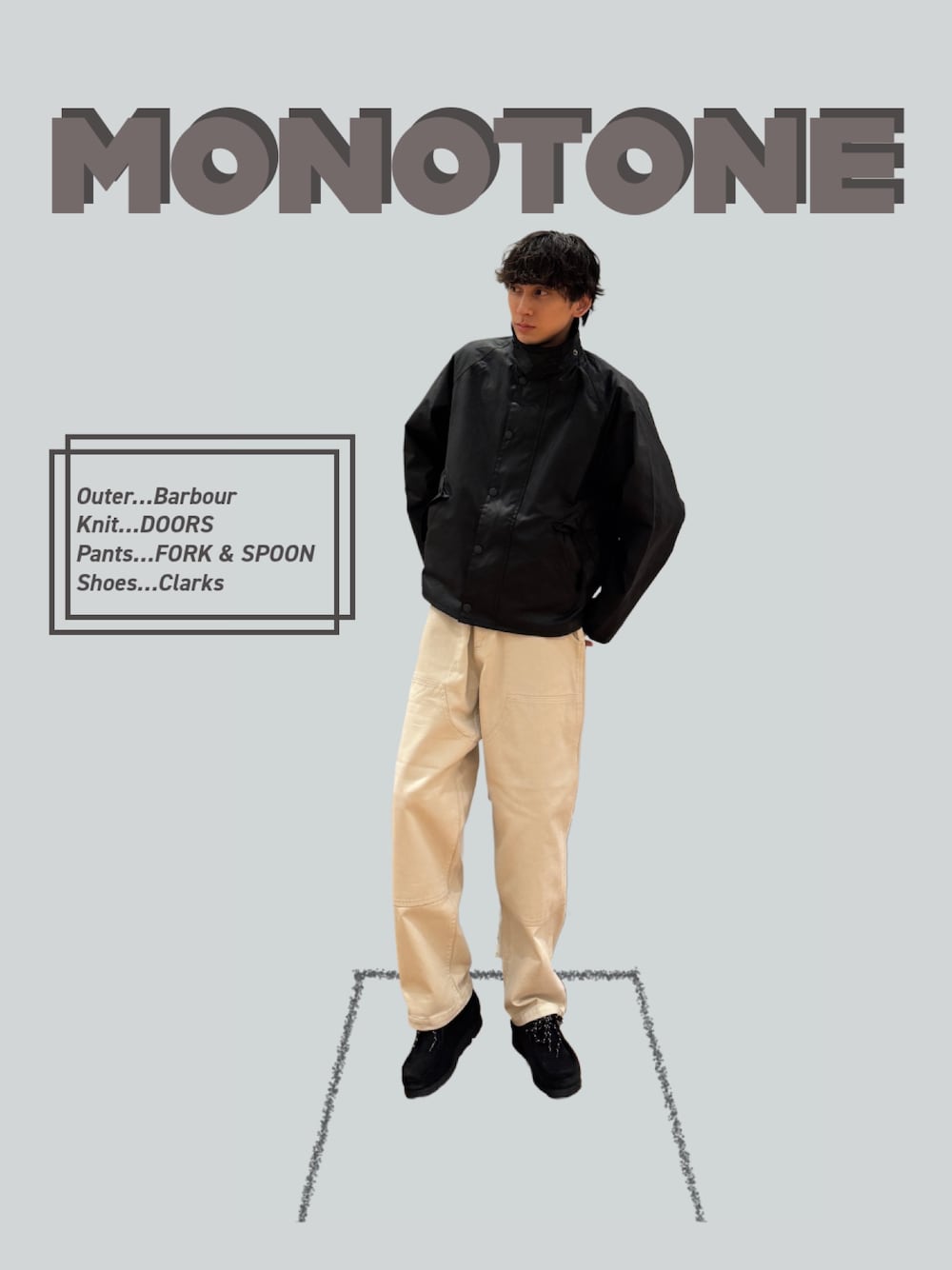 BARBOURのTransportを軸に組んだ、洗練されたモノトーンスタイルです✨️