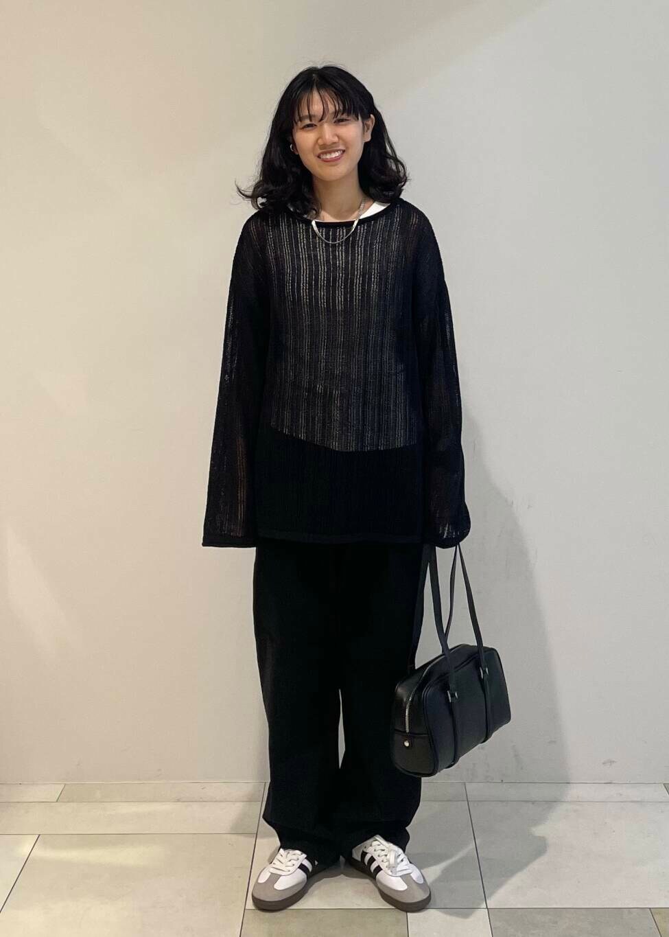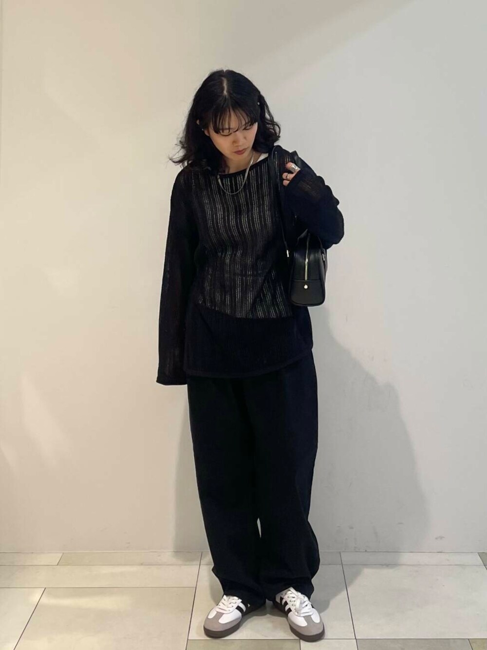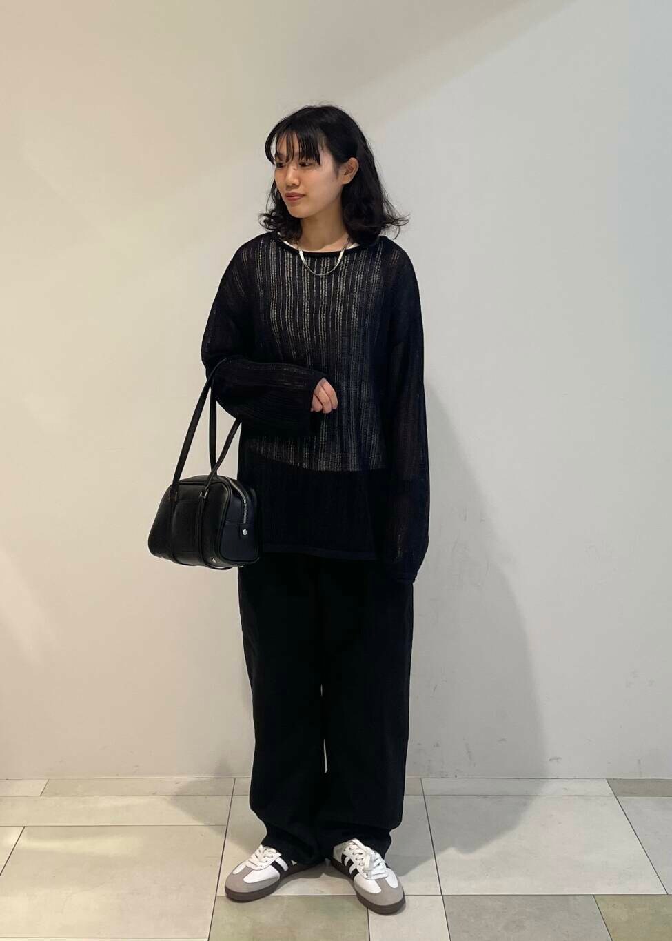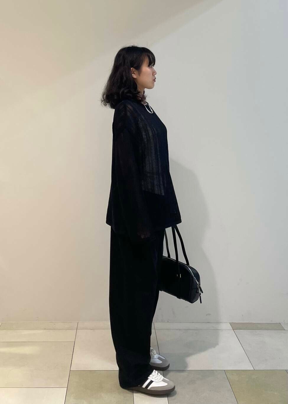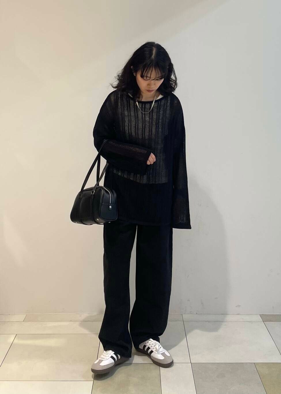 新作のウォッシャブルニットがかっこいいブラックコーデにしてみました。