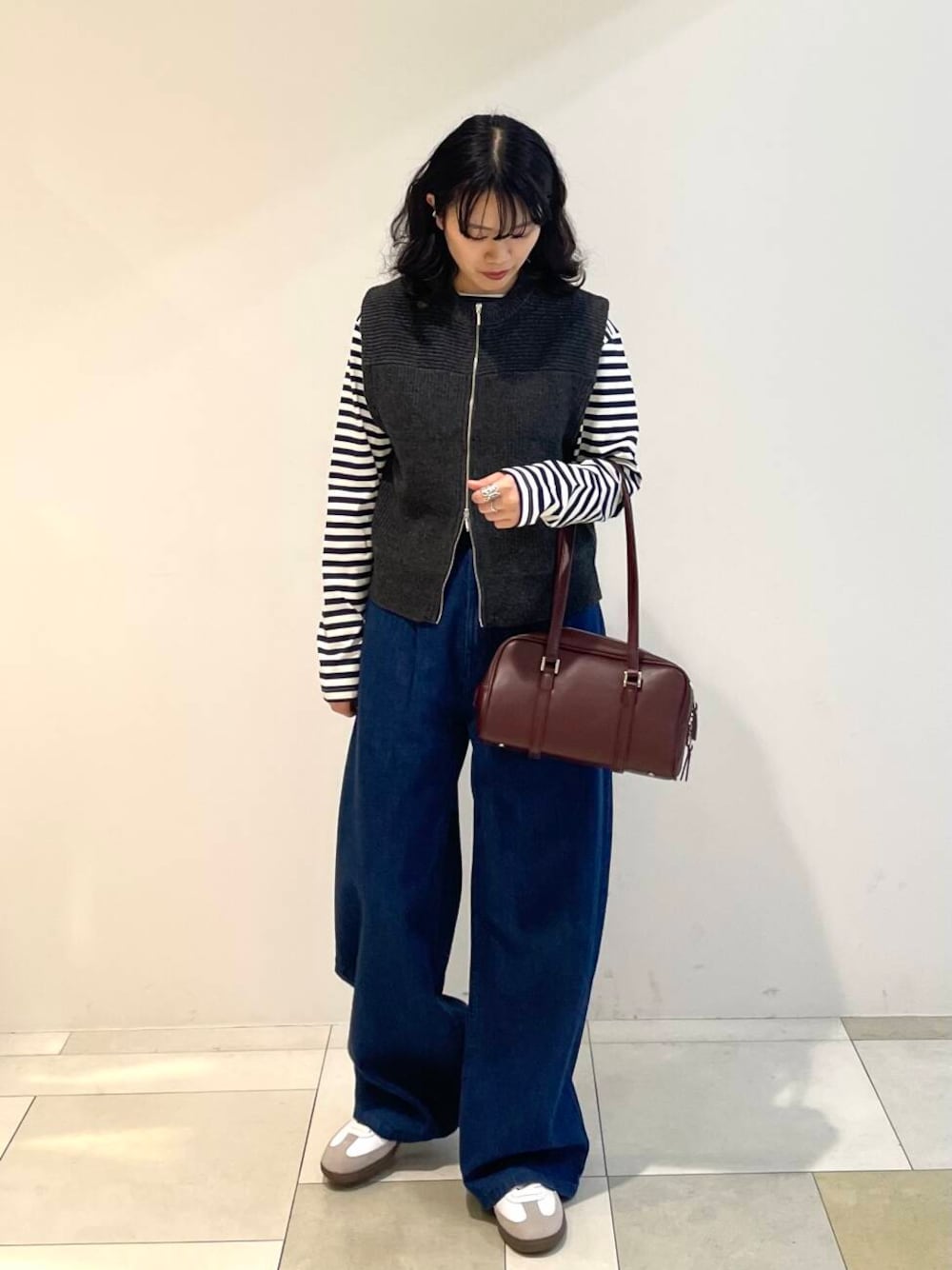 wジップで開けても閉めても可愛いベストが主役のコーデです!