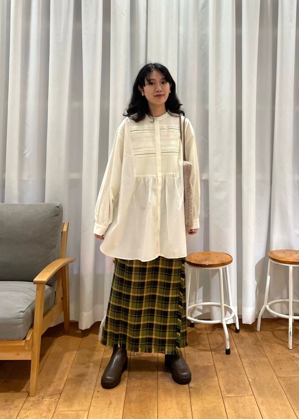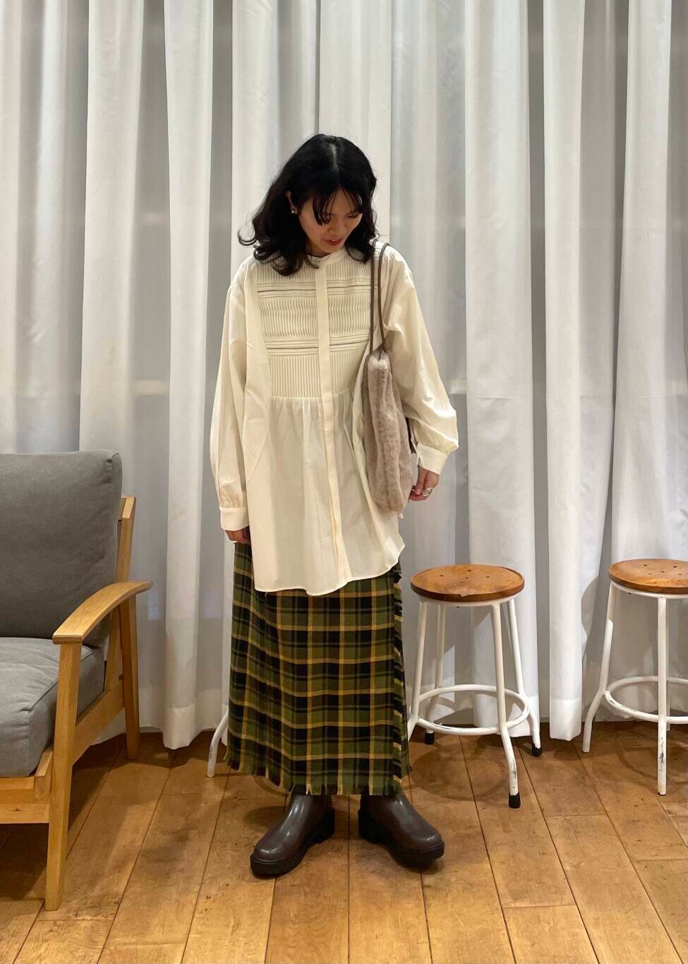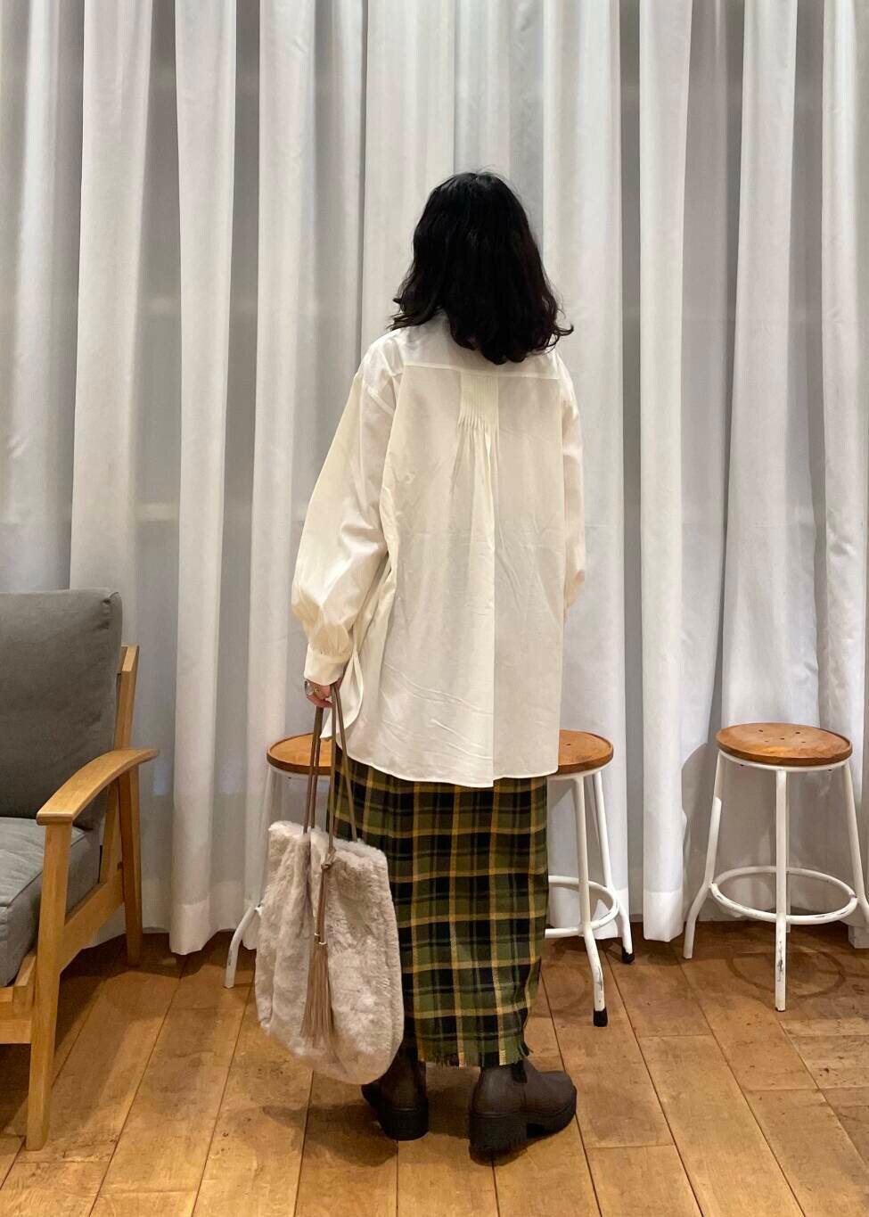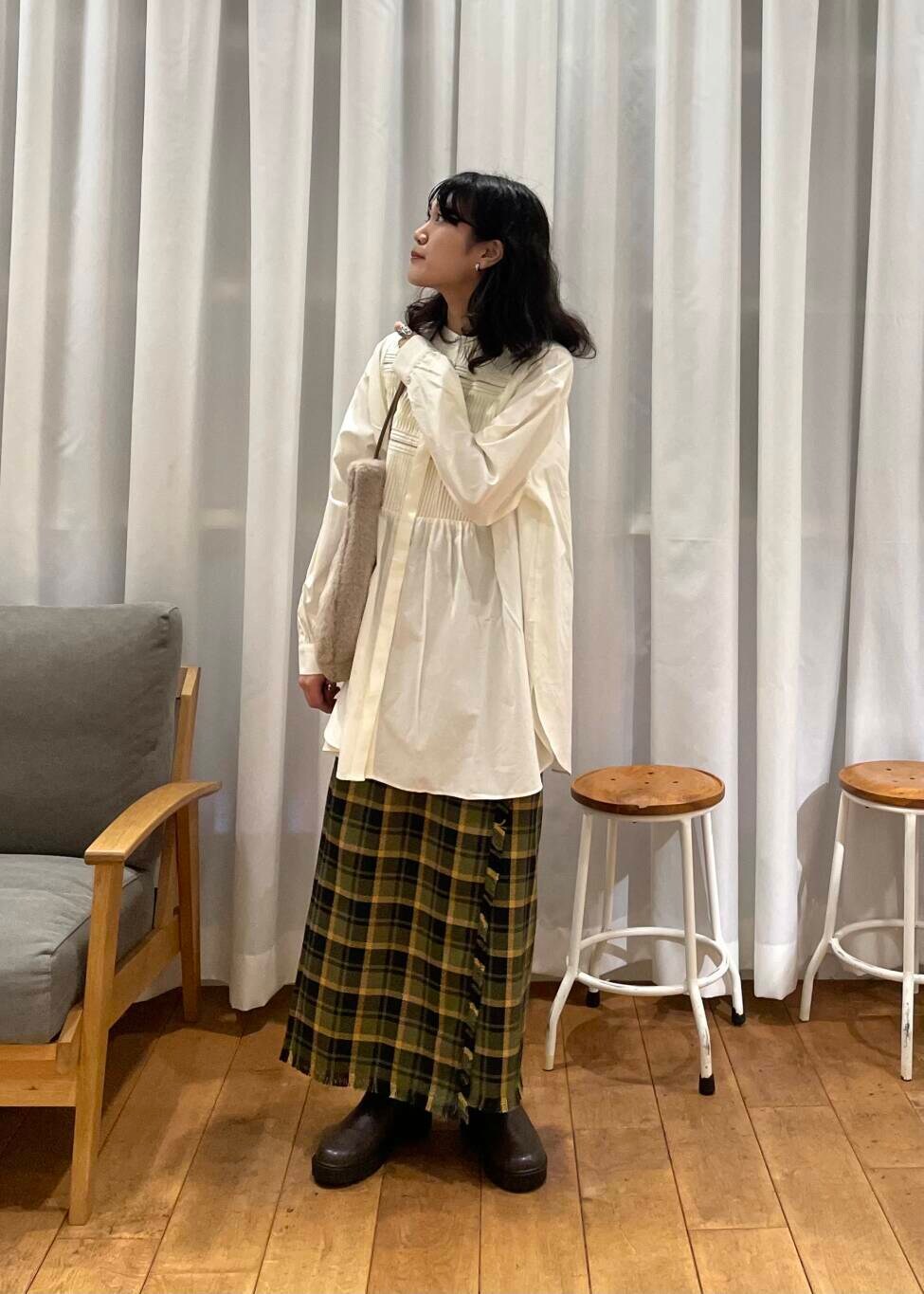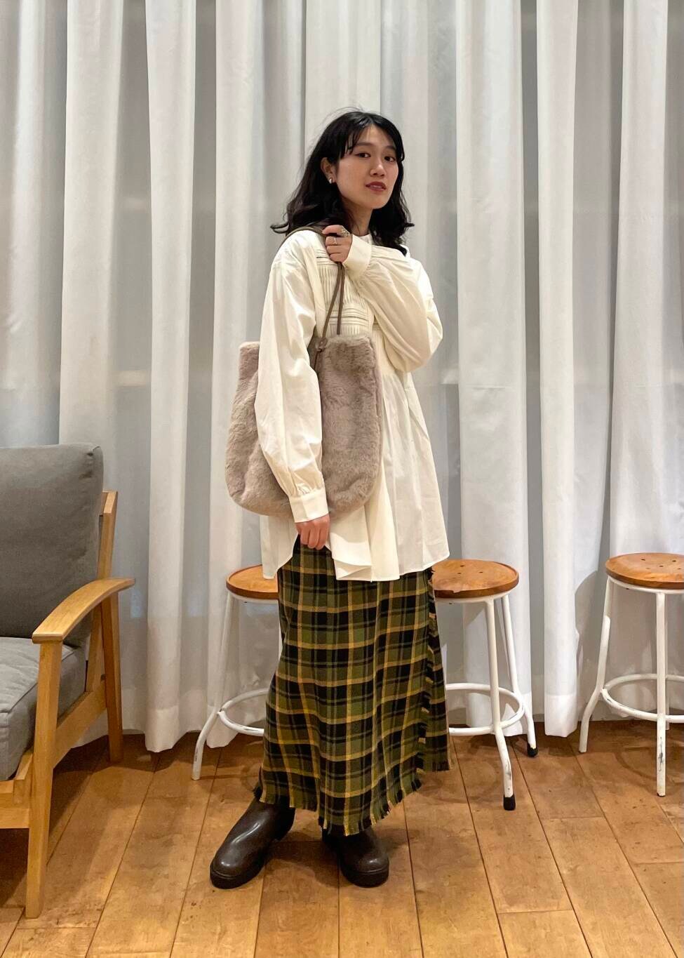 秋らしいイエローチェック×ファーアイテムが可愛いお出かけコーデです!🛍️