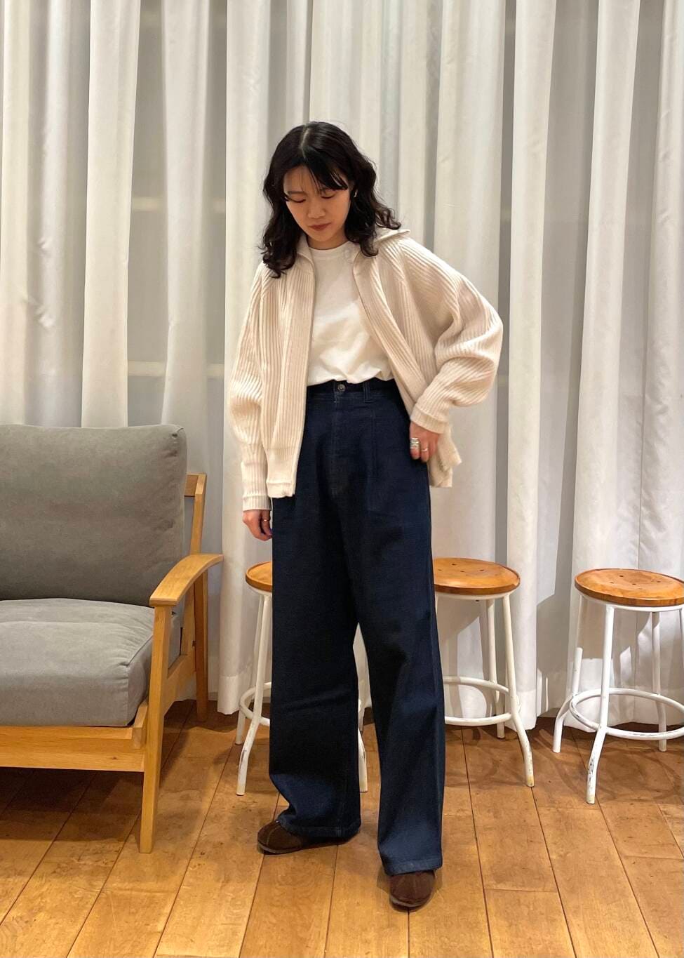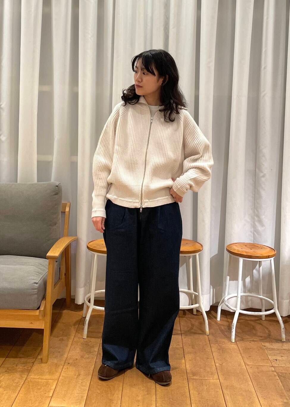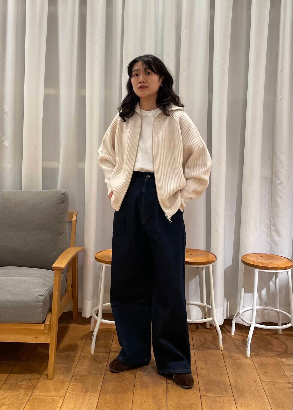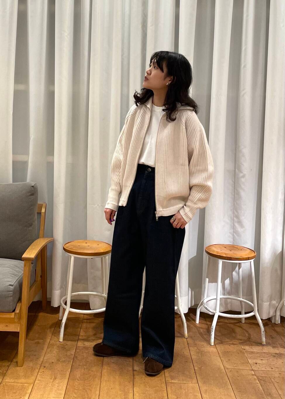 あたたかみのあるアイボリーのローゲージニットが可愛いです!