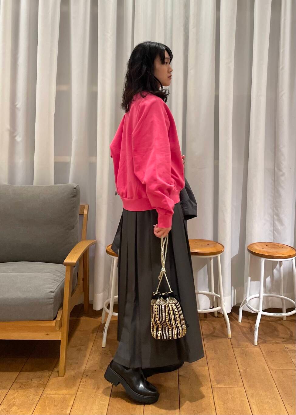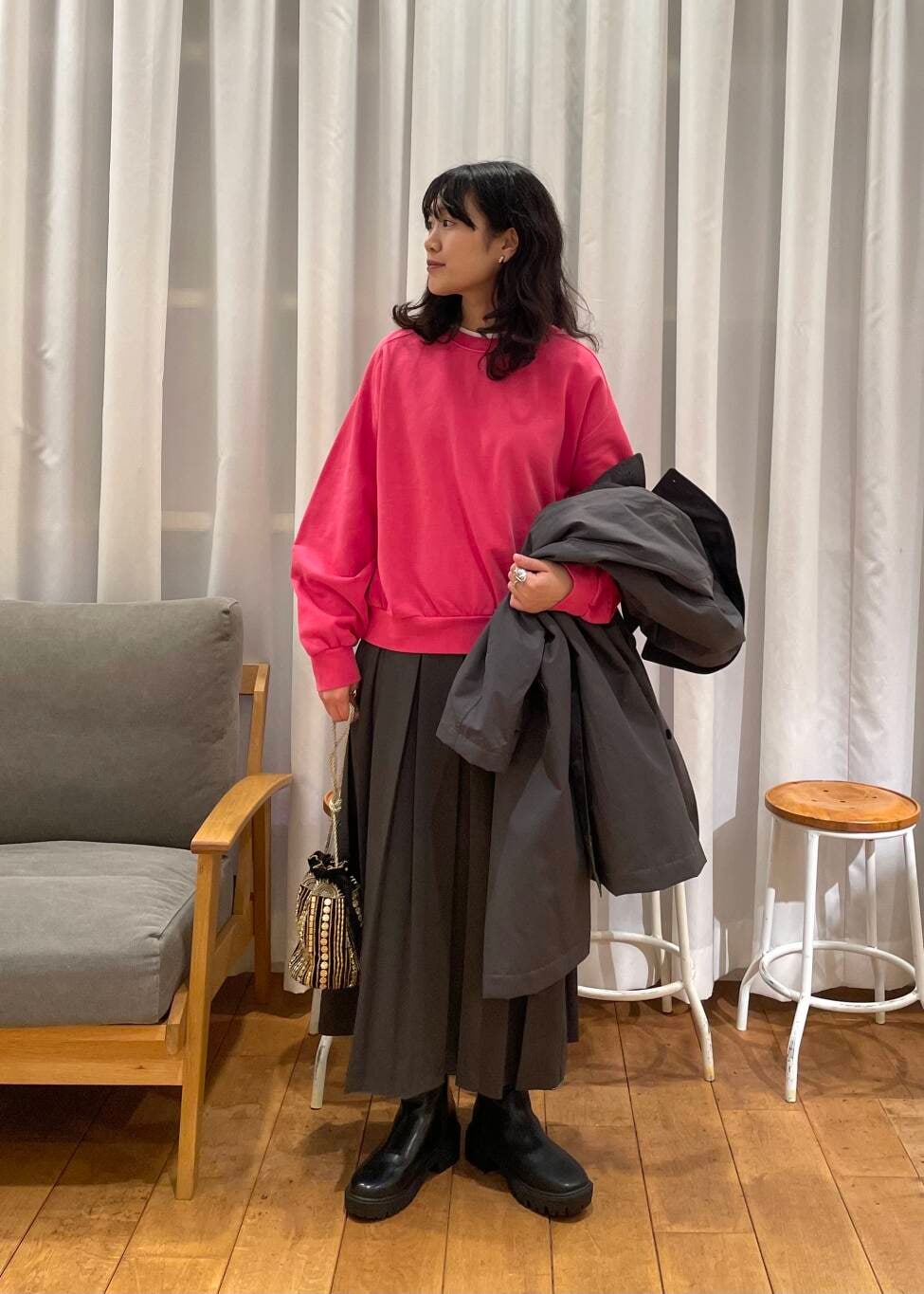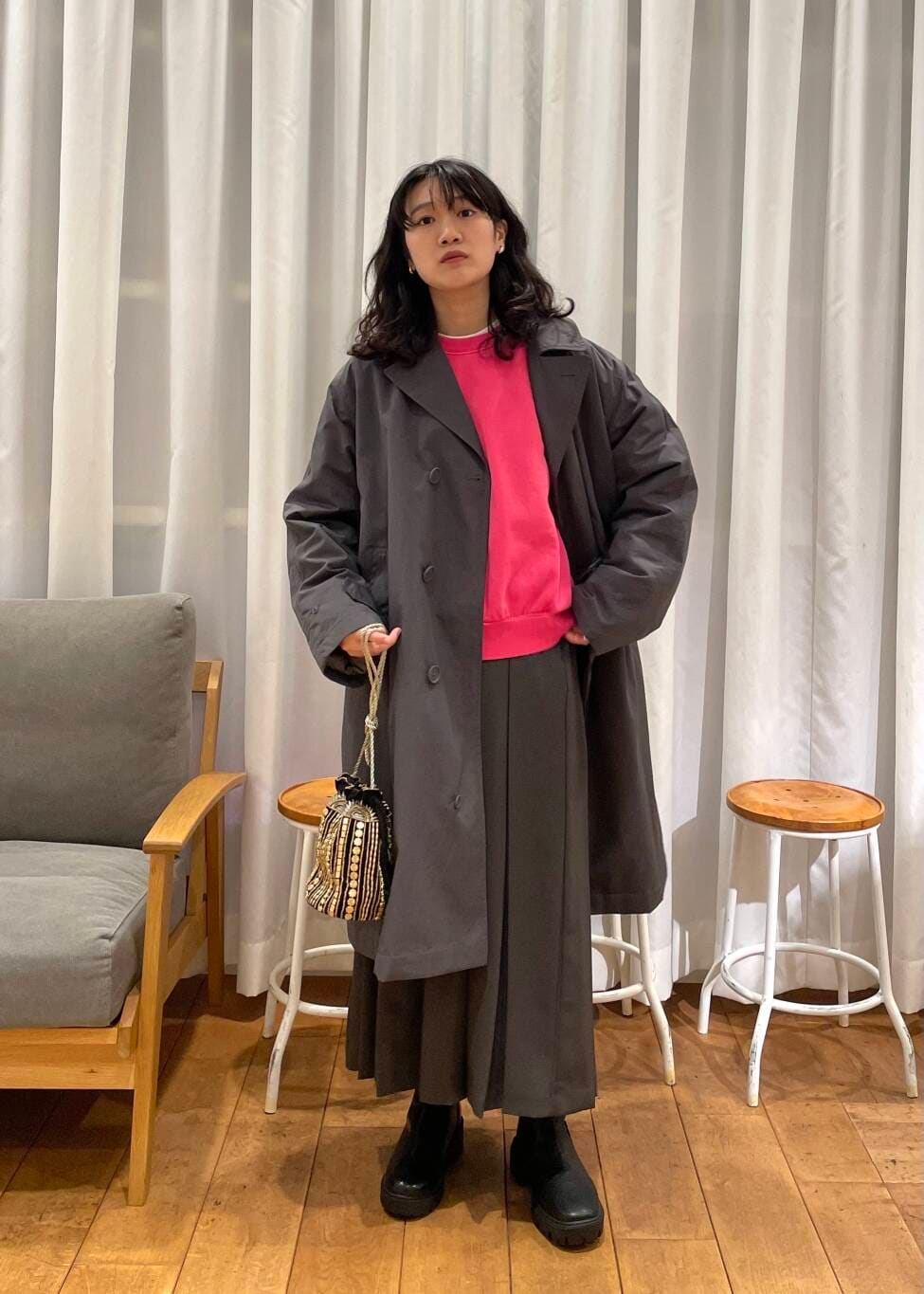 強い発色のものでもワントーンコーデのアクセントにすることで、
