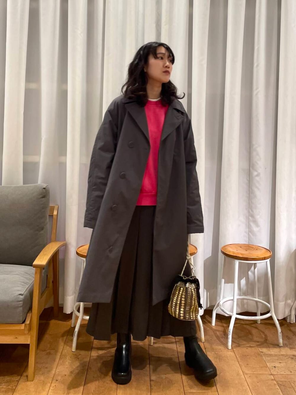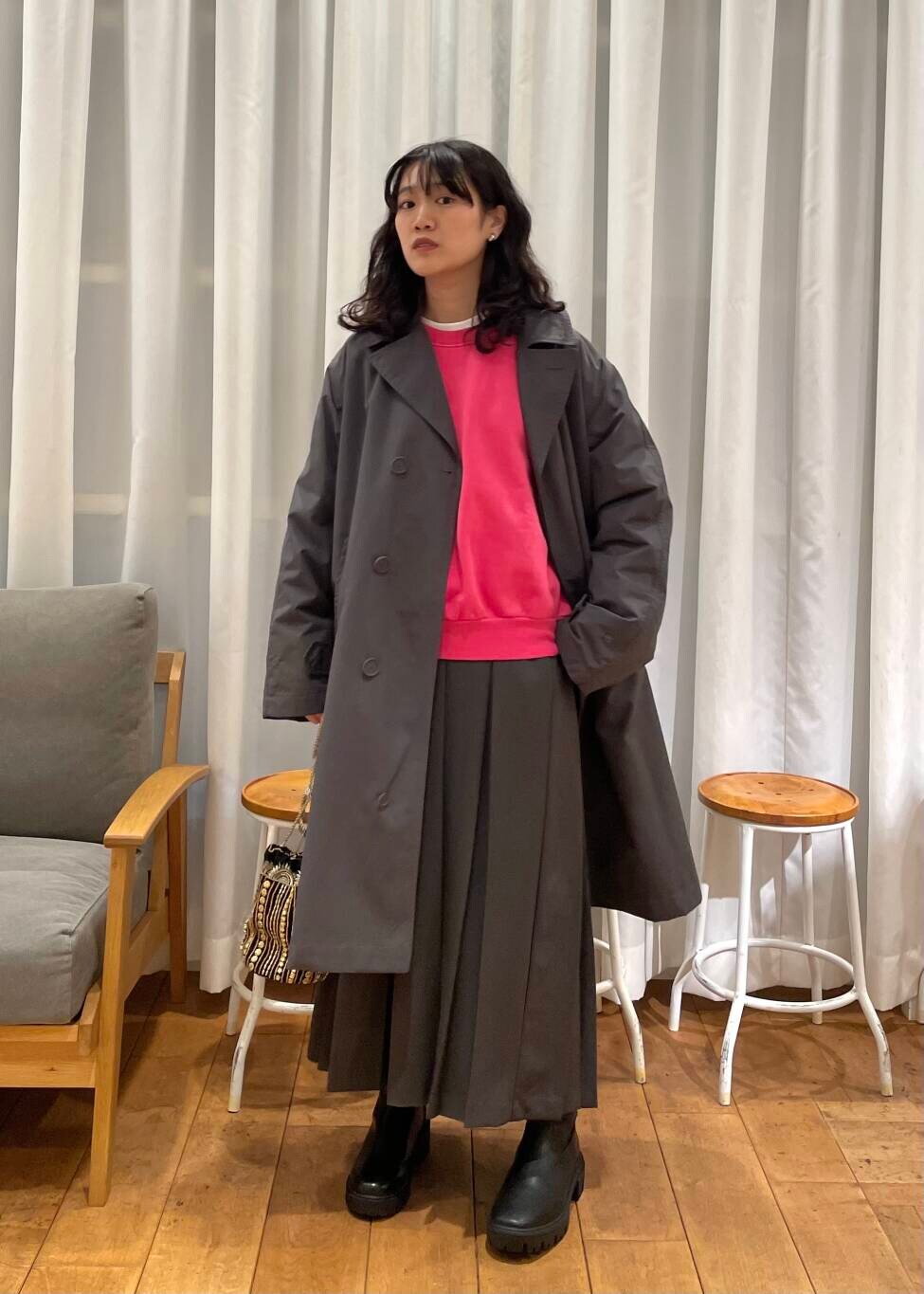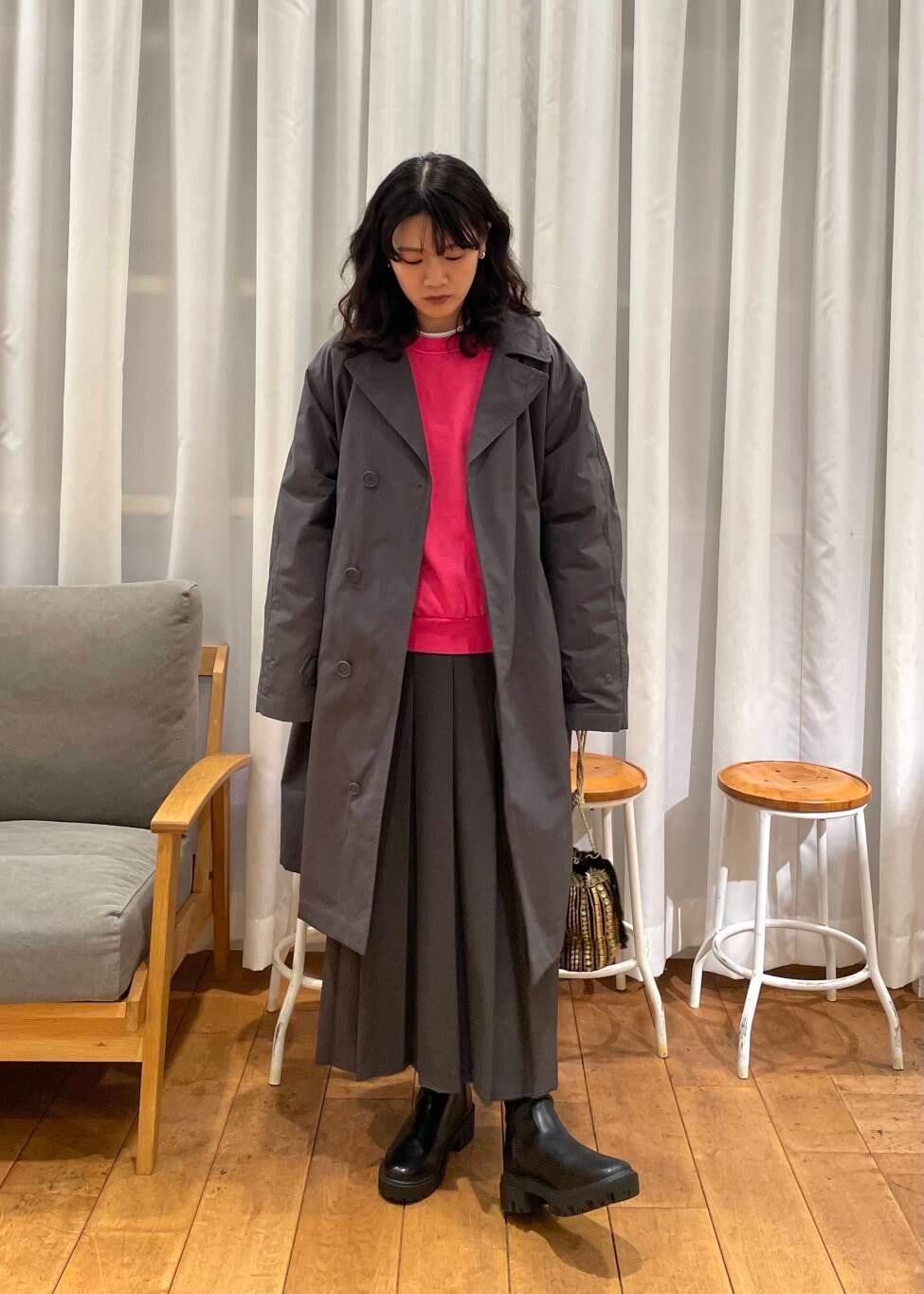 強い発色のものでもワントーンコーデのアクセントにすることで、