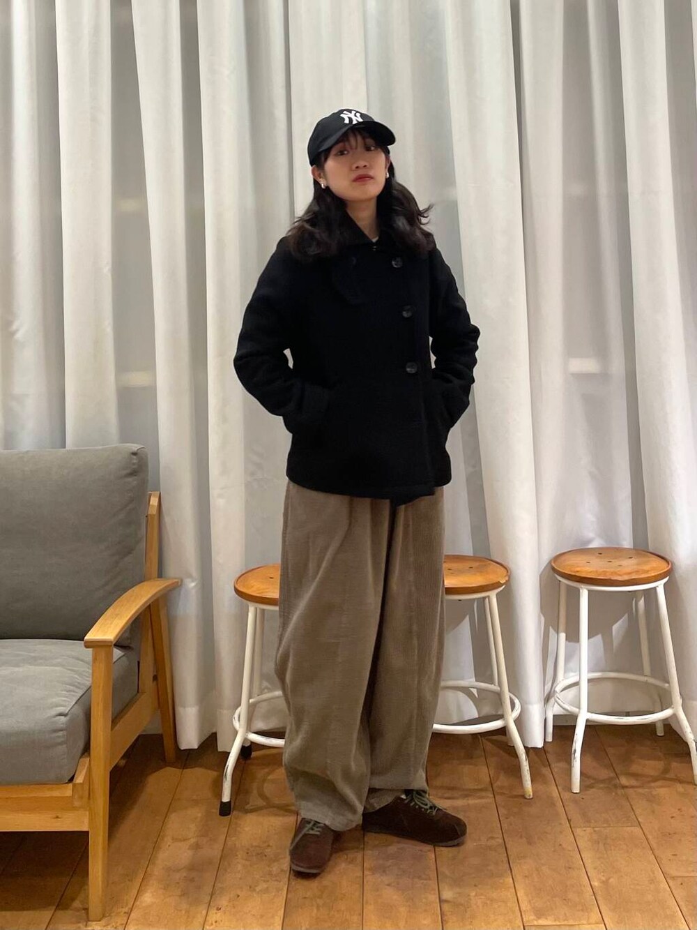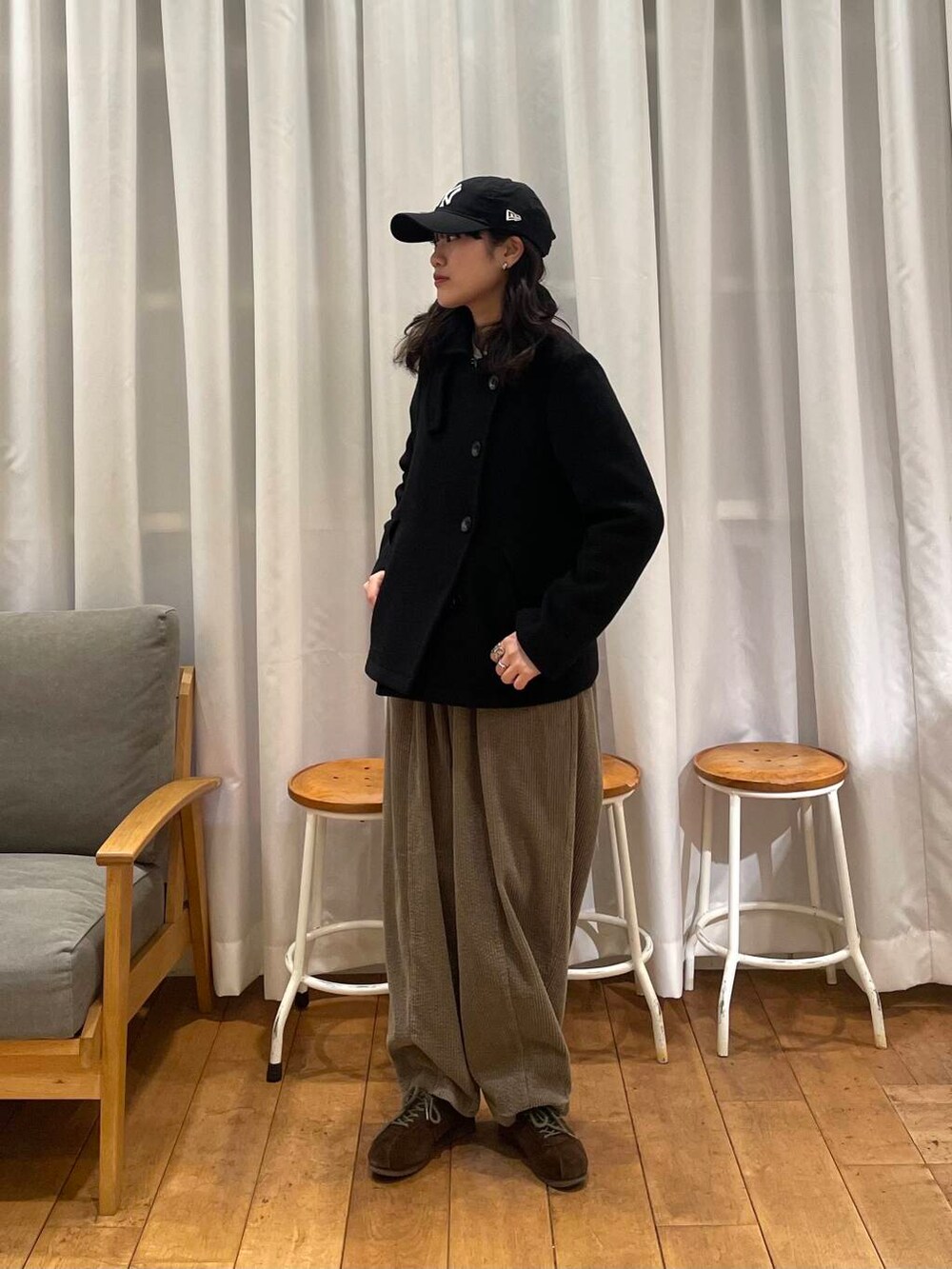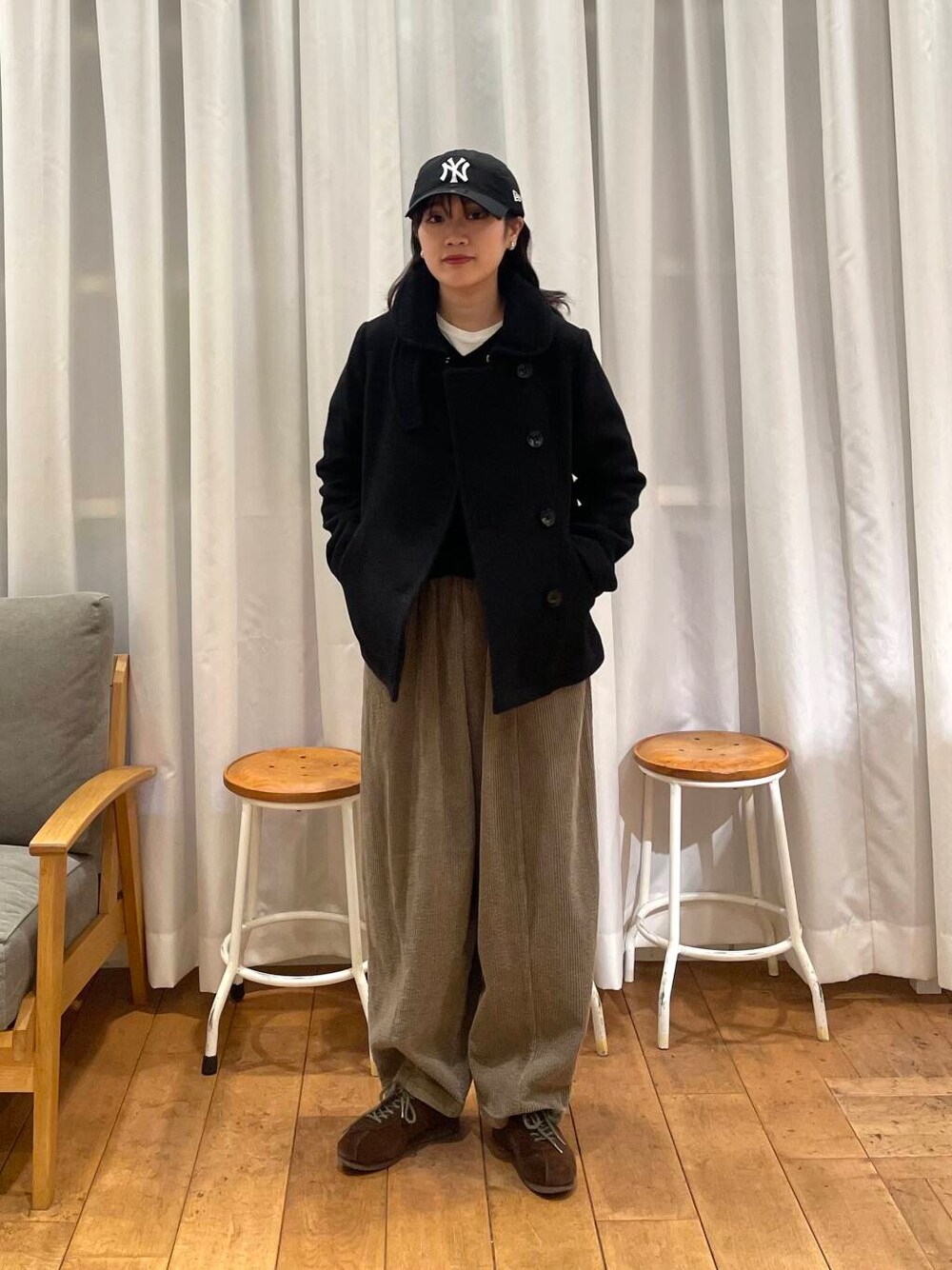 パンツがボリュームがしっかりあるので、トップスやアウターはコンパクトにしました◎
