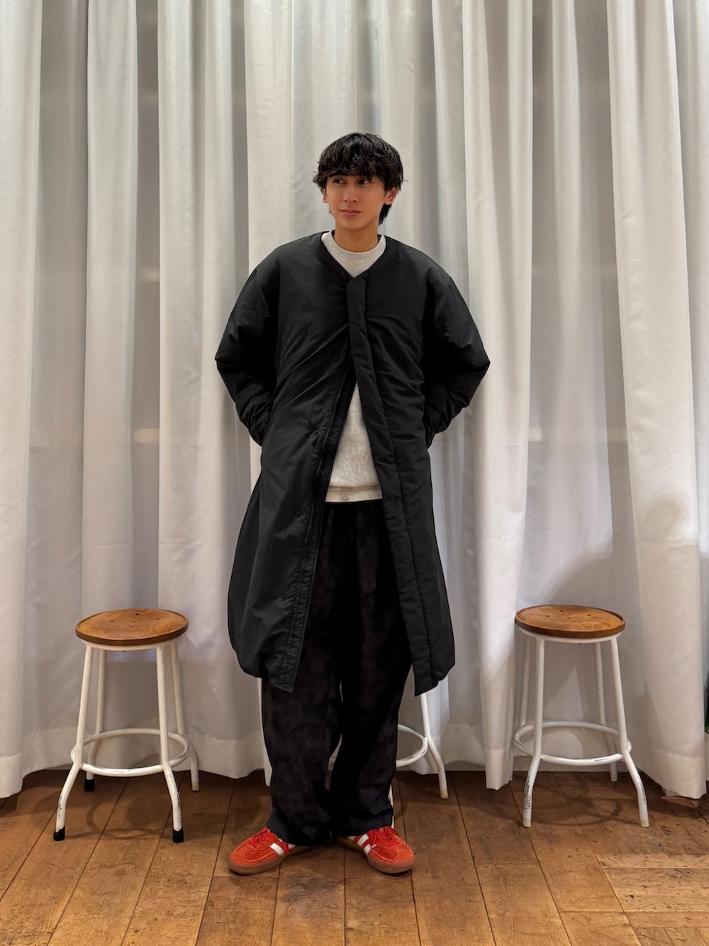 EKALのナイロンタッサーウォームパンツは、レイクウッドの色味をチョイスして柄を加えました✔︎︎︎︎