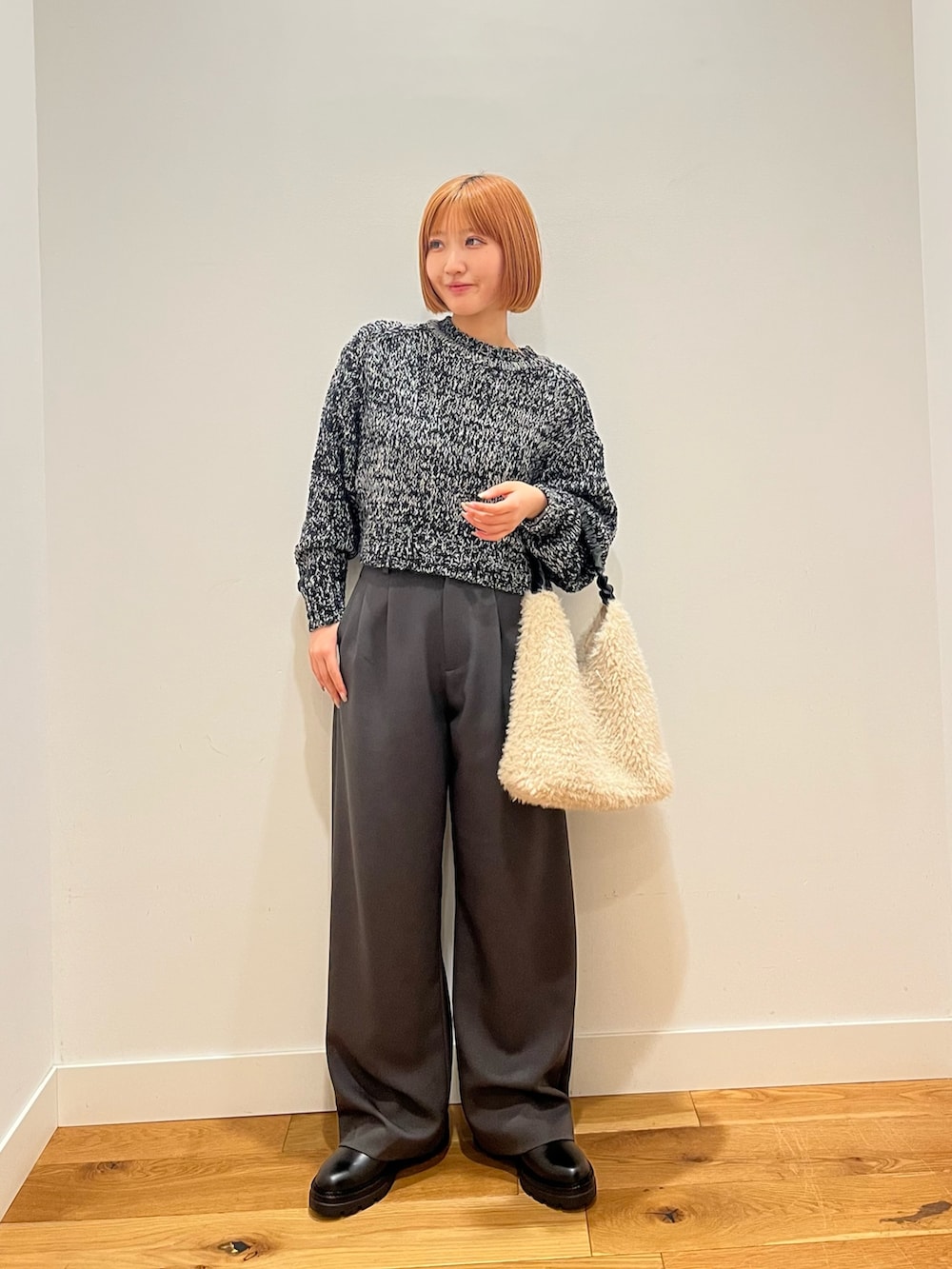 着丈がコンパクトなので、ボリュームのあるワイドパンツやフレアスカートと合わせても、すっきりとメリハリのある着こなしが楽しめます!