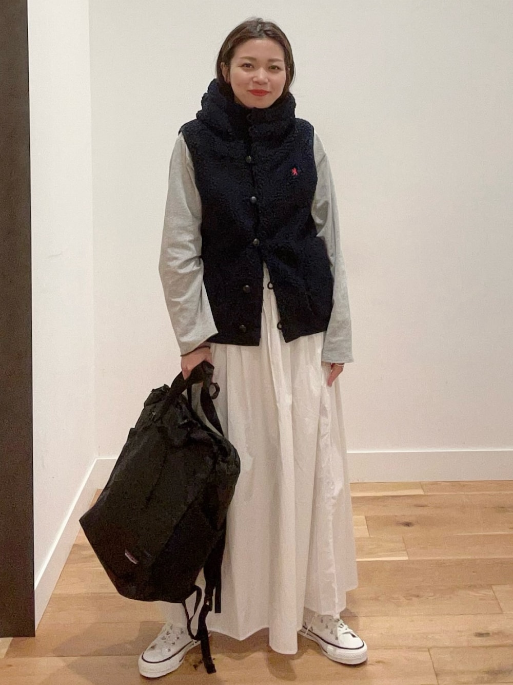 週末は寒くなるそうで。毎年レイヤードに大活躍のGYMPHLEXのボアベストコーデです◎