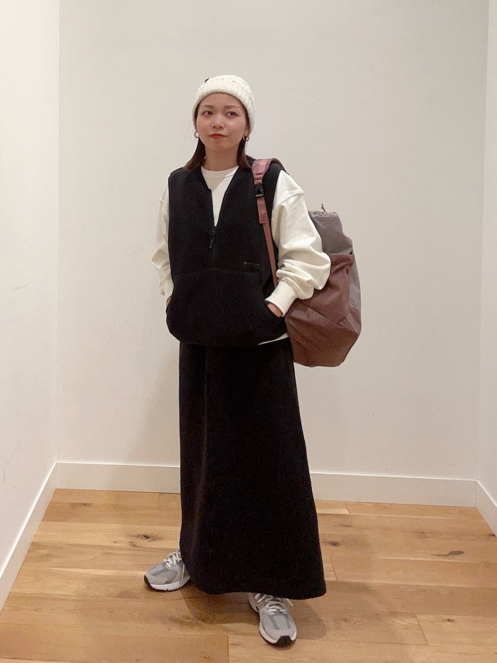 ベスト✖️スカートは、DOORS別注のsnow peakです。とんでもなく暖かいです。。!!