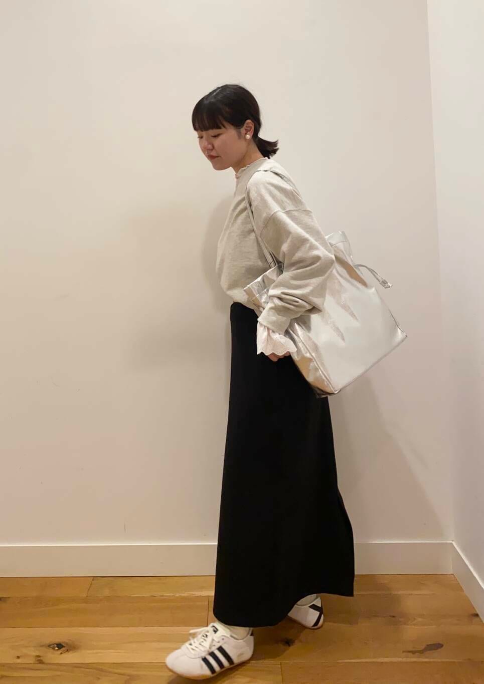今年の春はレースやブラウスなどの甘めアイテムが気になっていたので、スウェットを重ねて袖から少し出すコーディネート組んでみました。