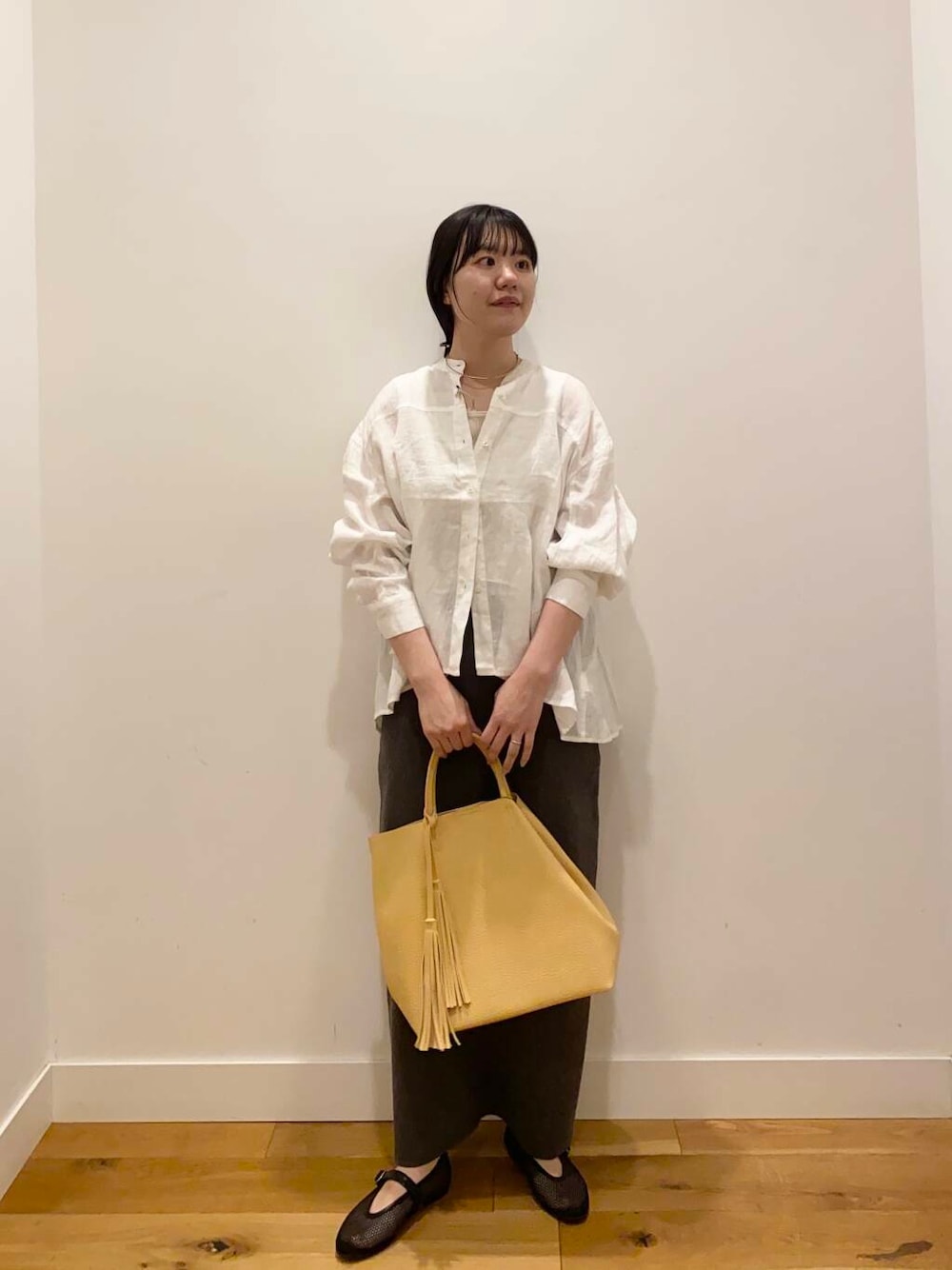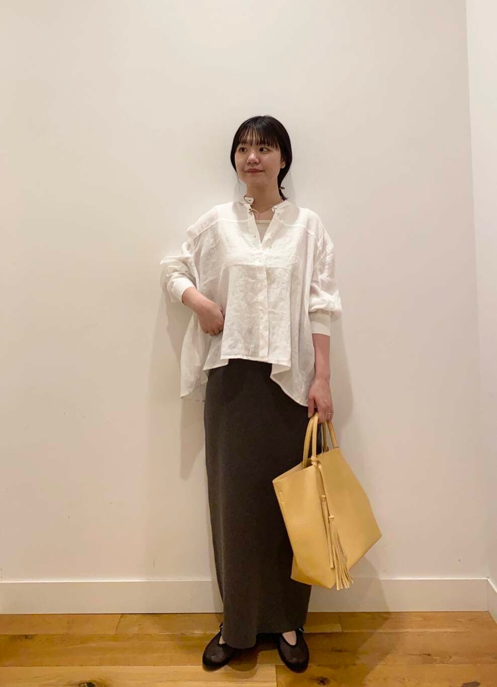 こちらのブラウスは立体的なカーブされてるようなデザインになっており、腿の張りやお尻をうまく隠してくれます。