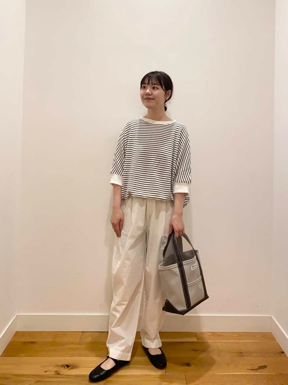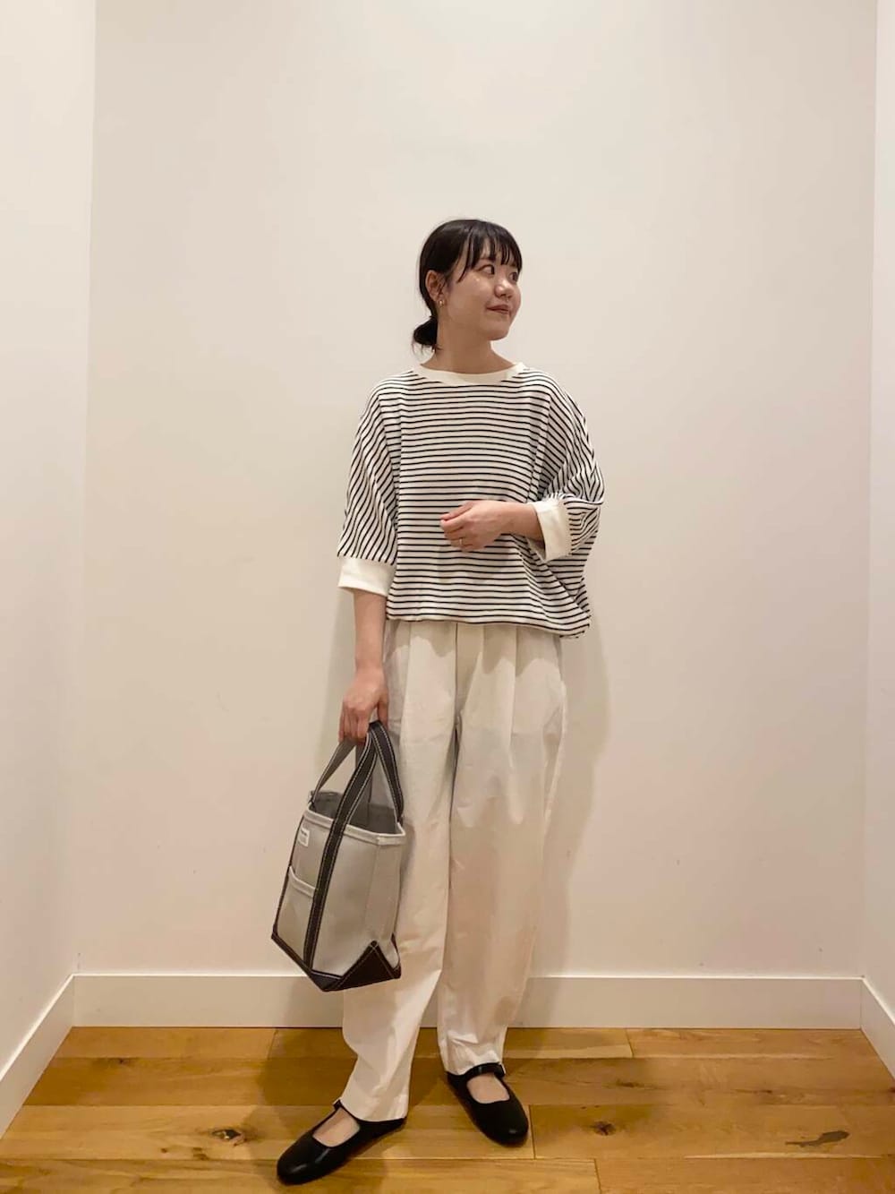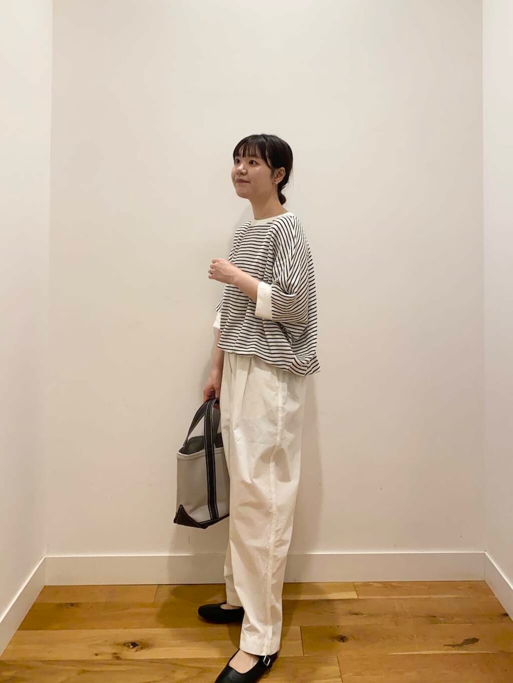 ボーダー×白パンツは爽やかな印象になってこれからの時期におすすめのスタイリングです。