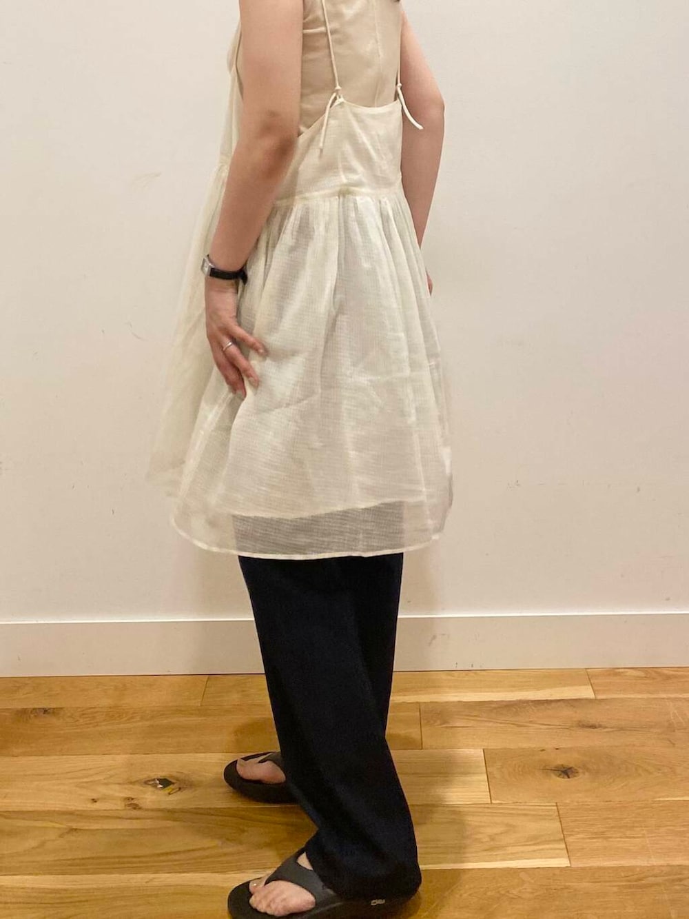 ふんわりとしたシルエットに合わせた細めのリボンが甘くなりすぎず、大人が着ていただきやすいデザインです。