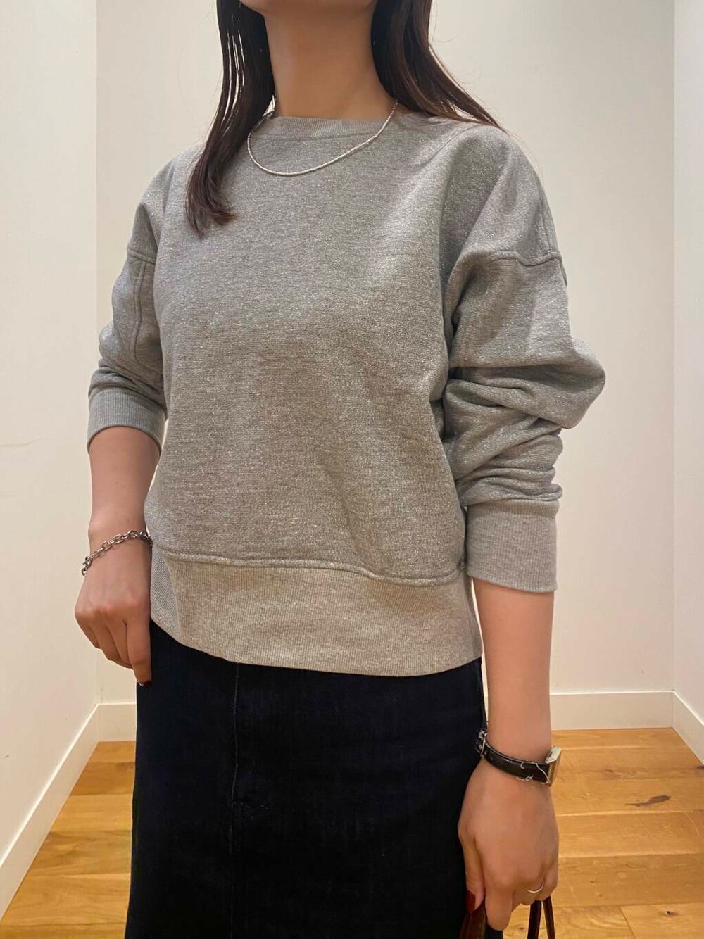 ラメの光沢が派手すぎず上品な印象のスウェットです。カジュアルになりすぎず、女性らしい雰囲気で着て頂けます。