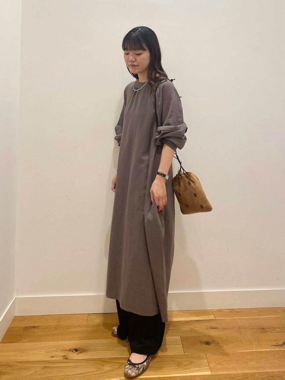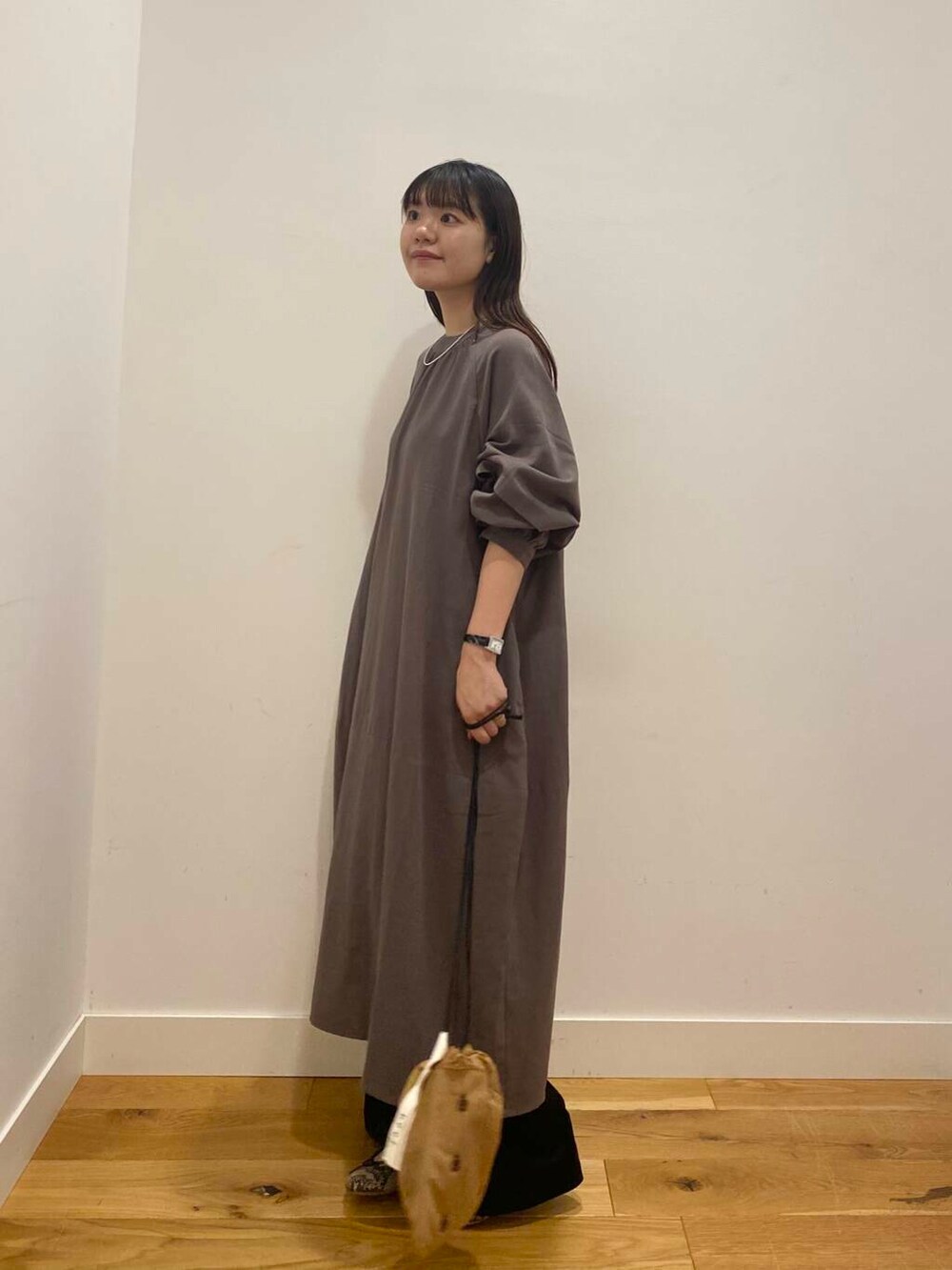 シンプルですが、袖に切り替えのデザインがあったり、首元がファスナーになっていたりと1枚で着映えするワンピースです。