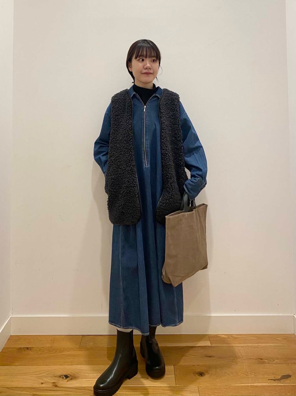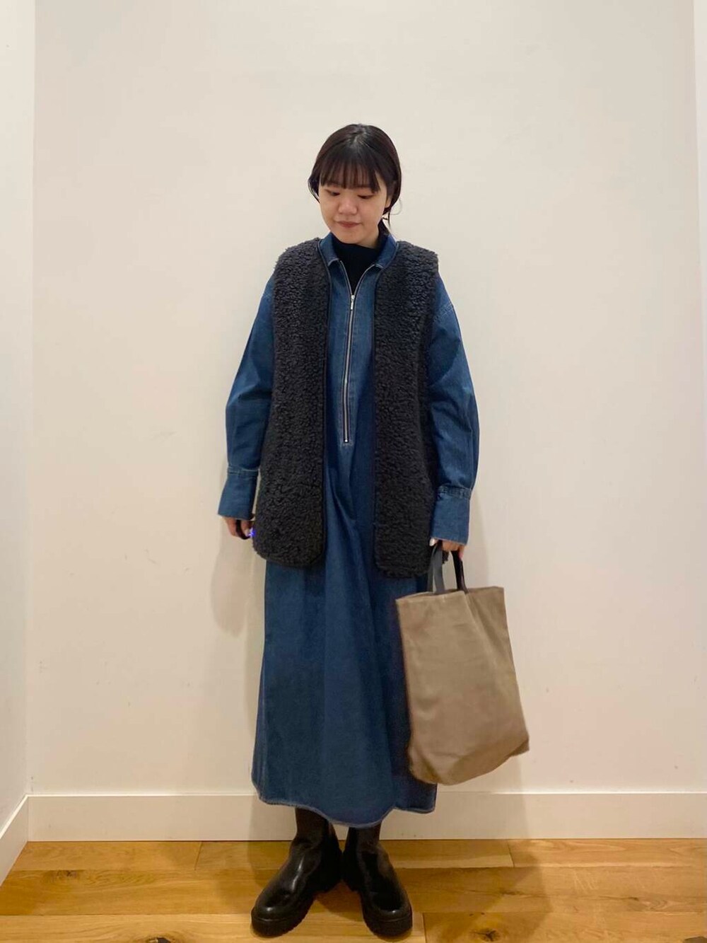 長めに設定したファスナーがインナー次第で印象が変わって着回しを楽しめるワンピースです。