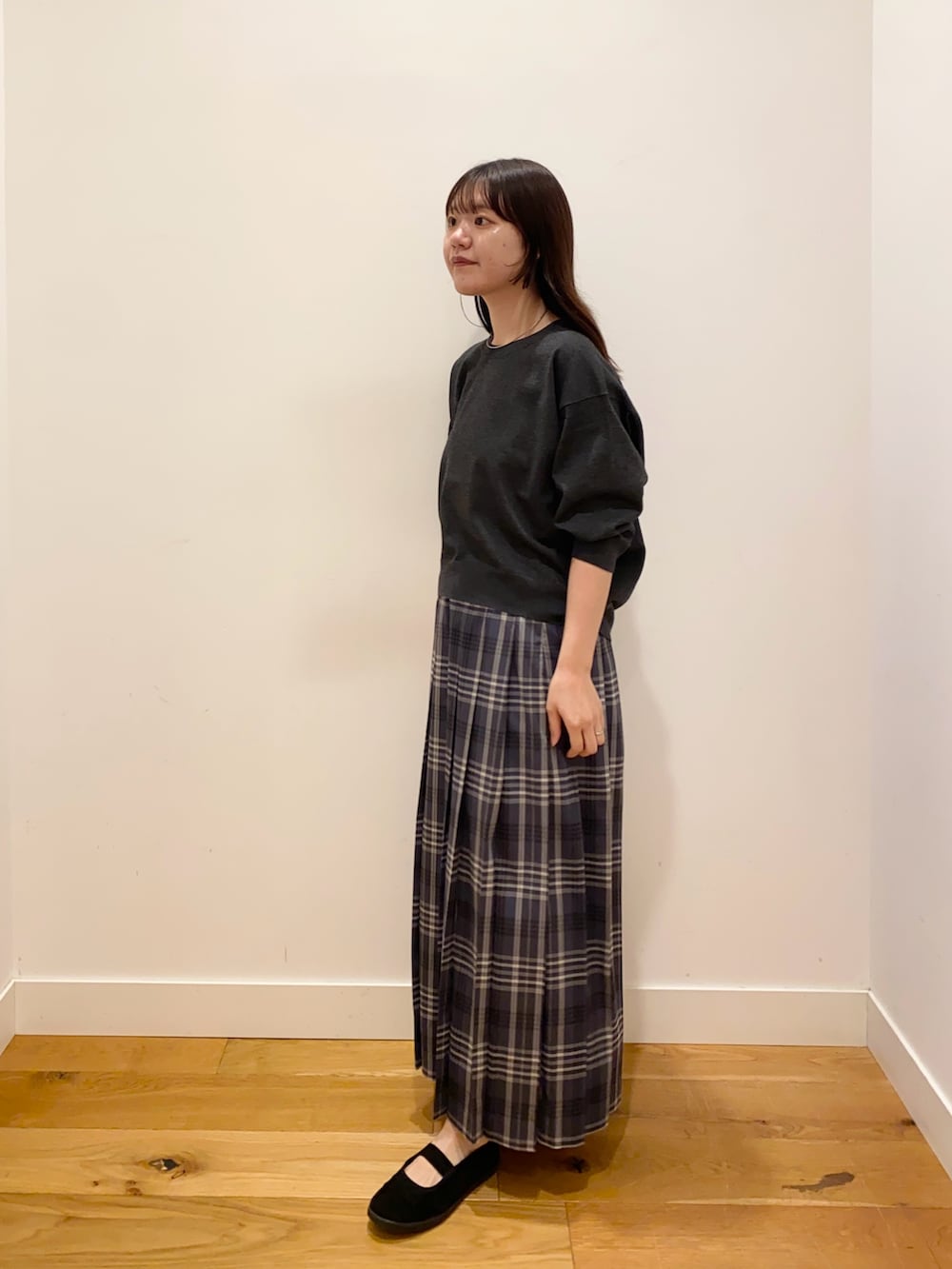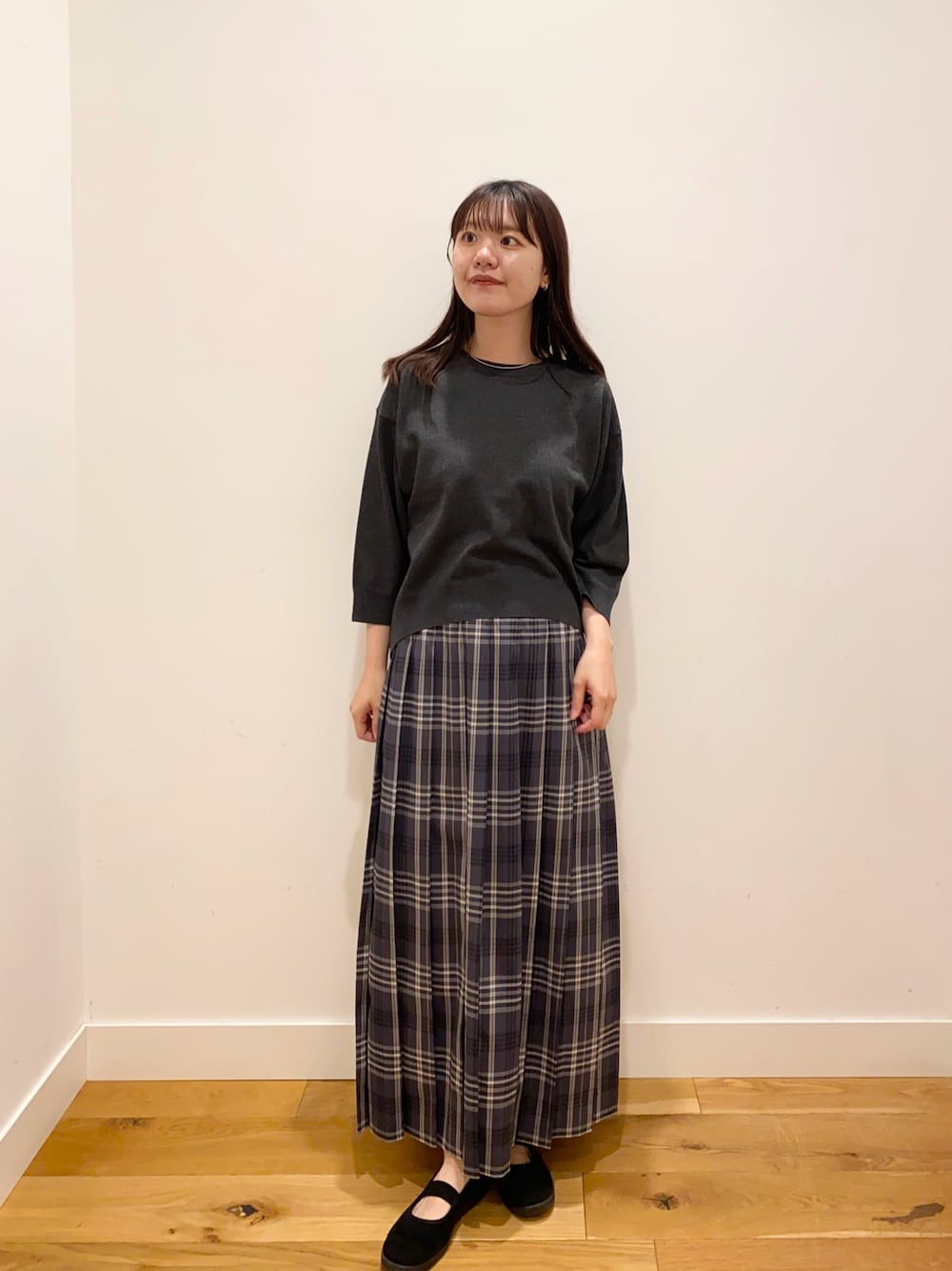 トップスは後ろが長くなっており、安心感ある着丈で着やすいです。