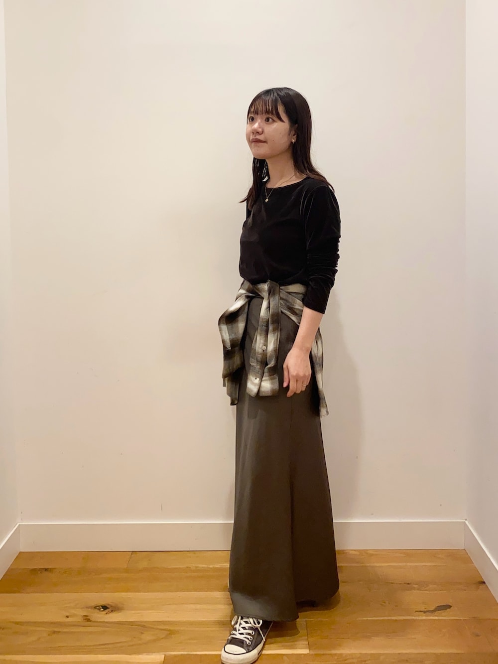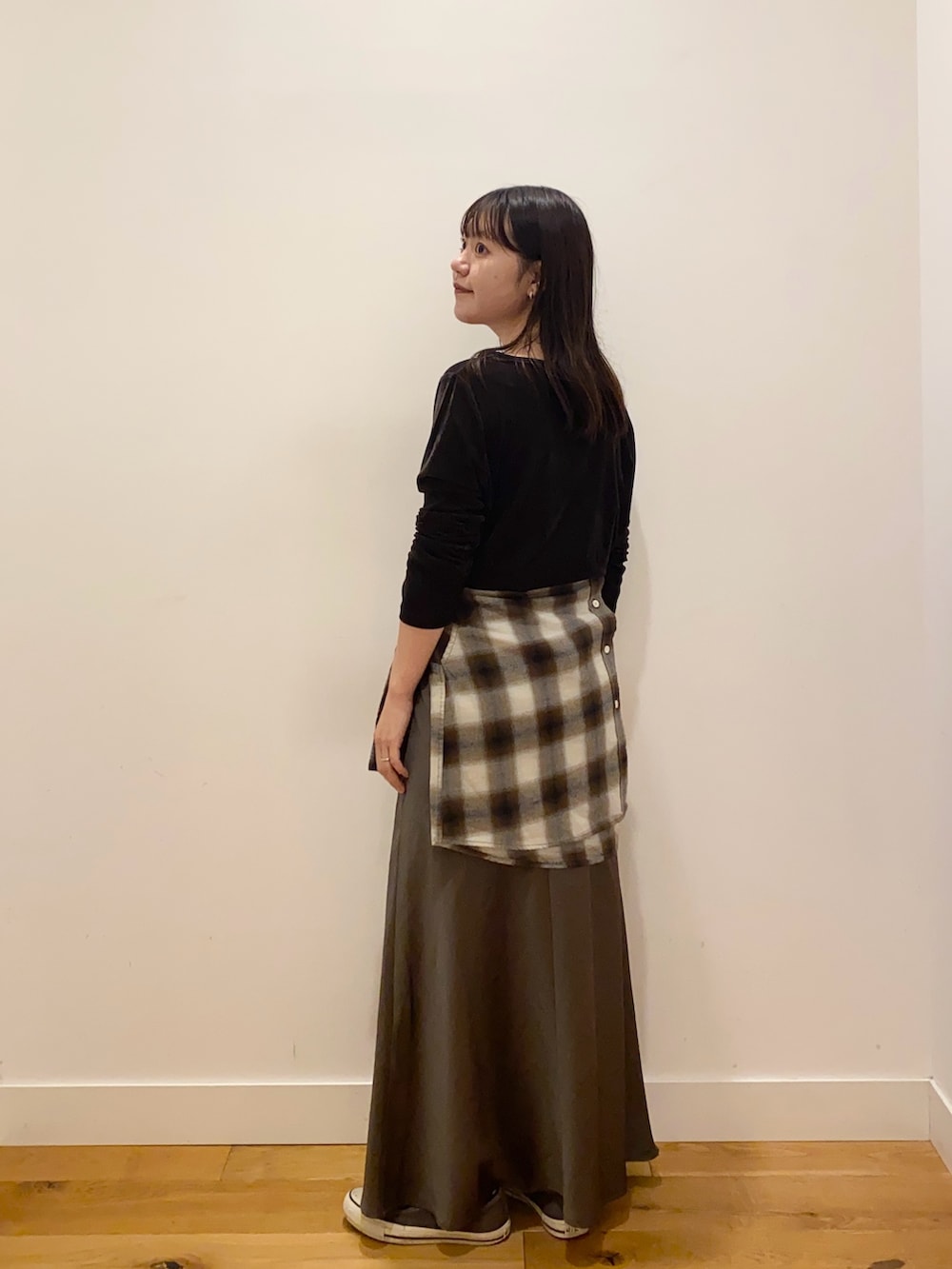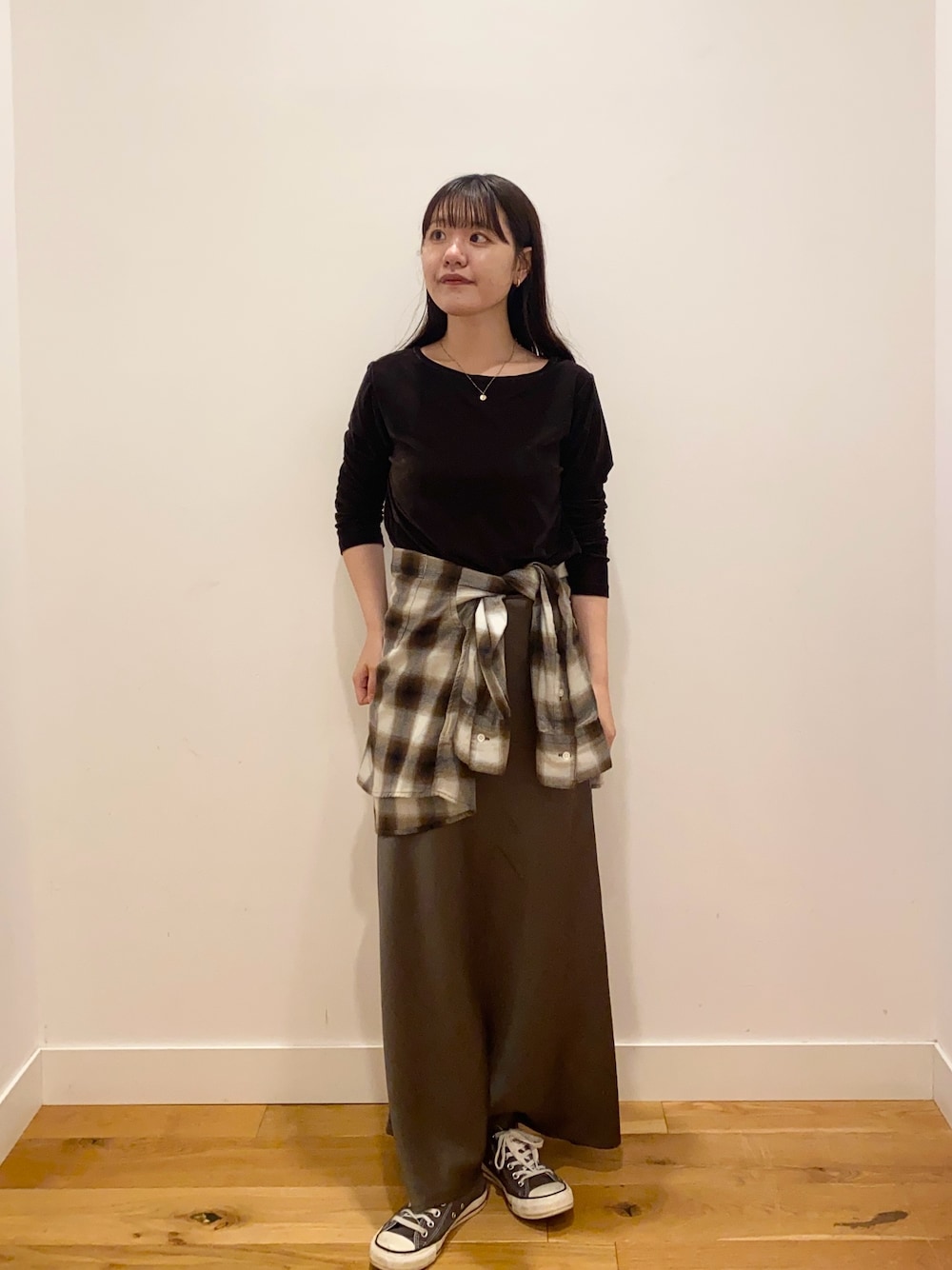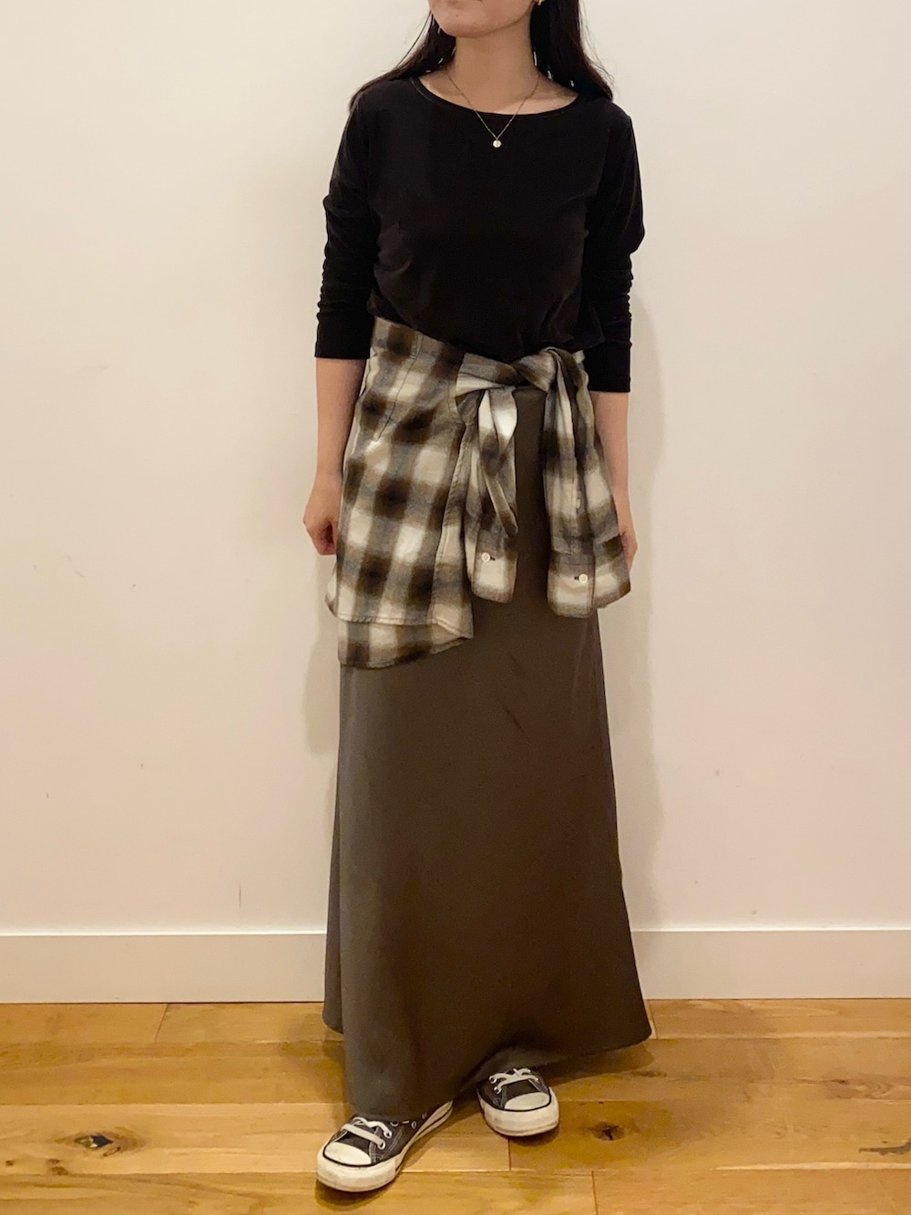 今年トレンドのブラウンコーデにしました。チェックシャツは巻いたり羽織ったり色々着回しができておすすめアイテムです!
