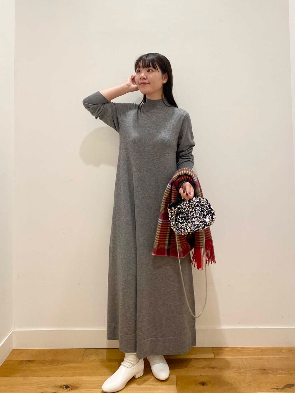 キラキラバッグと合わせて、ホリデーデートコーデをイメージしました◎
