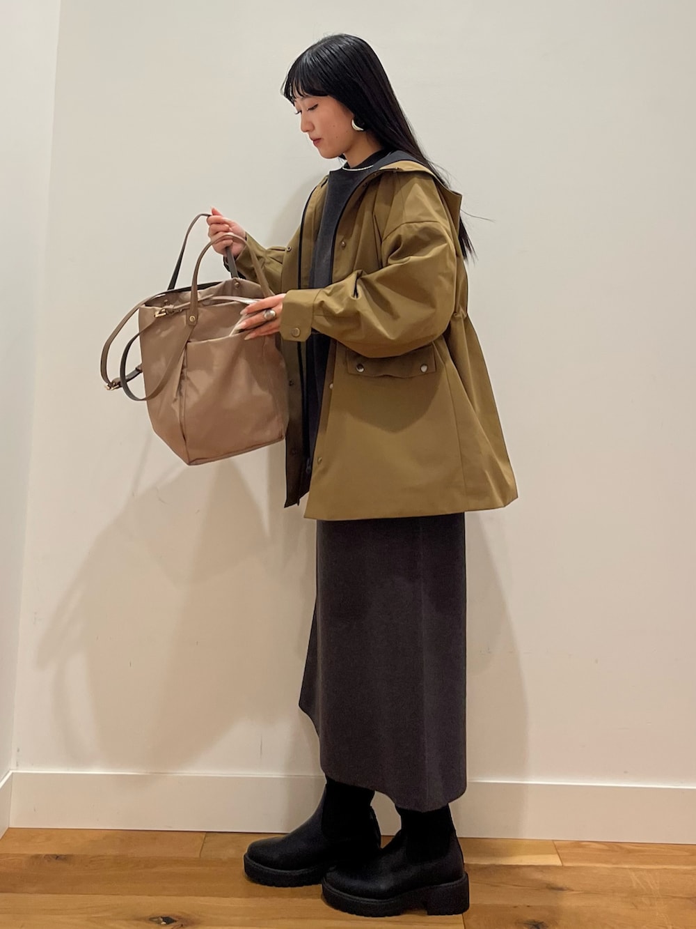 オーバーサイズなので中に厚手のニットも着れちゃう!