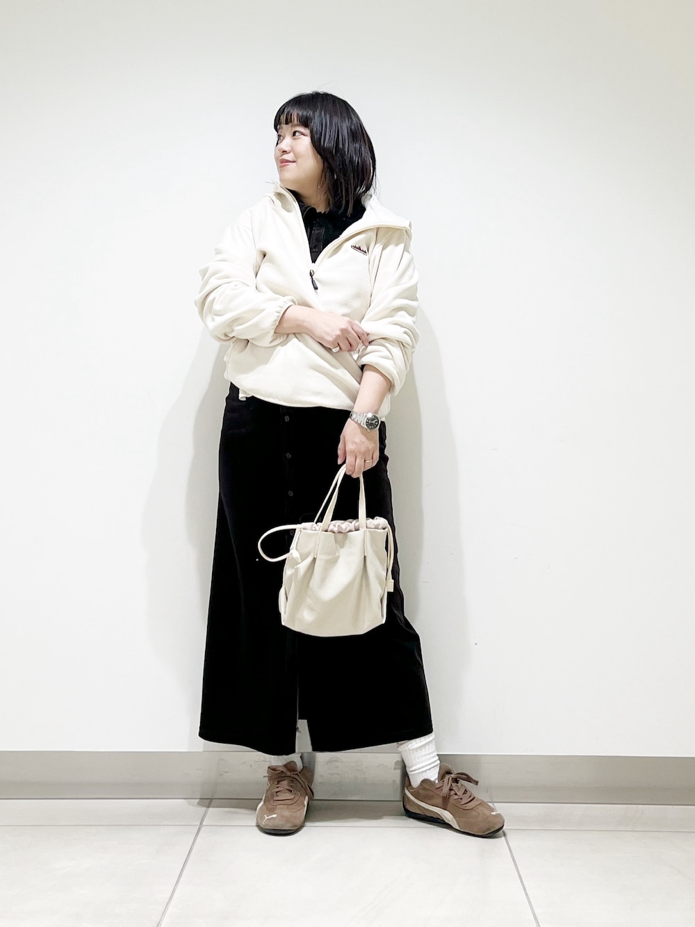 ボトムはブラックデニム合わせで、秋の匂いをプラス!