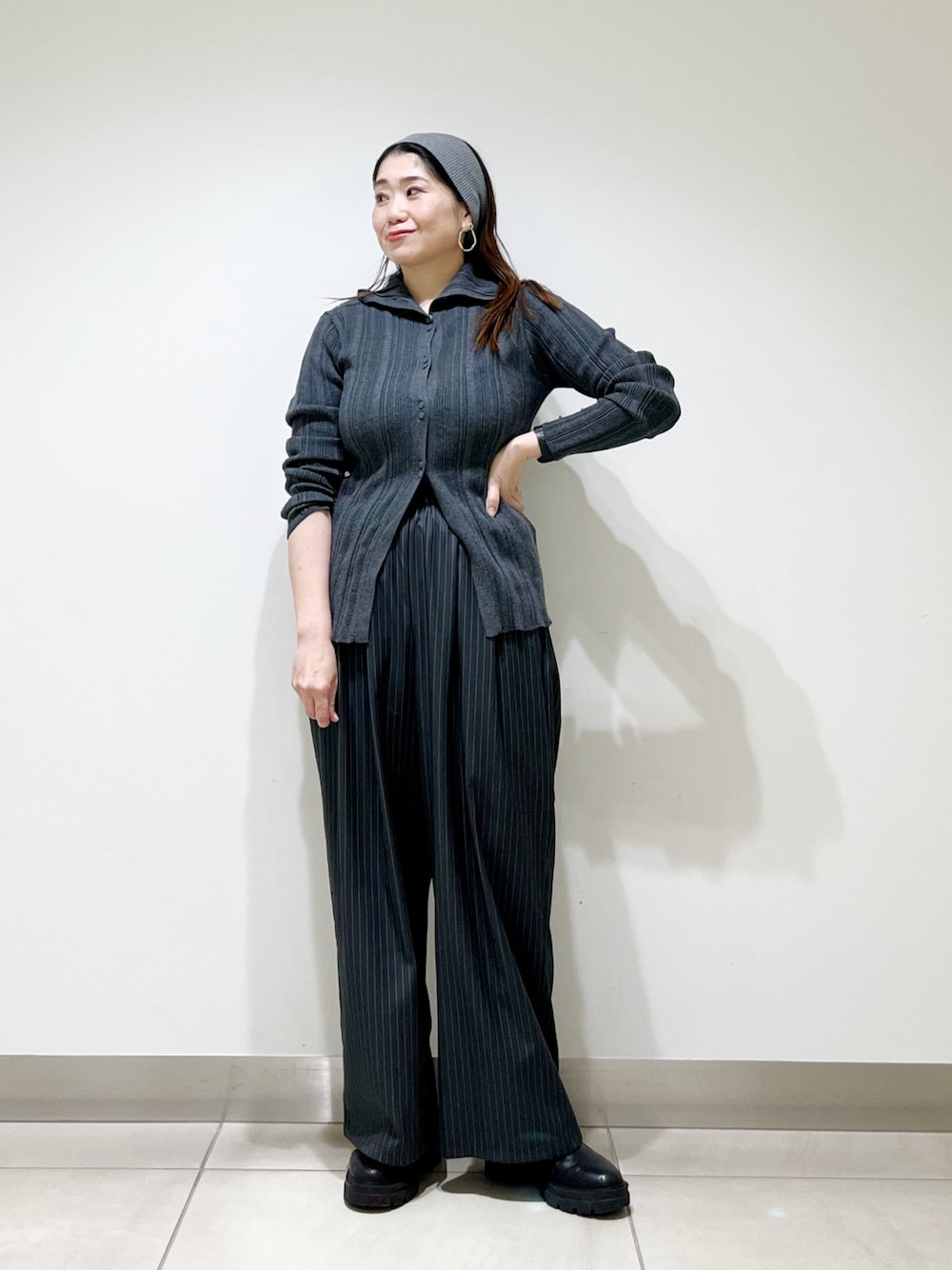 程よい高さのモックネックで一枚でもキレイ目な印象に。