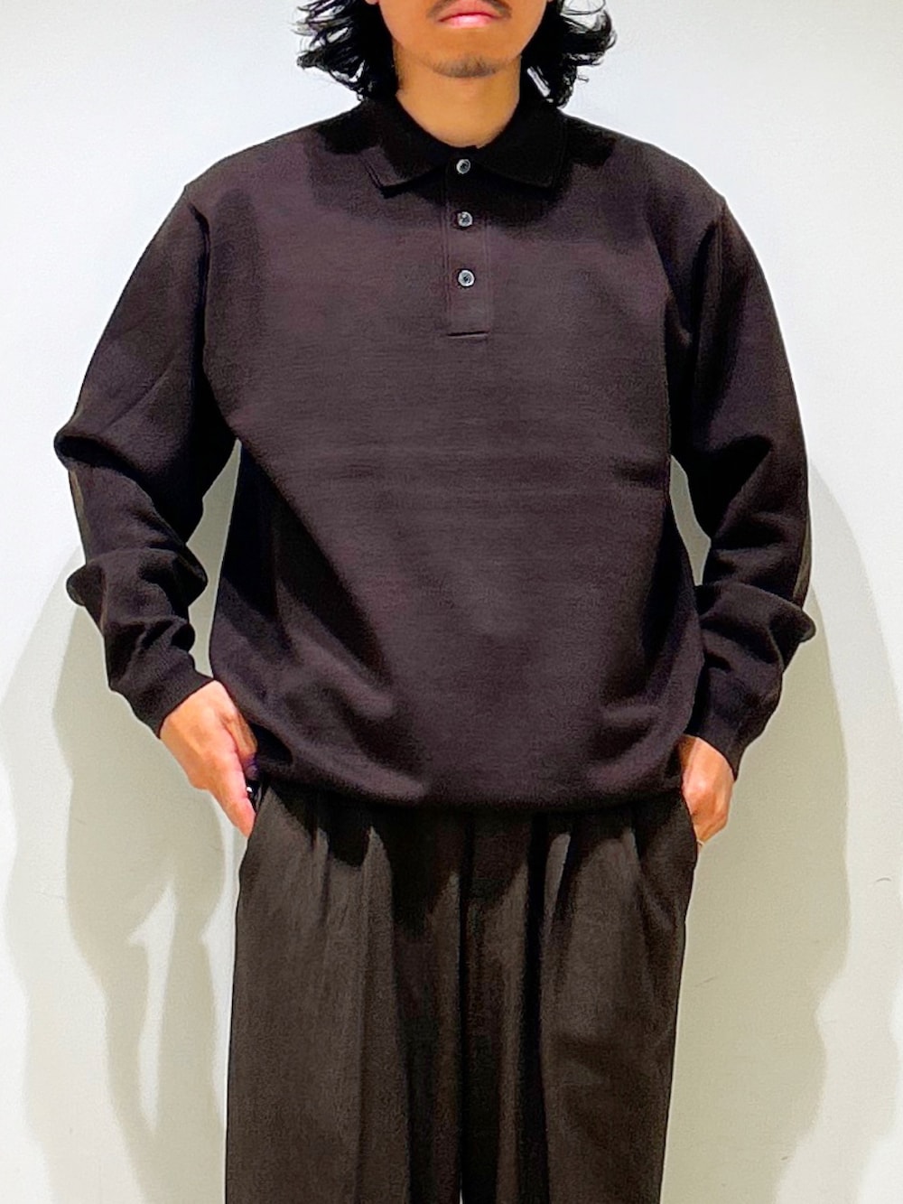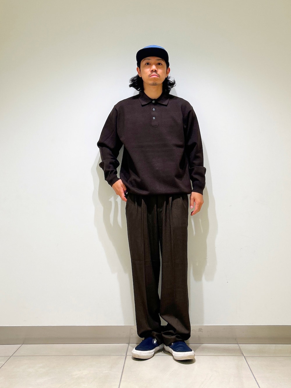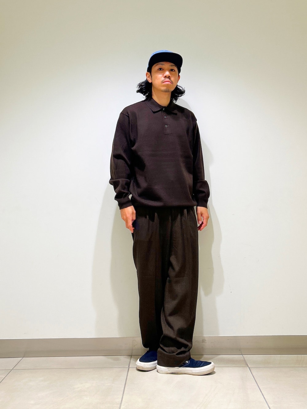 ポロシャツとワイドトラウザーでキレイめ感を維持しつつ、ルーズなシルエットでカジュアル感もプラスしたちょうどいいバランス◉