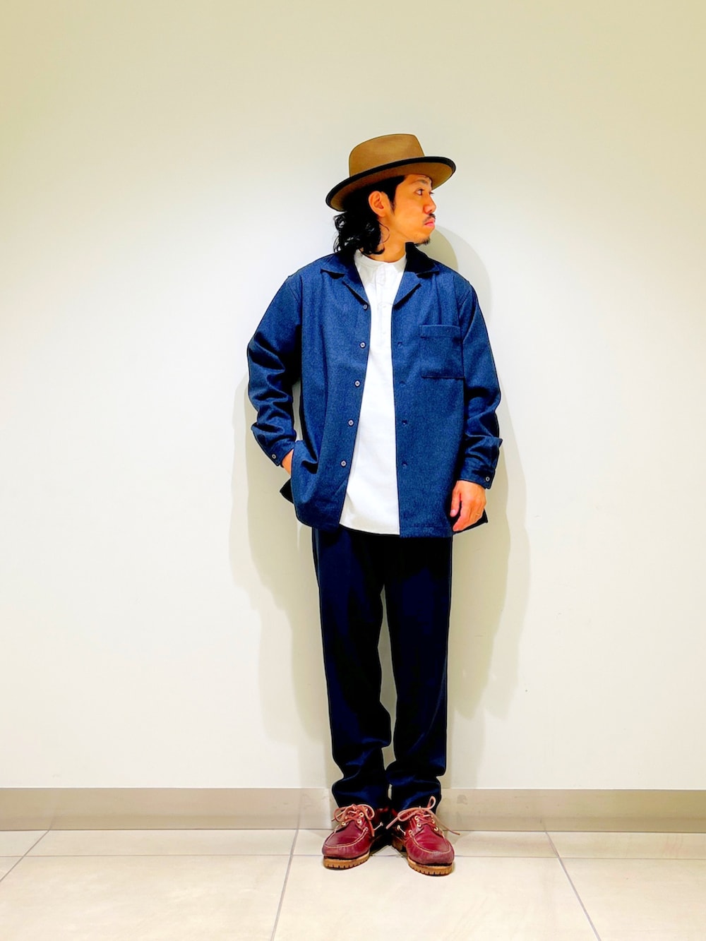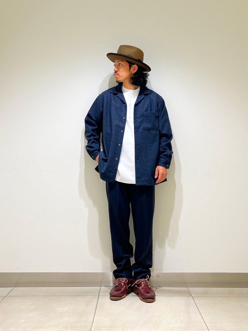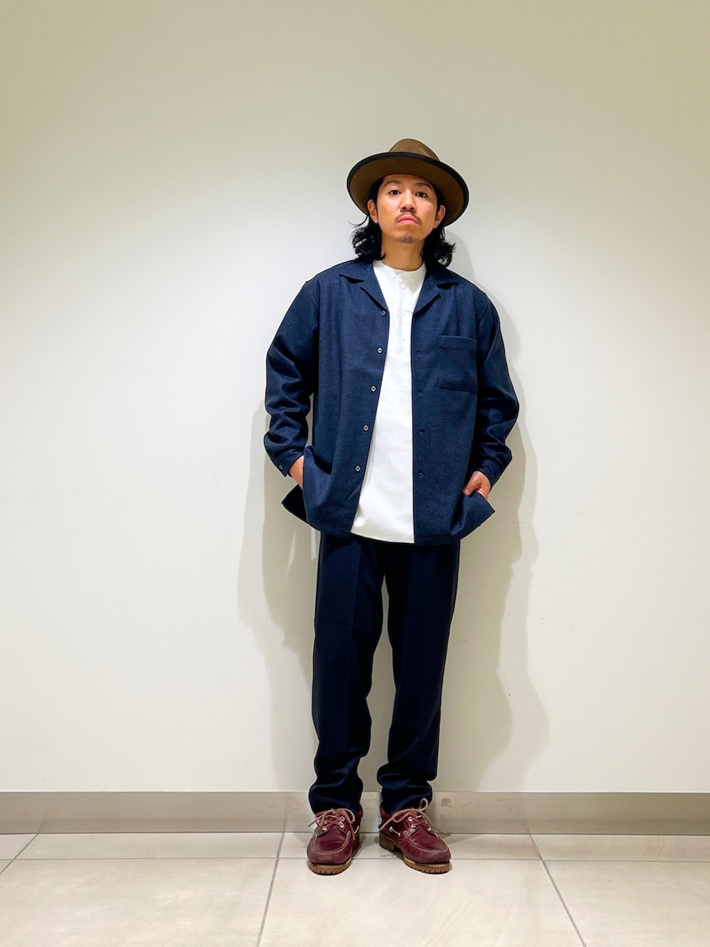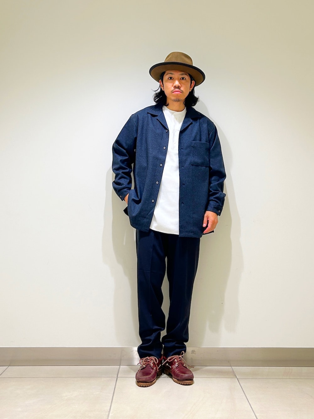 首元が開くオープンカラーシャツにはヘンリーネックでアクセントを。