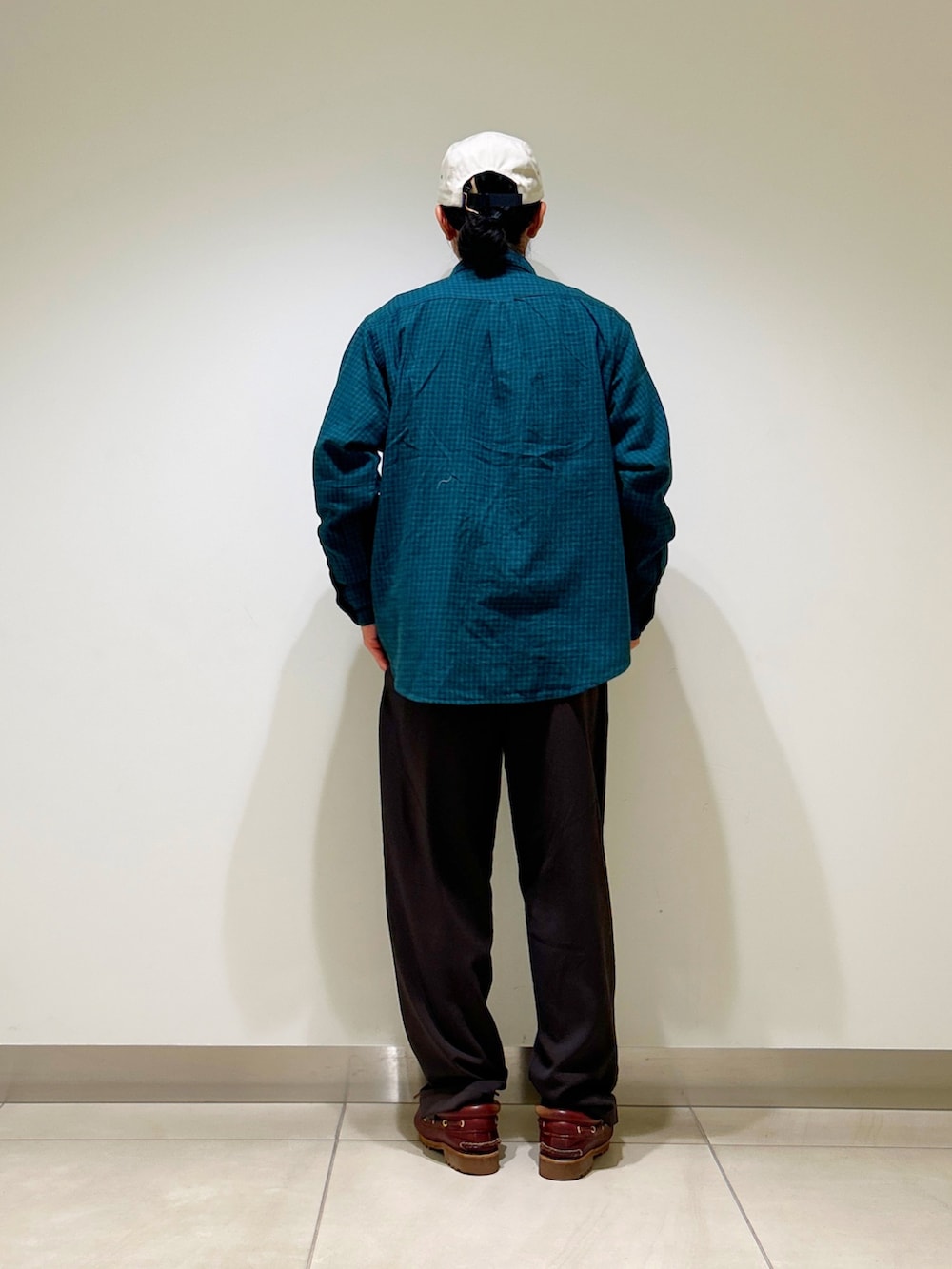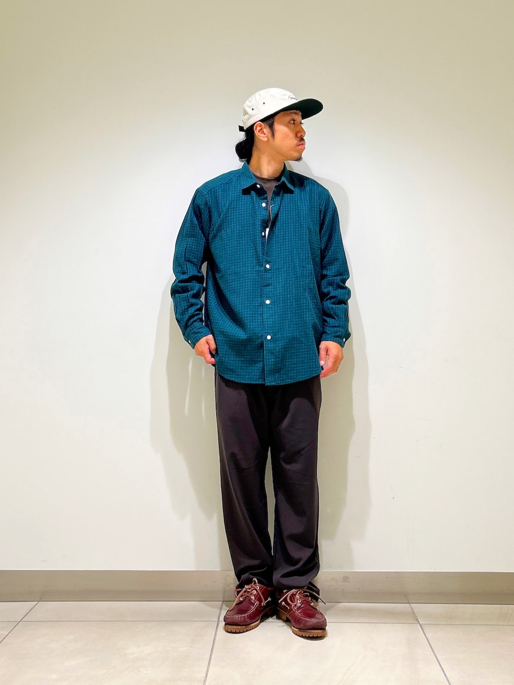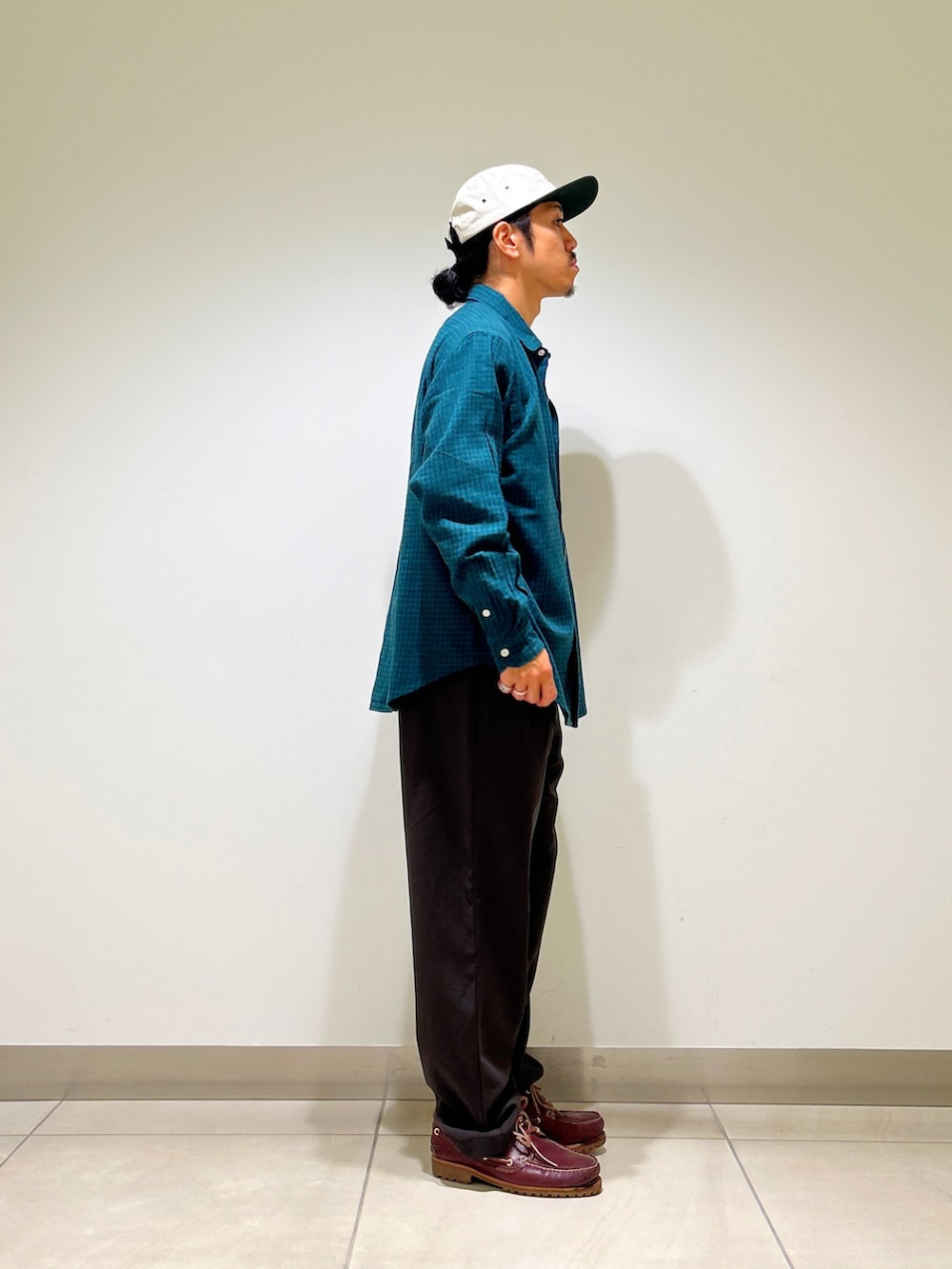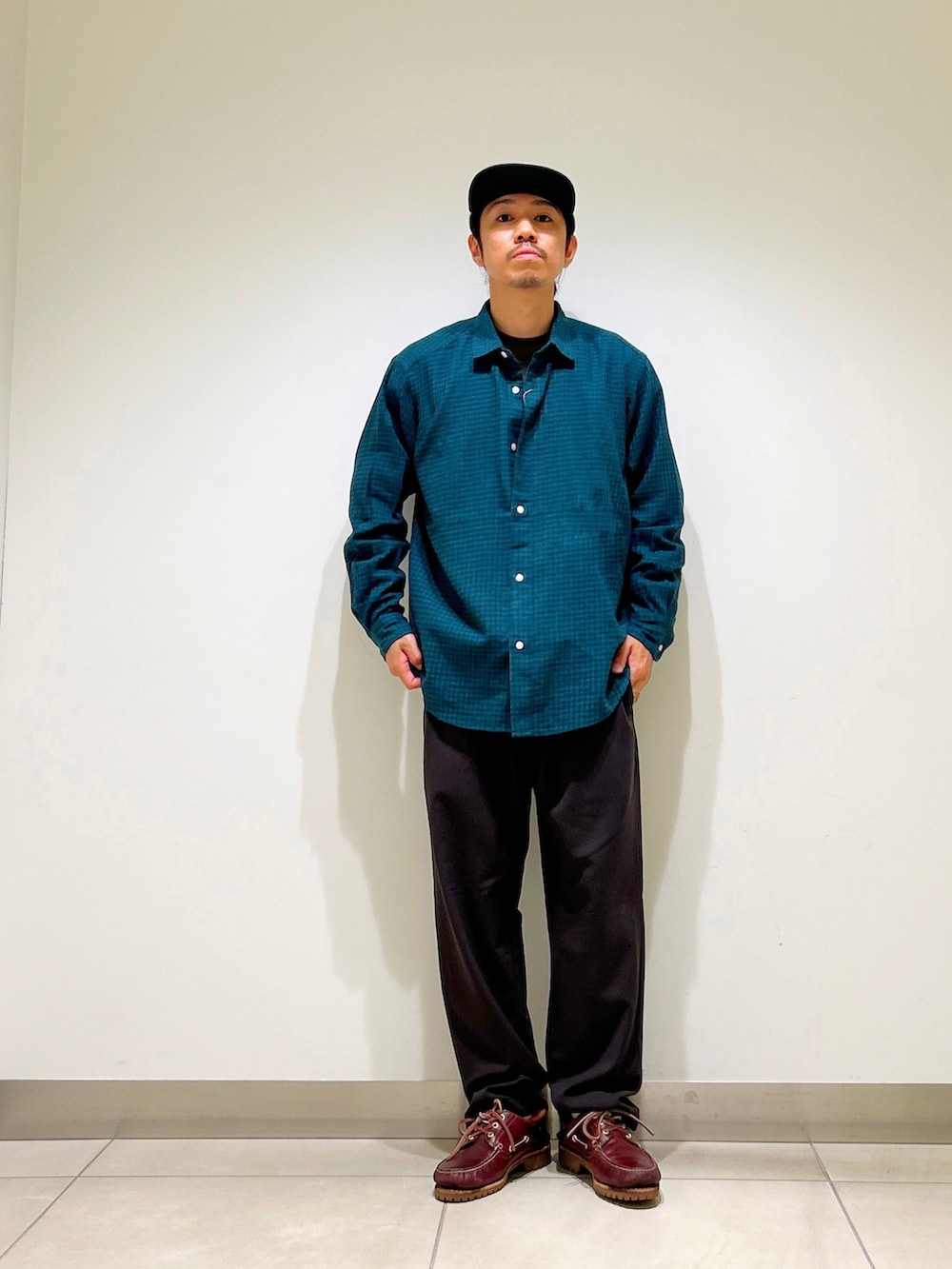 ・梳毛のような上品な表情を持つウールライク素材を使用し、適度なハリとコシが特徴。秋らしい落ち着きのあるムードを演出します。