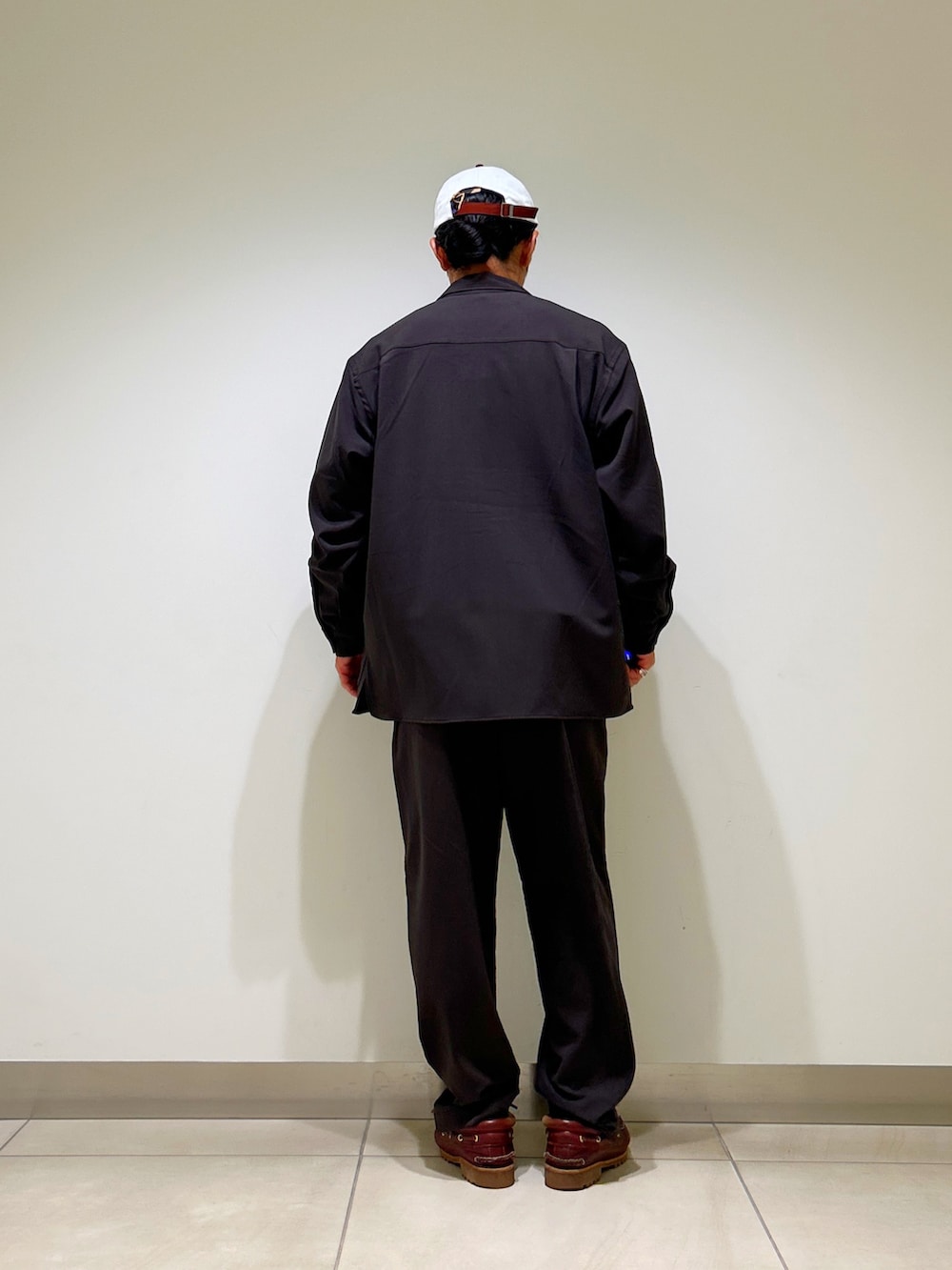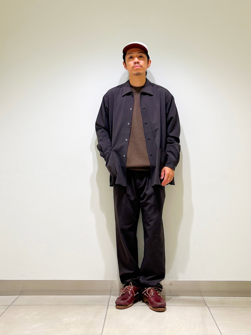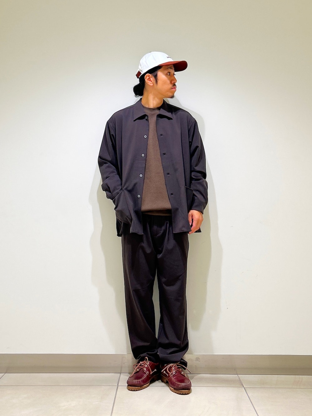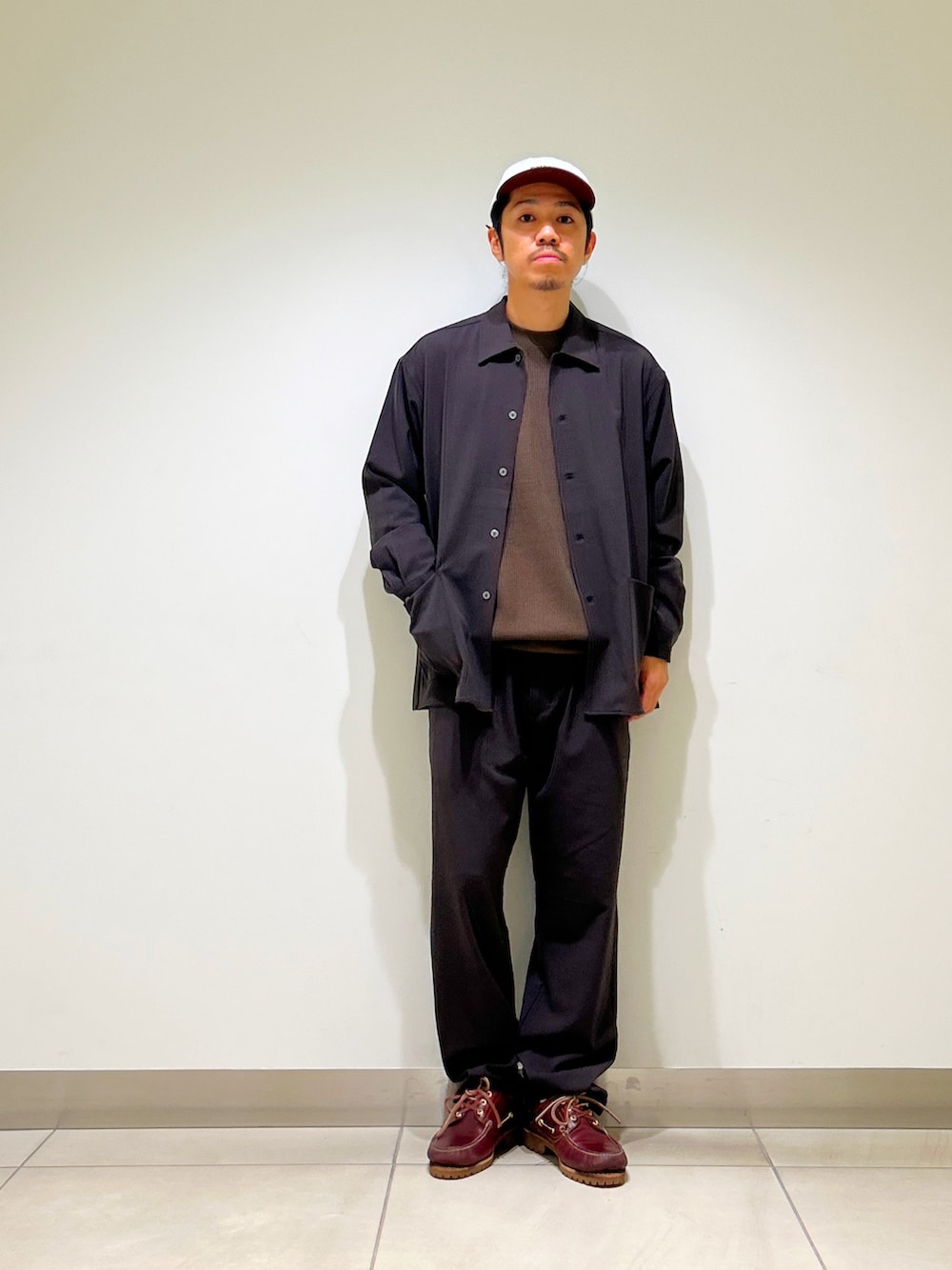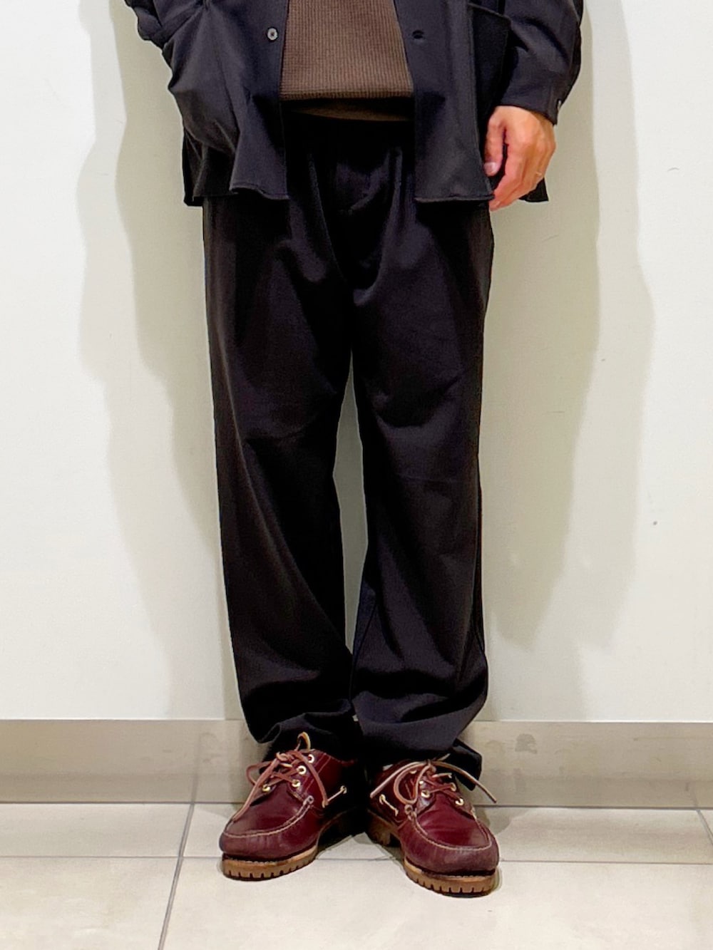 ・梳毛のような上品な表情を持つウールライク素材を使用し、適度なハリとコシが特徴。秋らしいシックなムードを演出します。