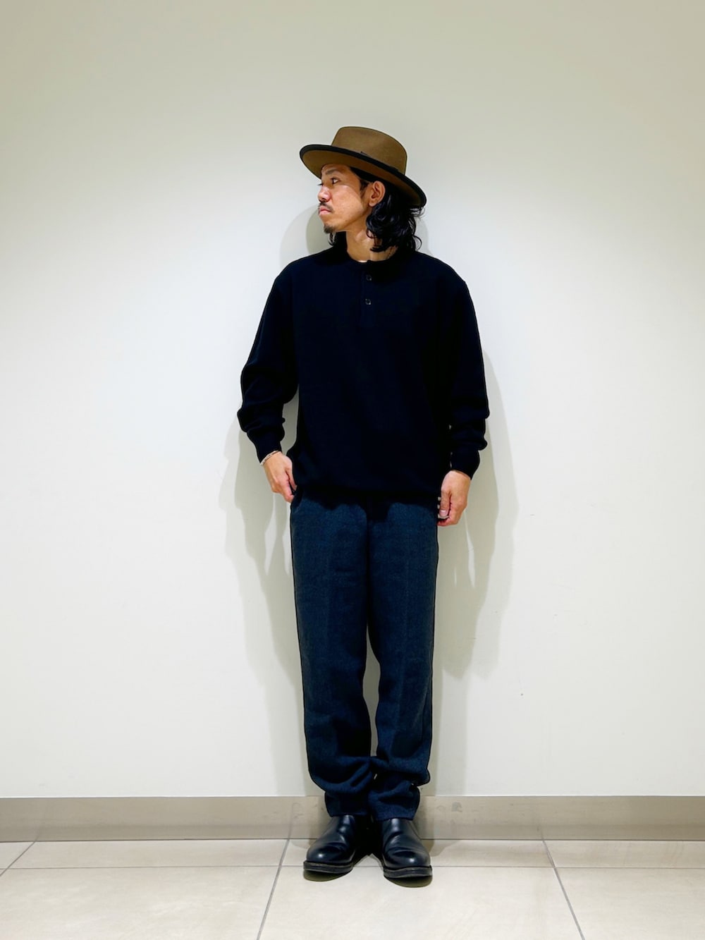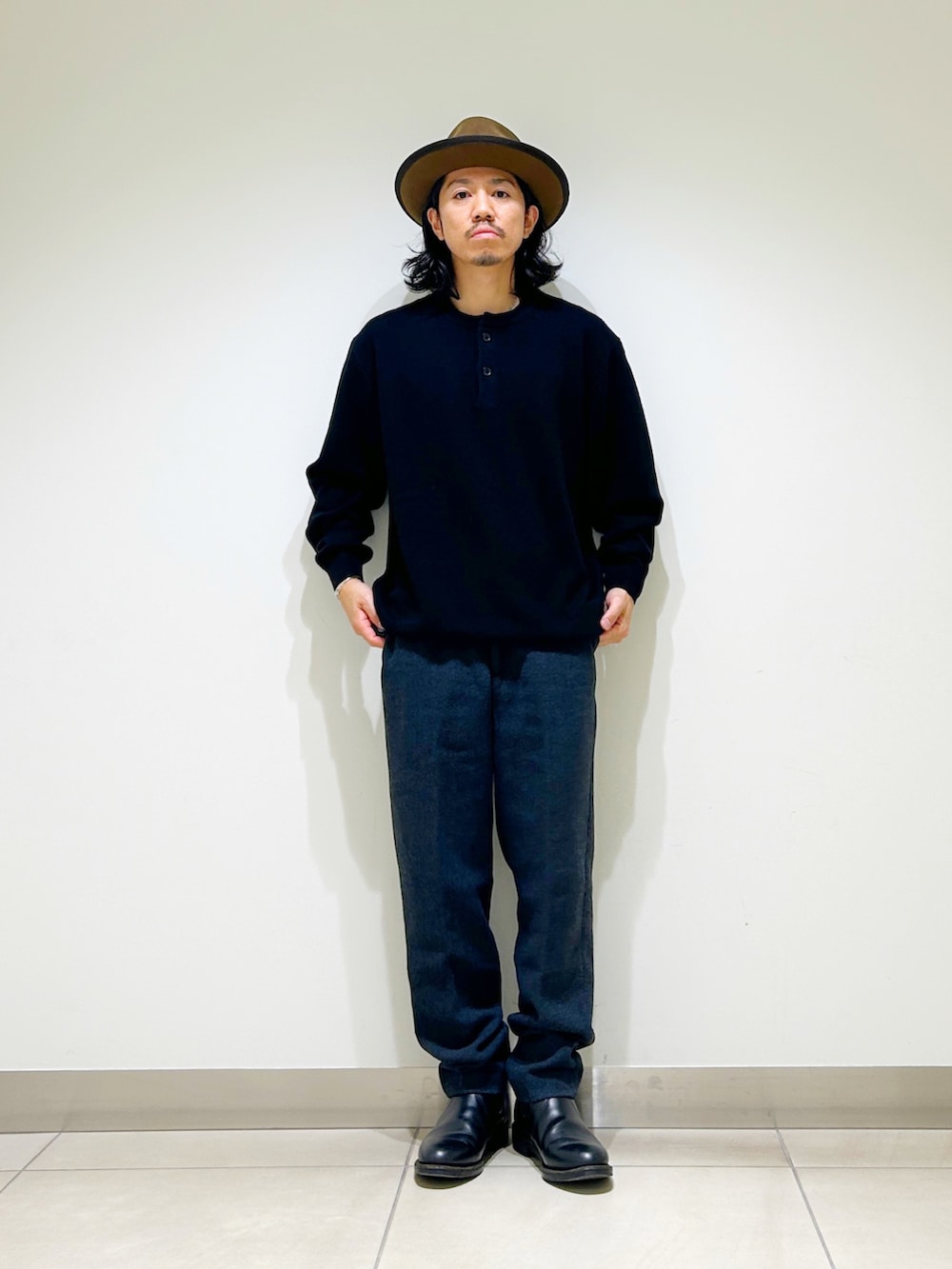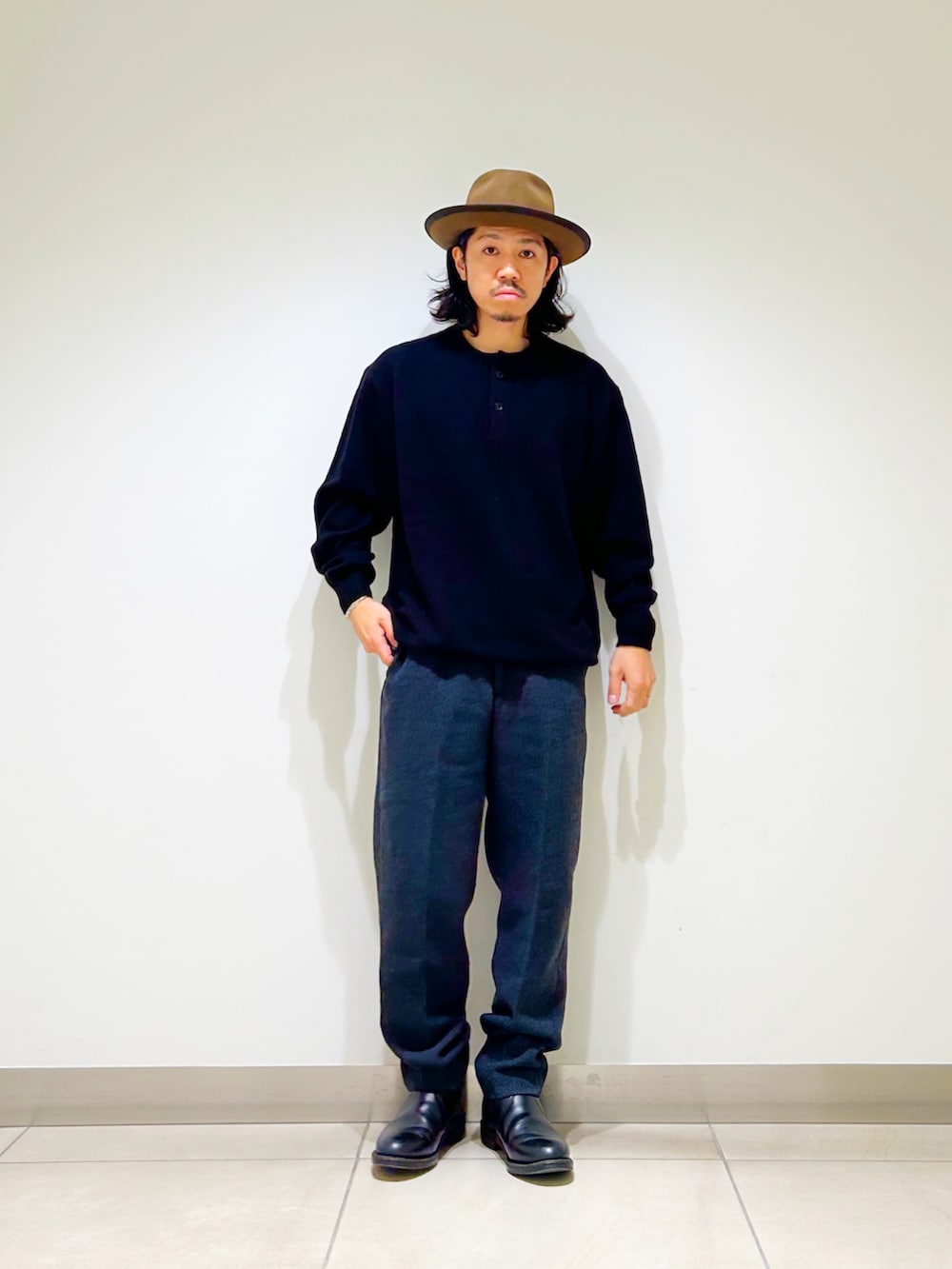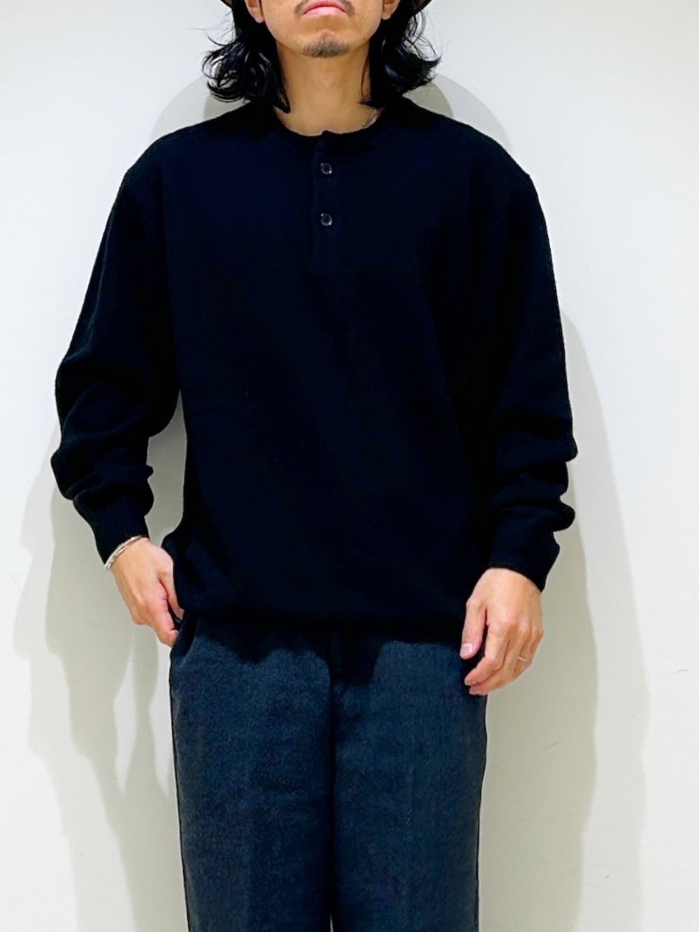 ・コーディネートのアクセントになるヘンリーネック型を採用。ドロップショルダーのこなれた仕上がりで、ほどよくリラックス感のあるサイジングです。素材の良さを十分に活かしたシンプルなデザインで、ハミルトンウールらしい発色のよいカラーもポイントです。