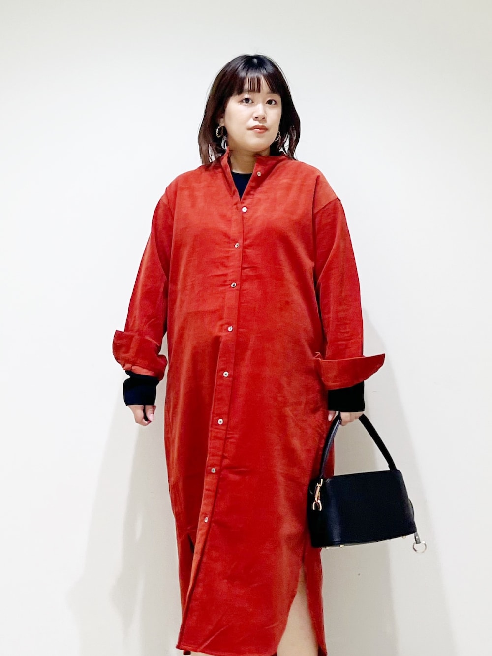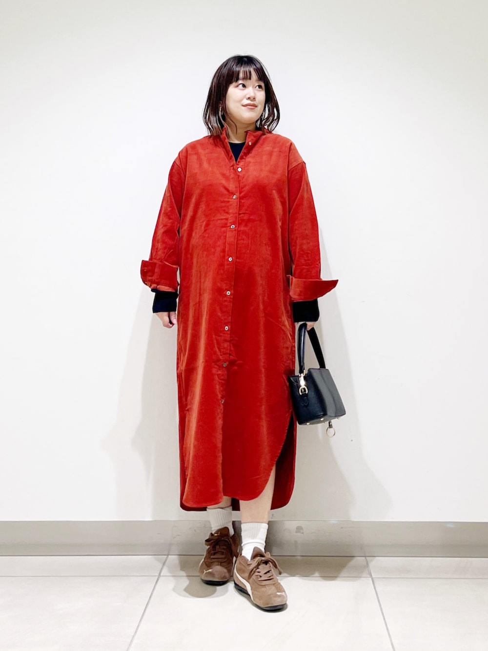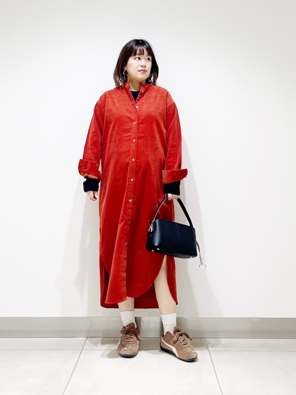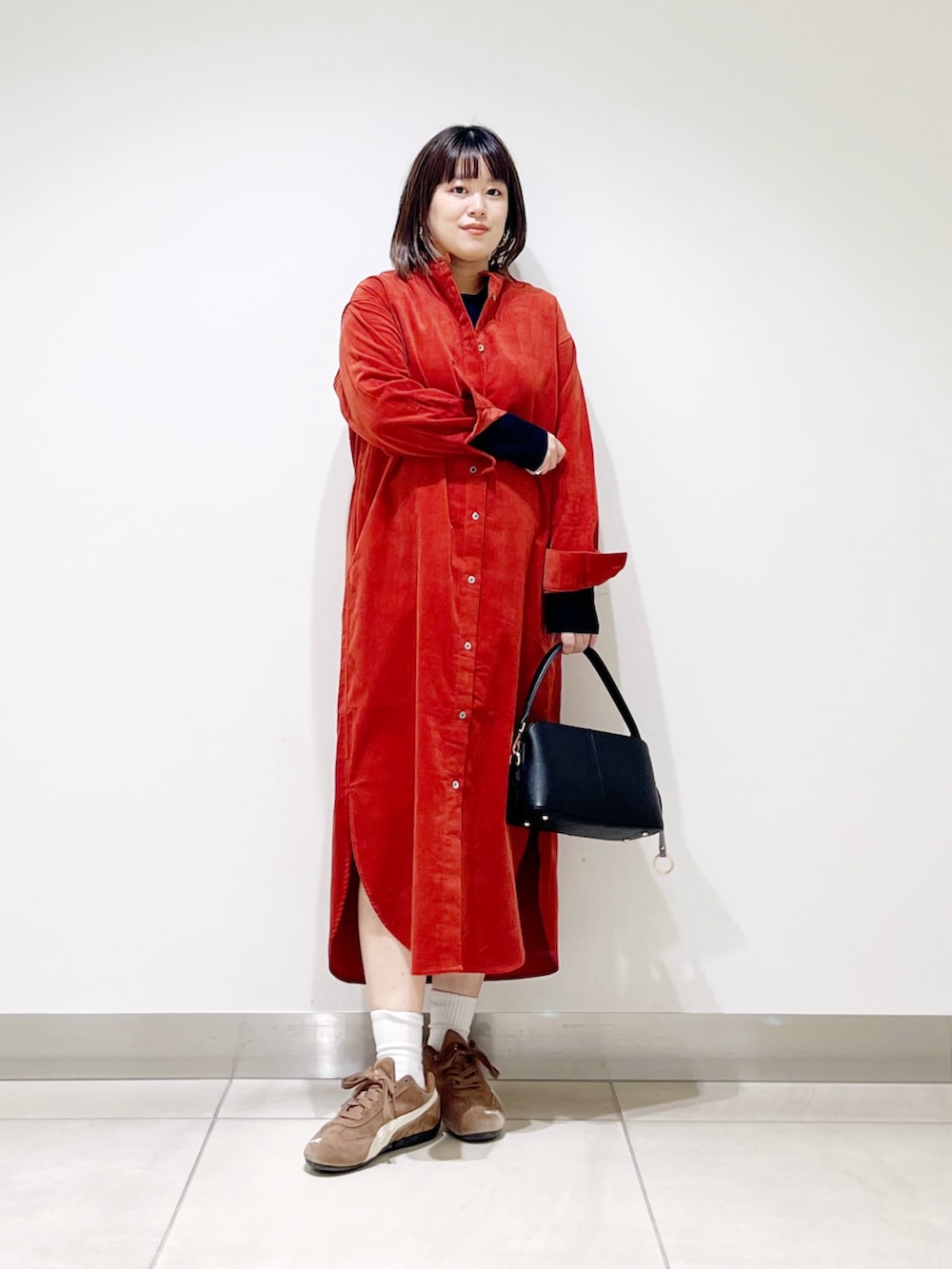 本日はコーデュロイのシャツワンピを着てみました。