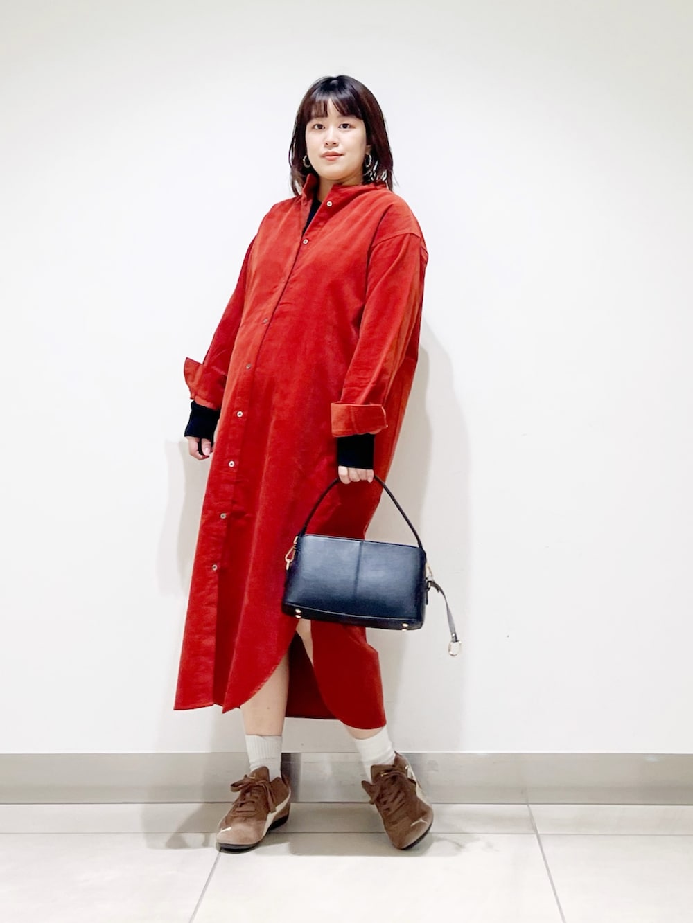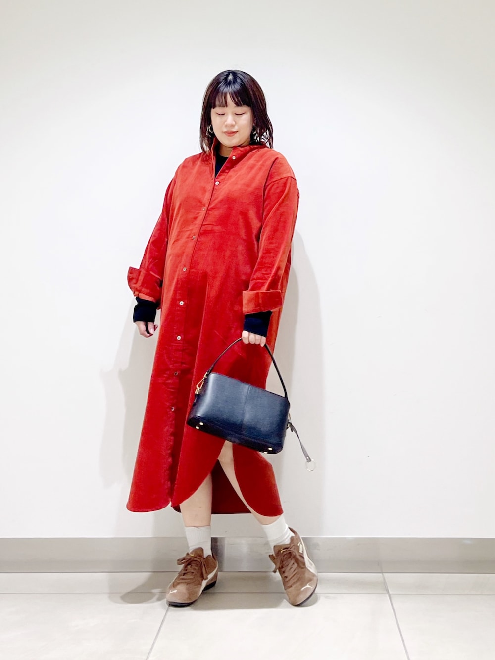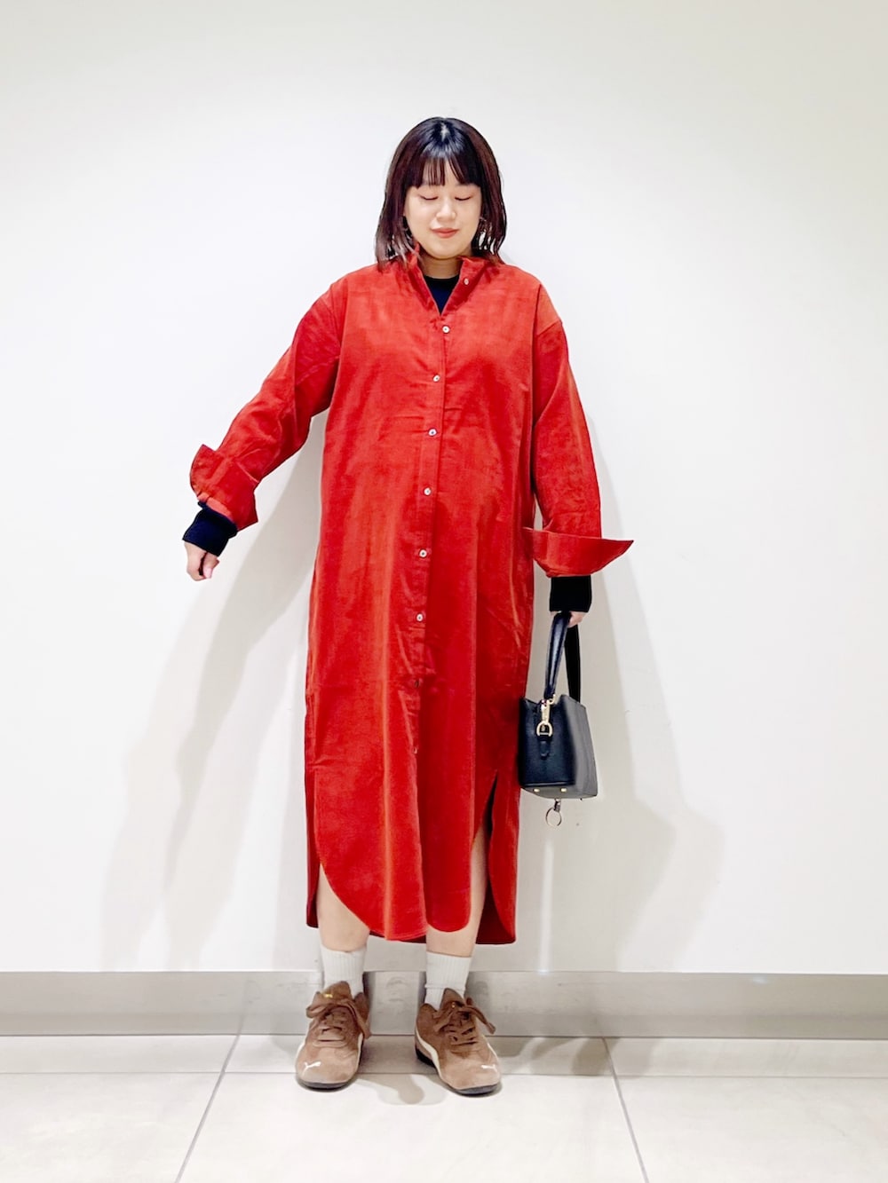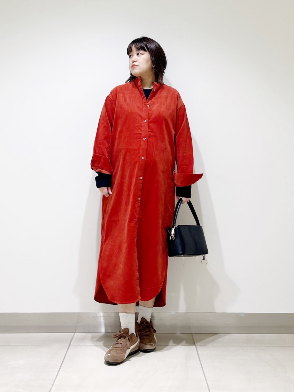 本日はコーデュロイのシャツワンピを着てみました。