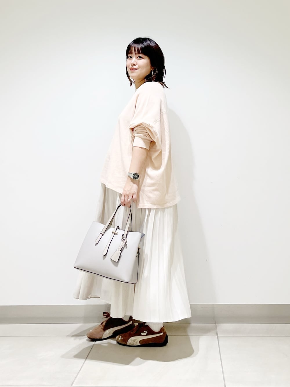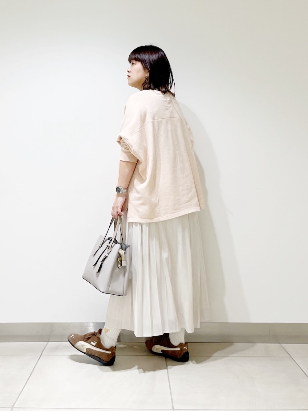 本日は淡いピンクがかわいいカットソーを着てみました。