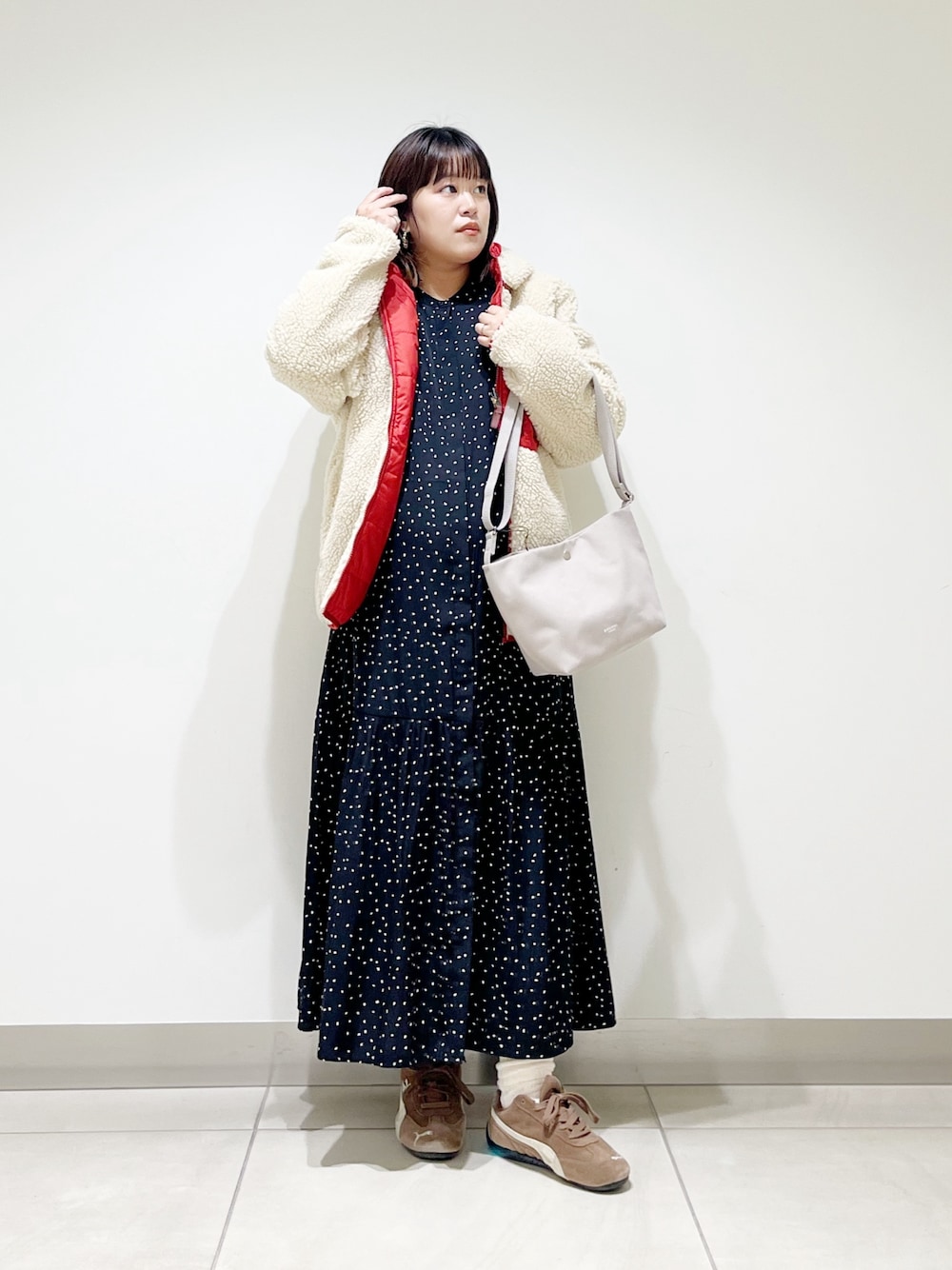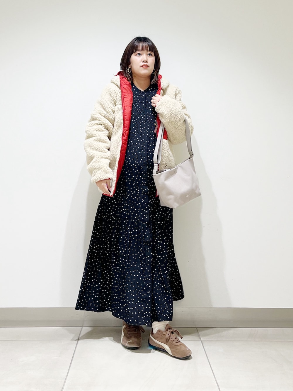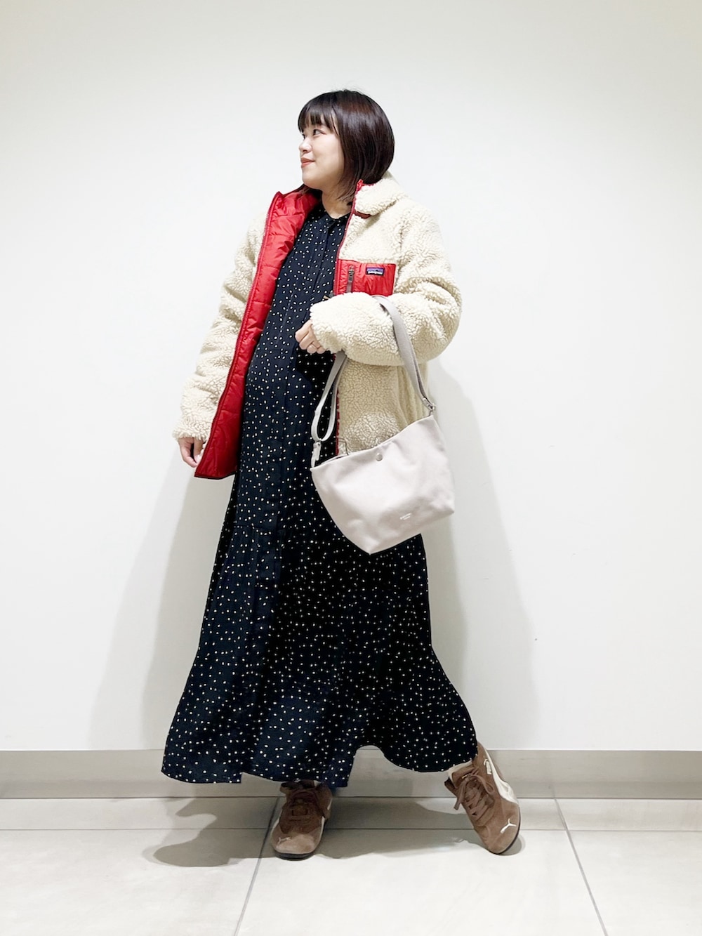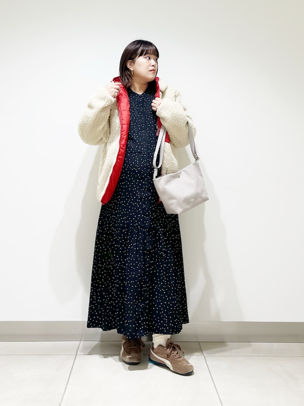 本日はオンオフ兼用で使えるキレイ目ワンピを着てみました。