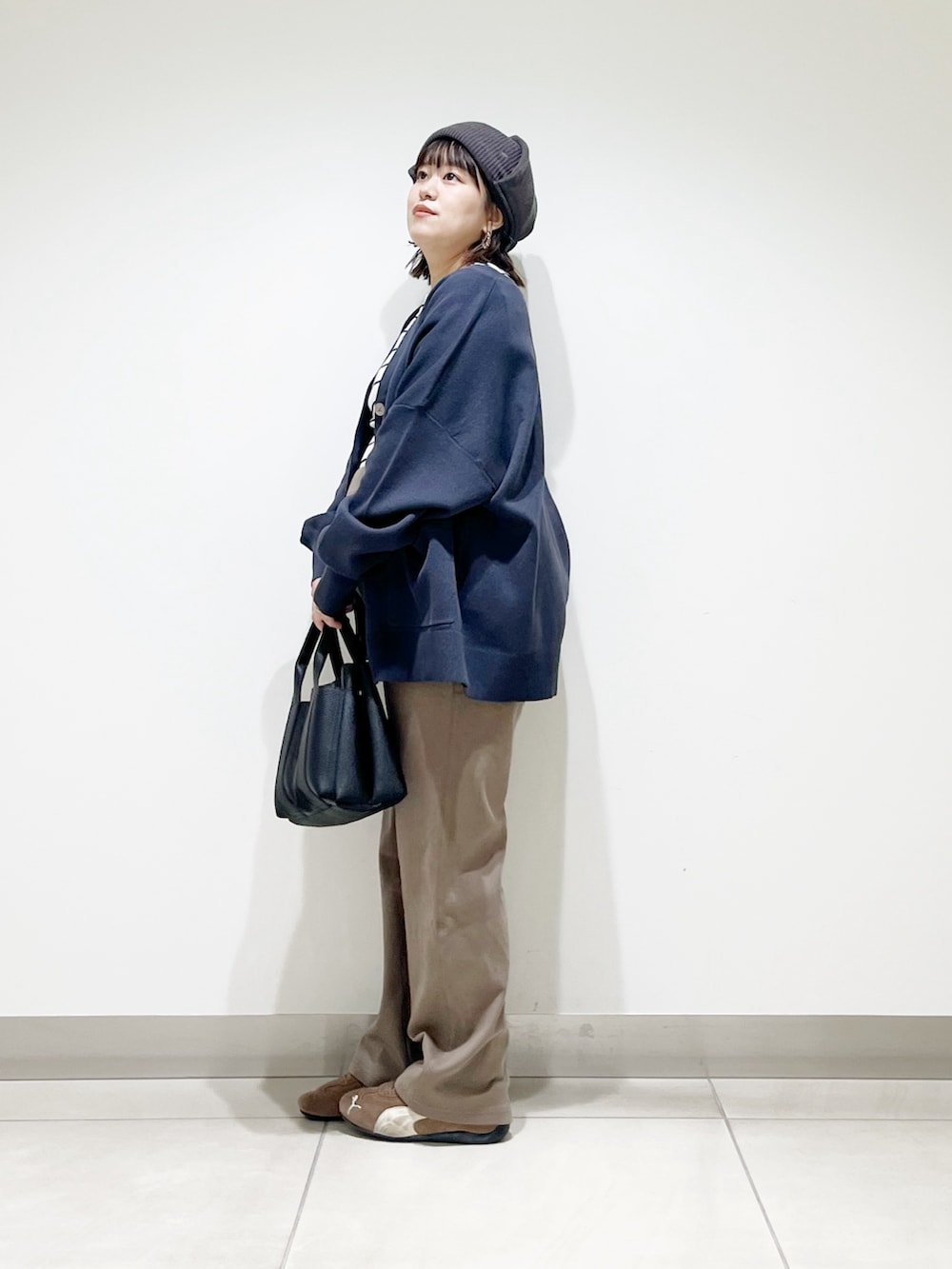 本日は少しルーズなシルエットがメンズライクなカーディガンをきてみました。
