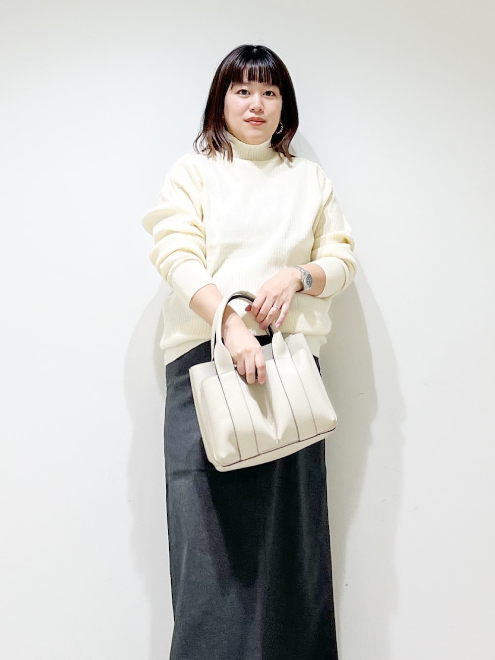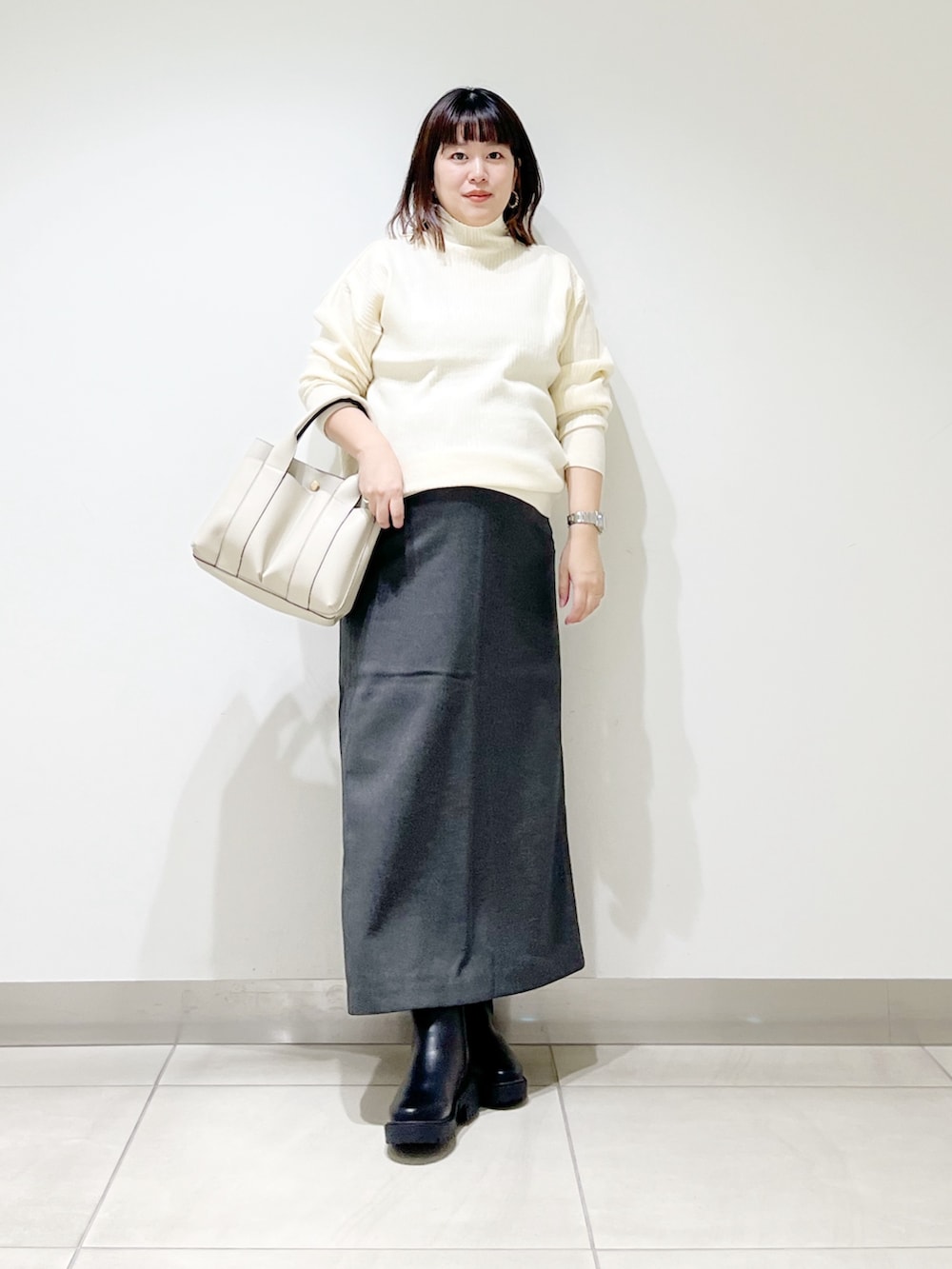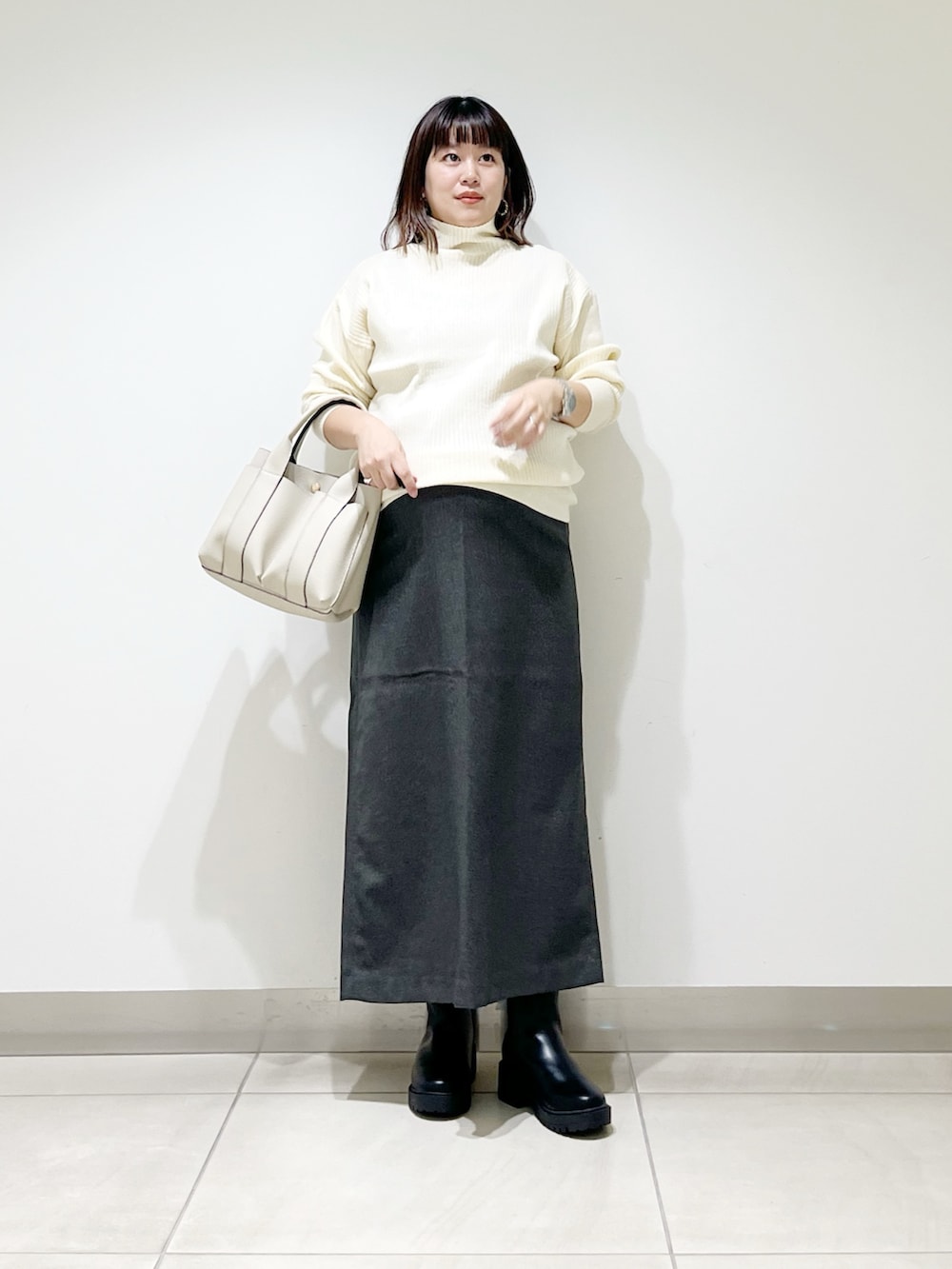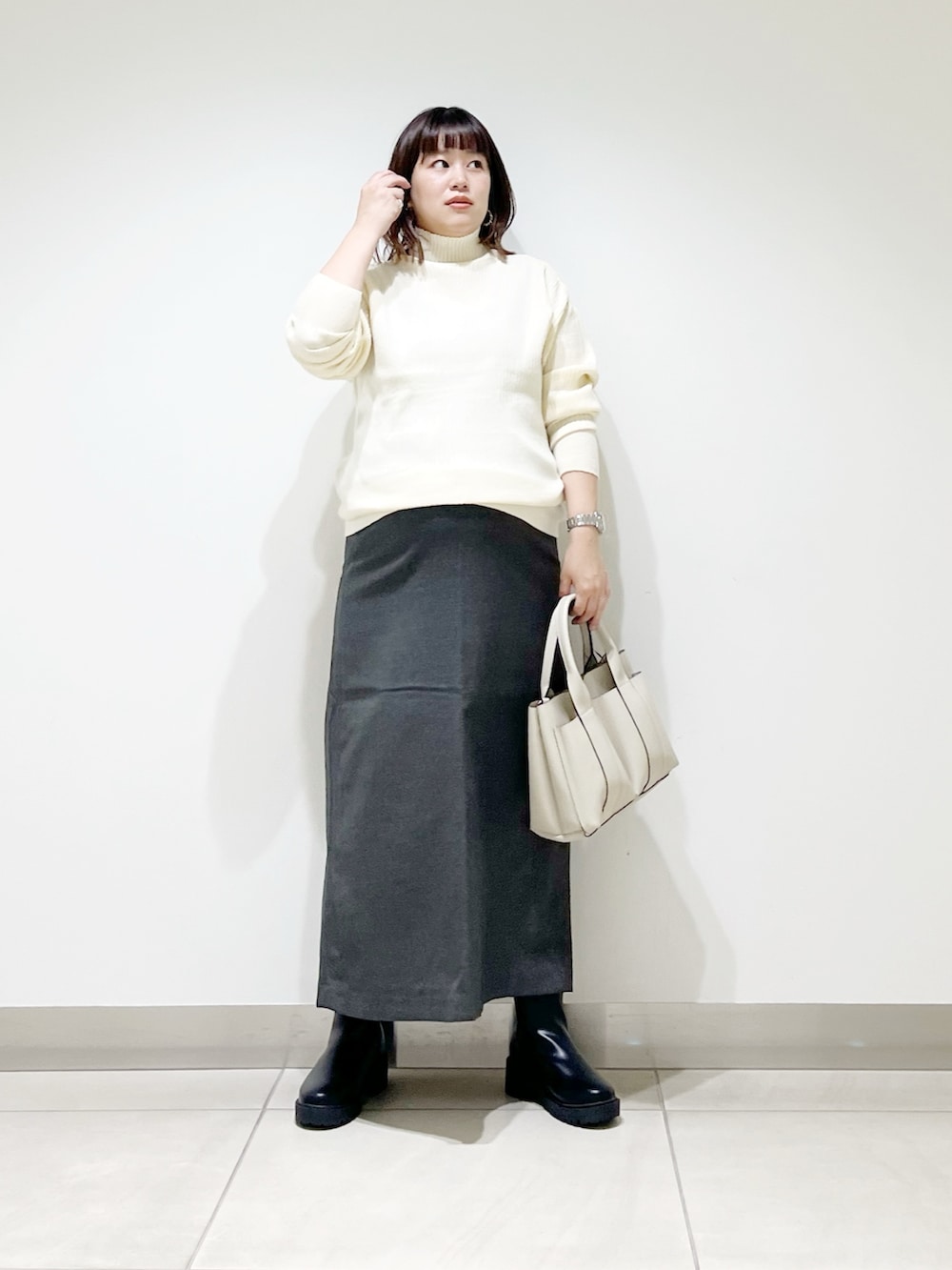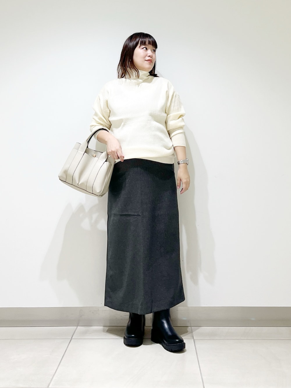 本日は肌触り抜群なハイネックニットを着てみました。