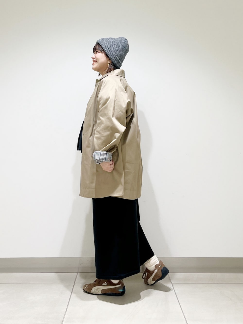 オーバーサイズのコートとの相性も抜群です。