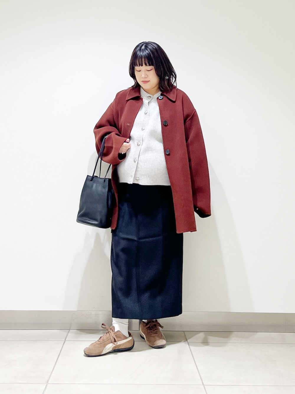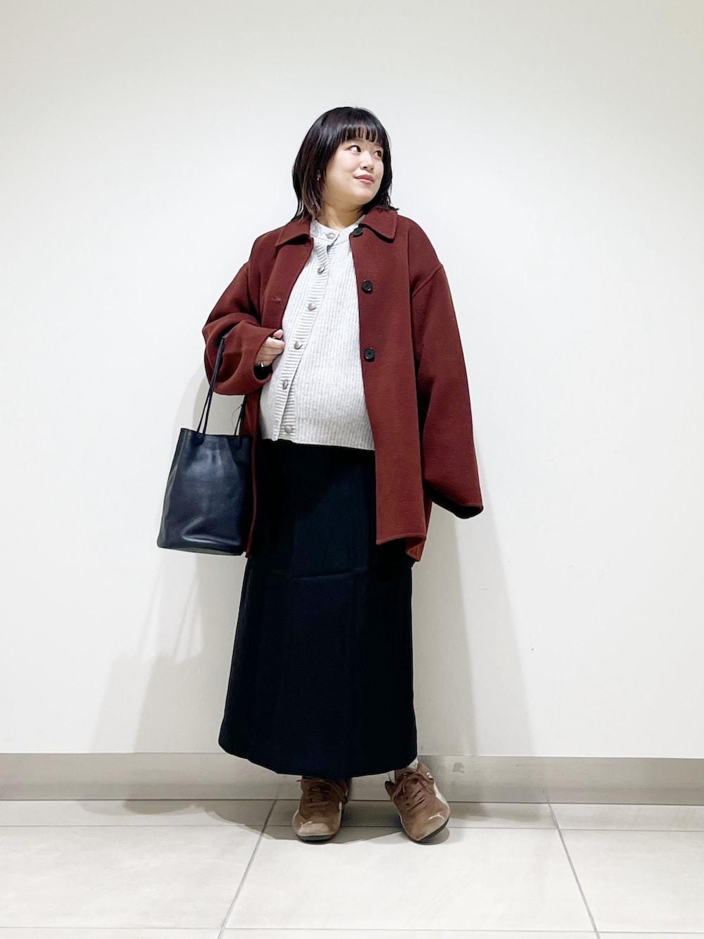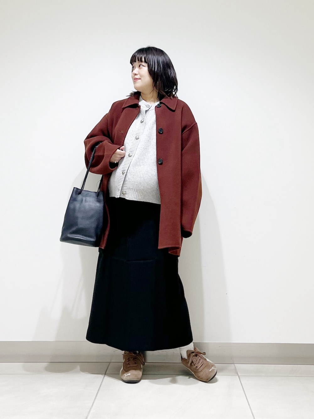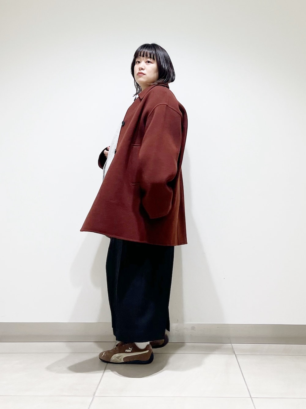 本日は今年らしい色味のコートを着てみました。