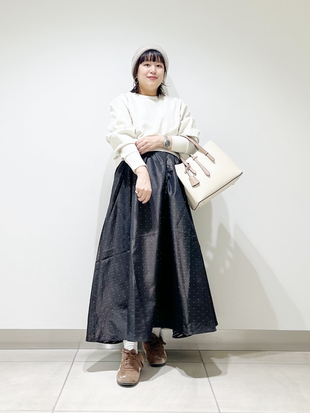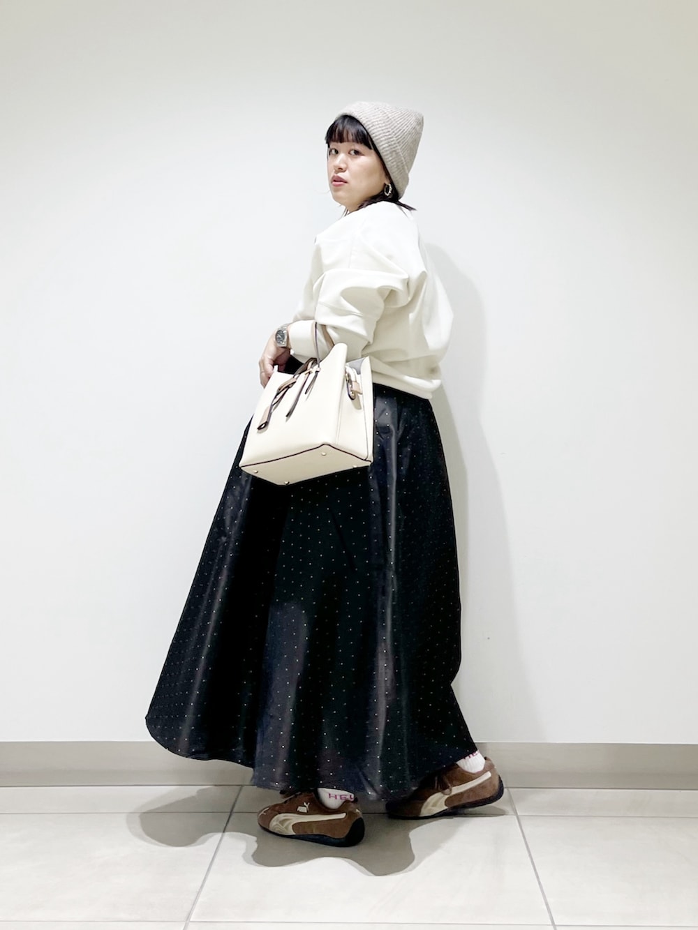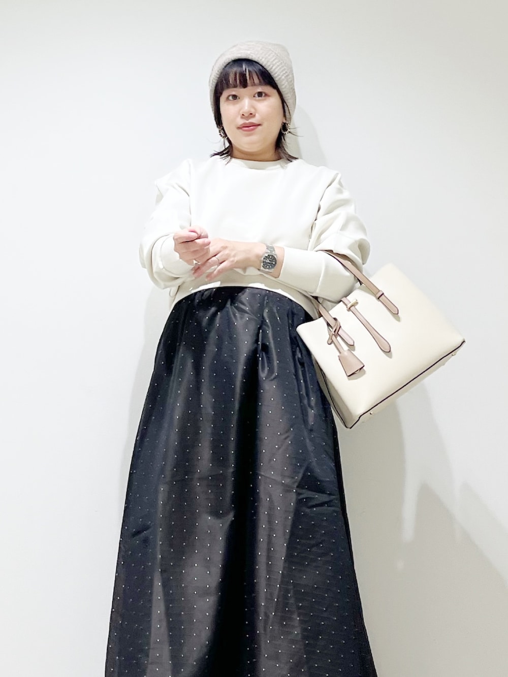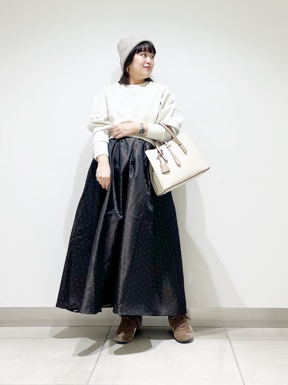 本日はハリのあるシルエットが特徴のお洋服でコーディネートしました。