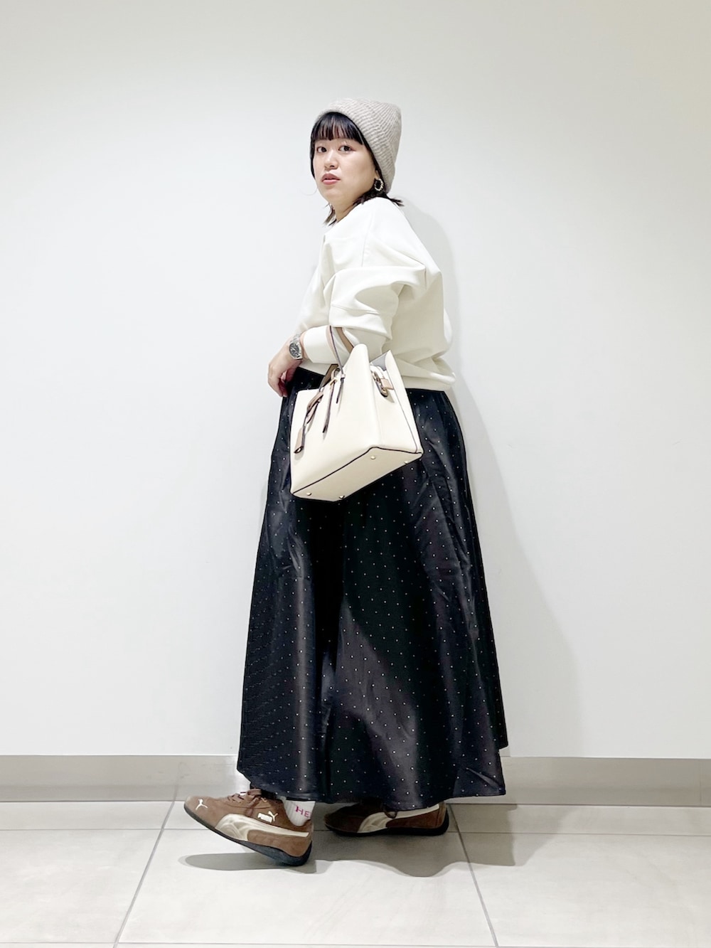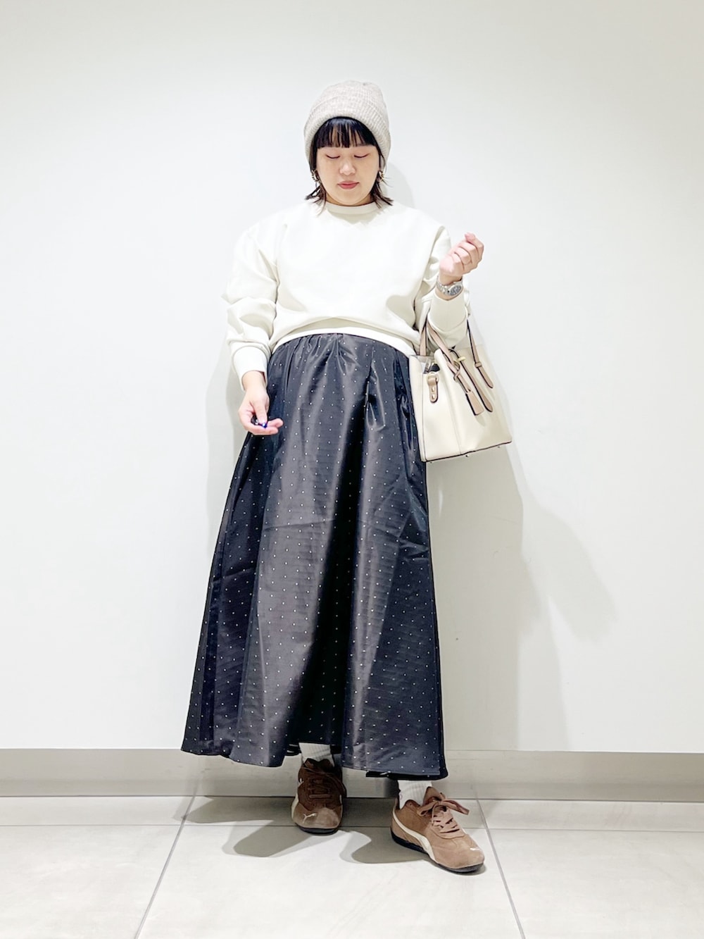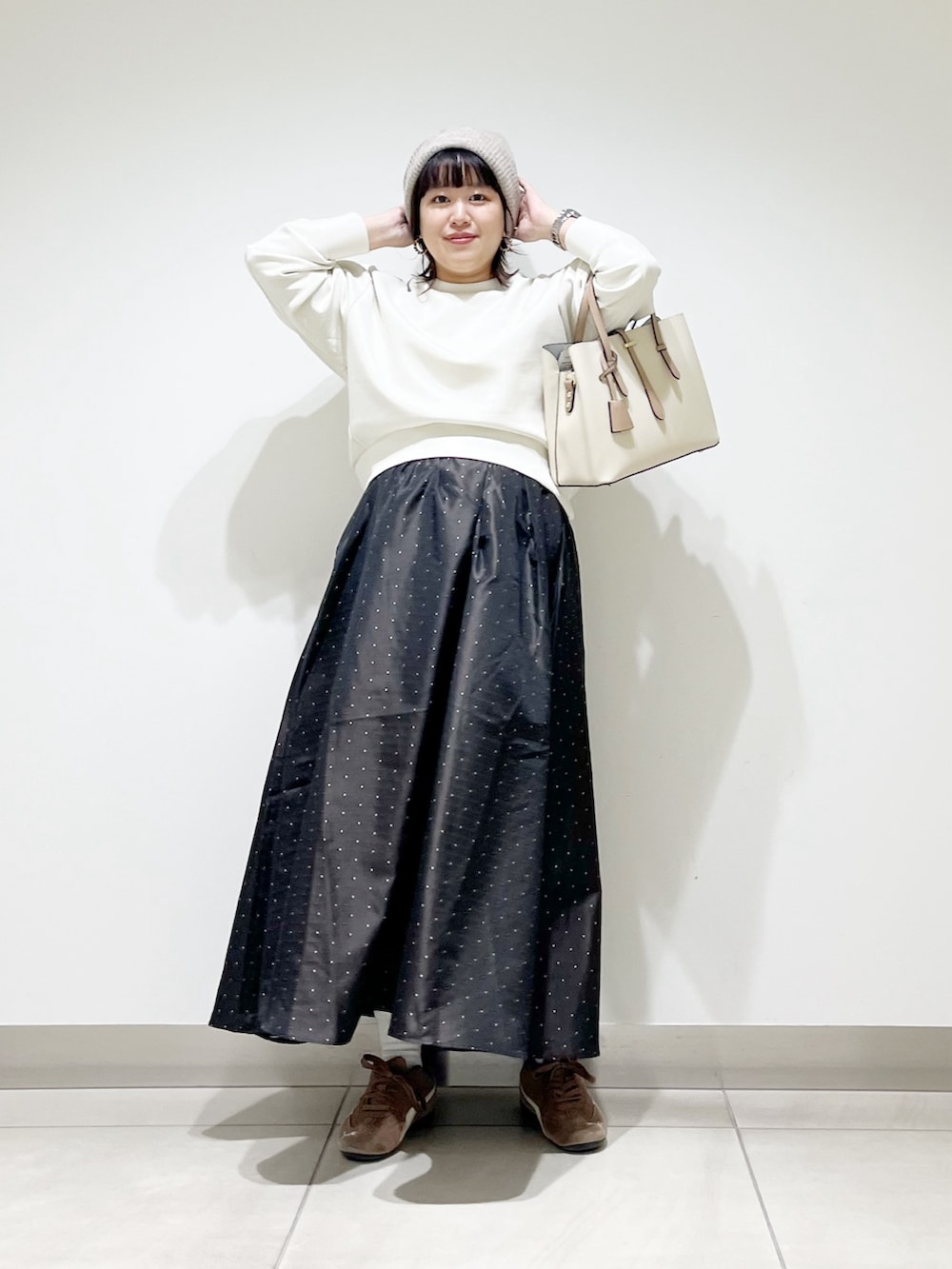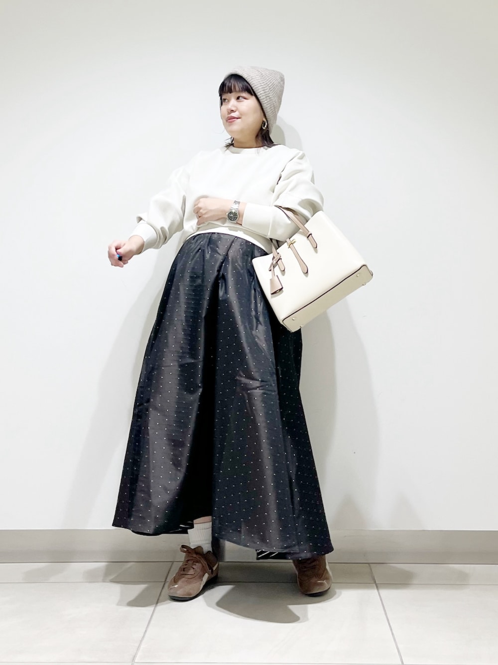 本日はハリのあるシルエットが特徴のお洋服でコーディネートしました。