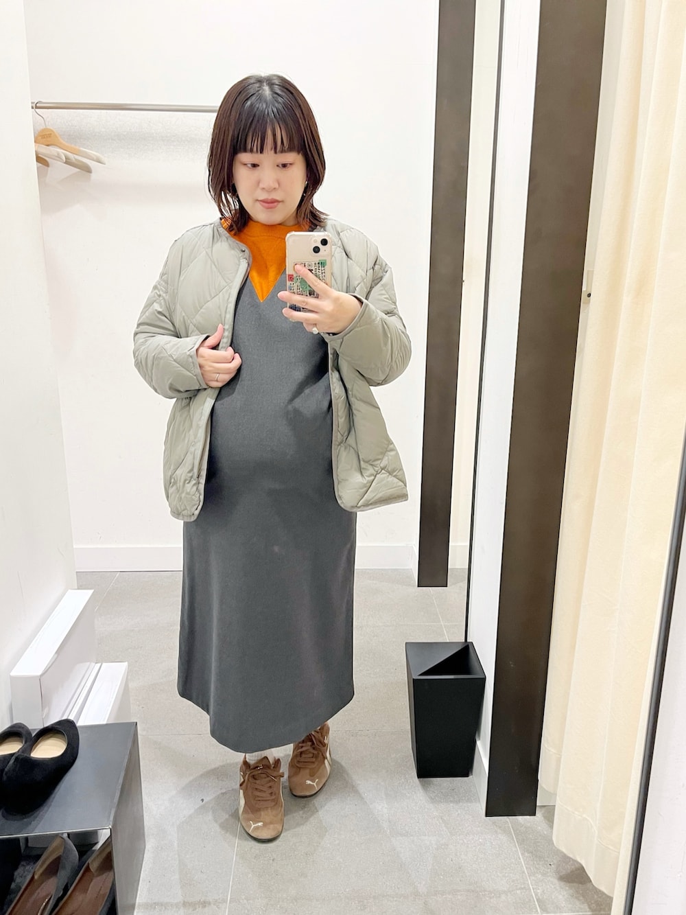 淡いカーキなので色味も主張せず、
