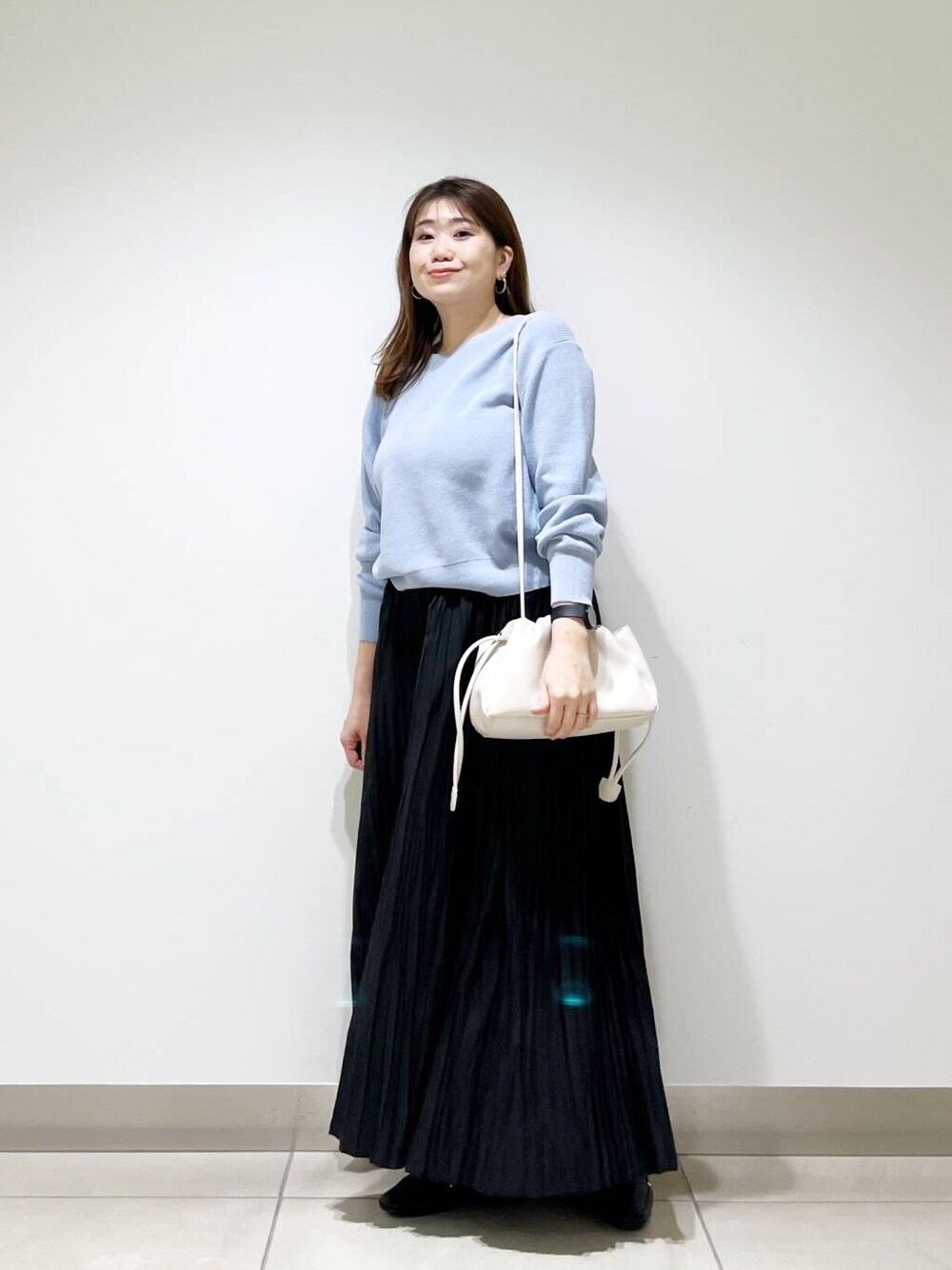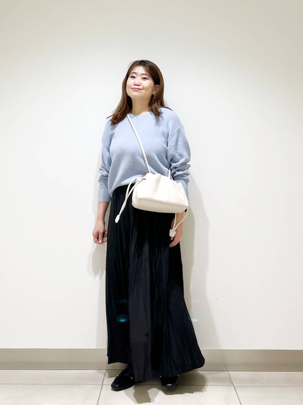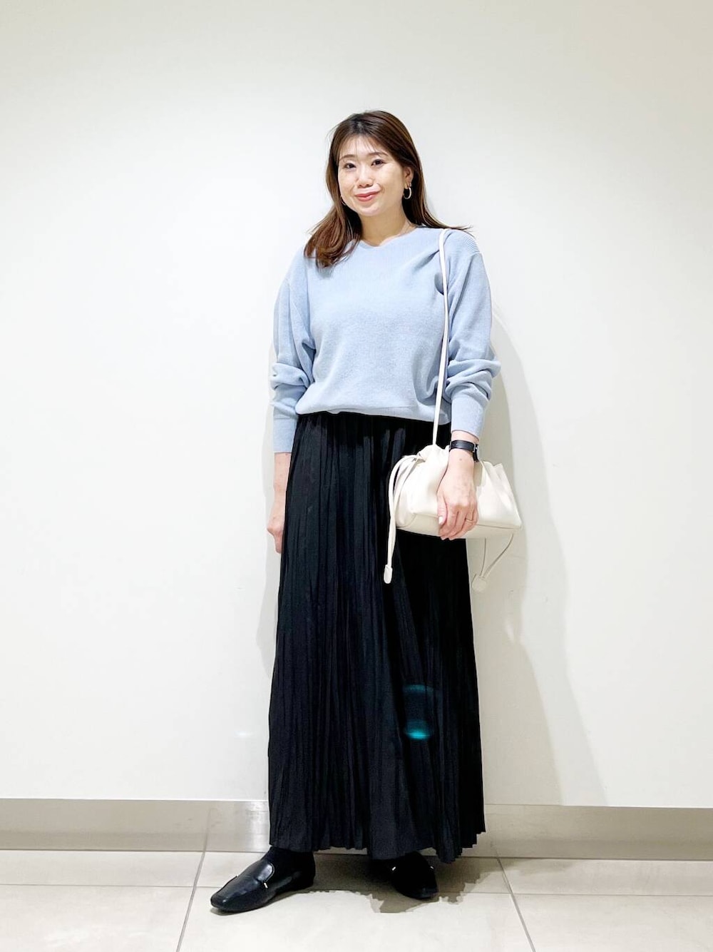 身体のラインを拾いすぎないのに、スッキリと見えるニットです!春カラーもとても可愛いです☆